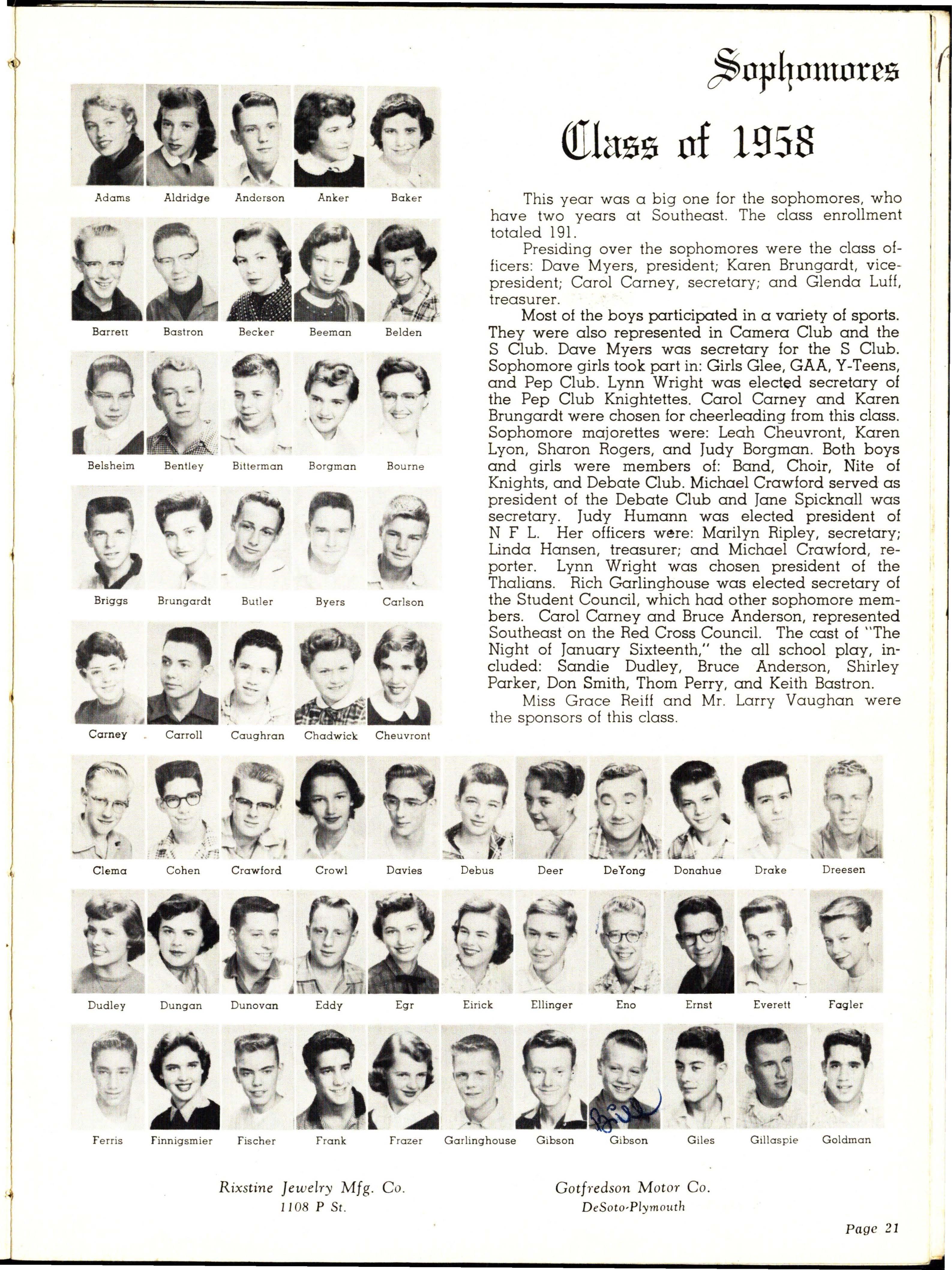 1 Hazel G. Scott, and our school secretary, Mrs Verle C)/lJ). a U/~ ~l-L- TH A "f' Morris, for the outstanding work they have expended Ovid Vlt"""" toward the successfulness of Southeast's first year. We / V - "' '"' ()