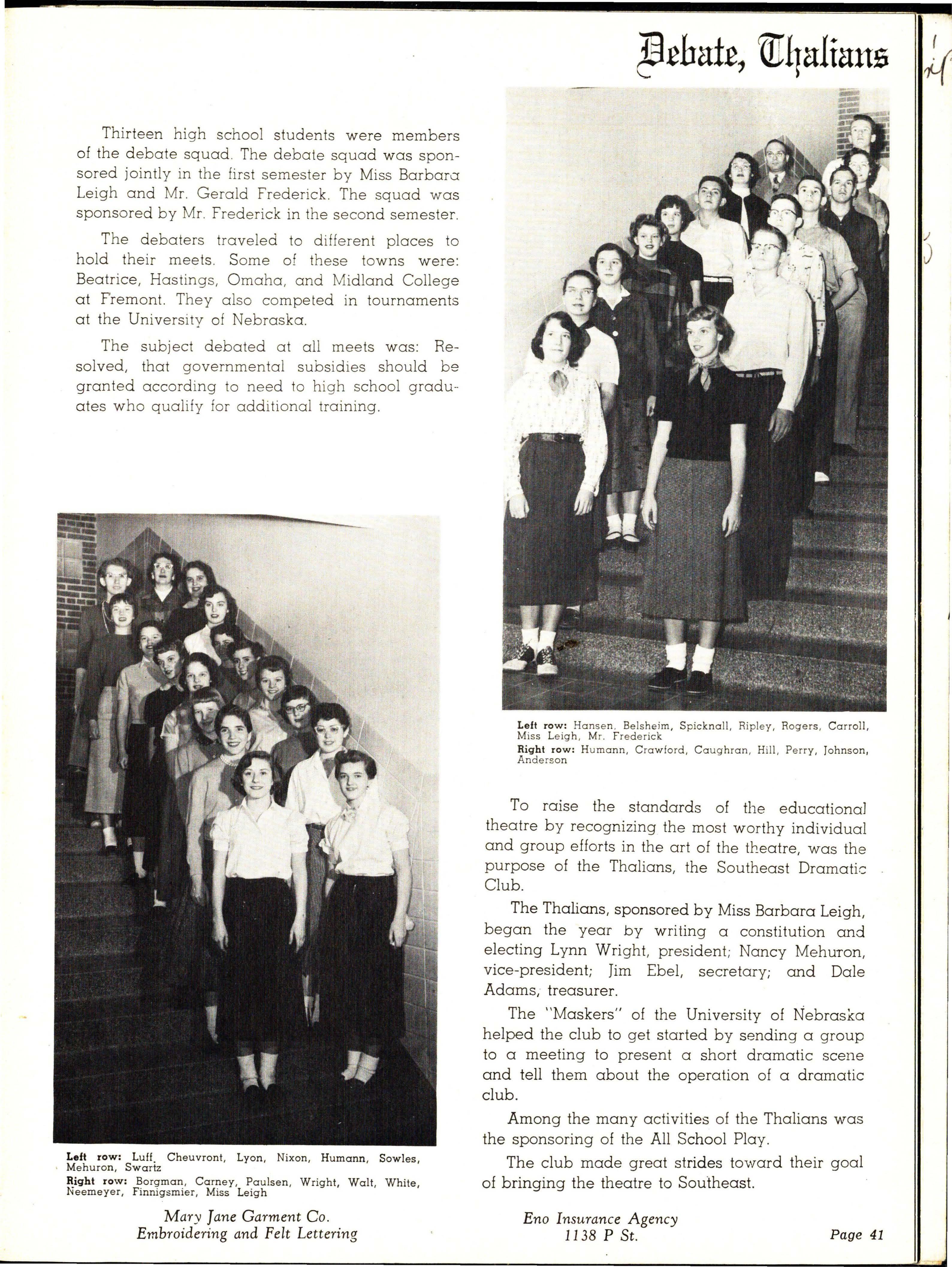 Barbara Leigh Enqlish , Speech Debate and Dramatic Club Sponsor