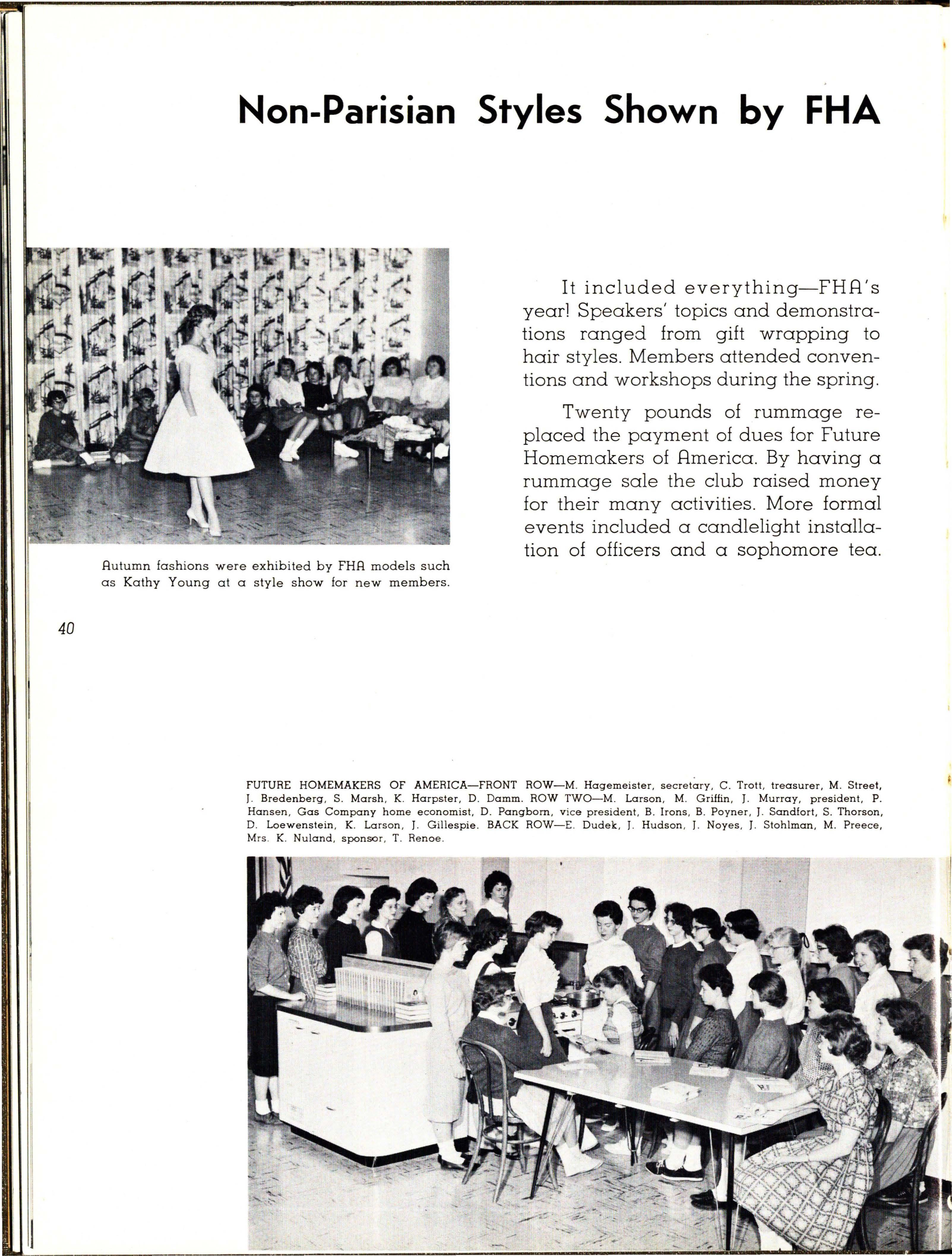 Twenty pounds of rummage replaced the payment of dues for Future Homemakers of America. By having a rummage sale the club raised money for their many activities More formal events included a candlelight installation of officers and a sophomore tea.