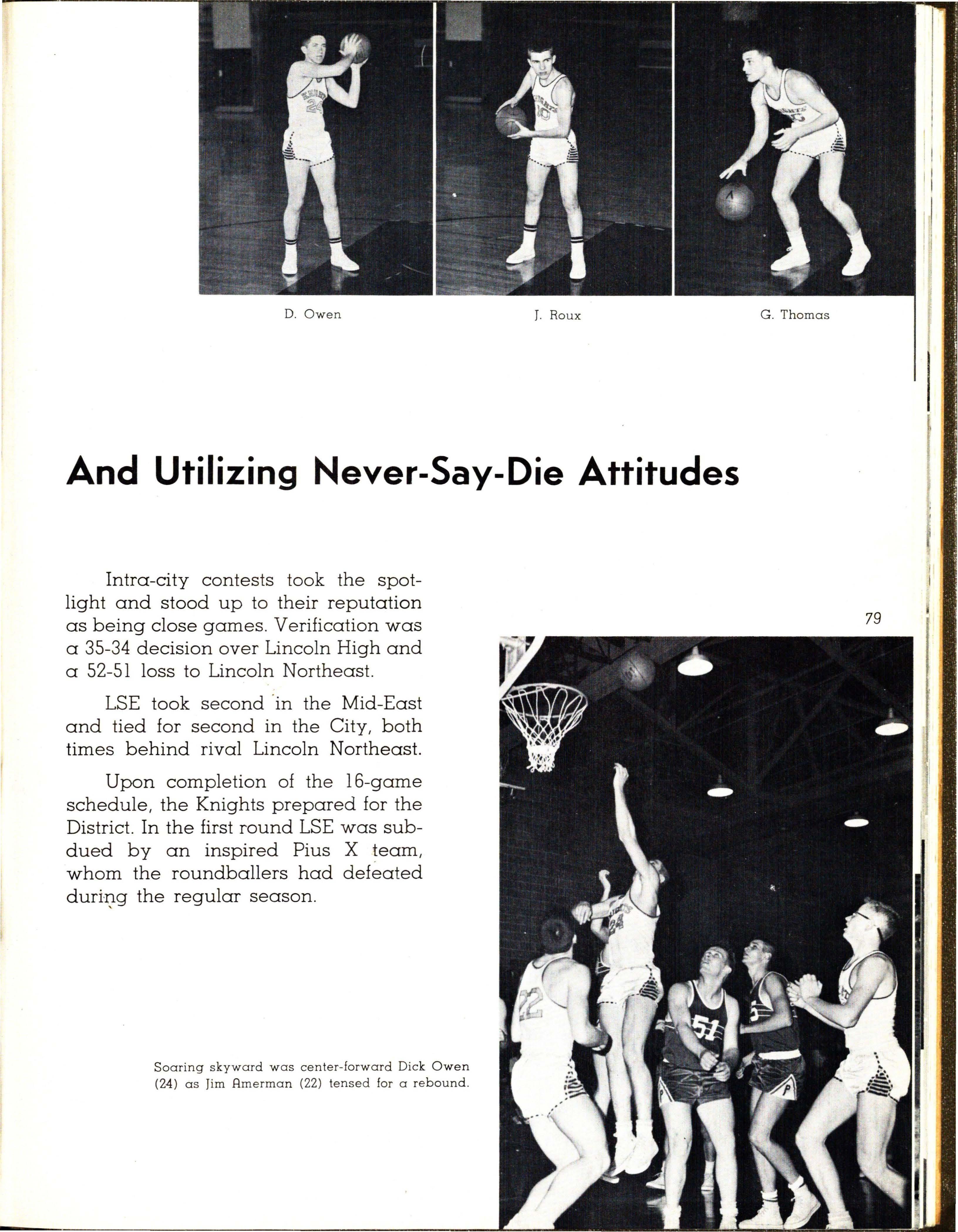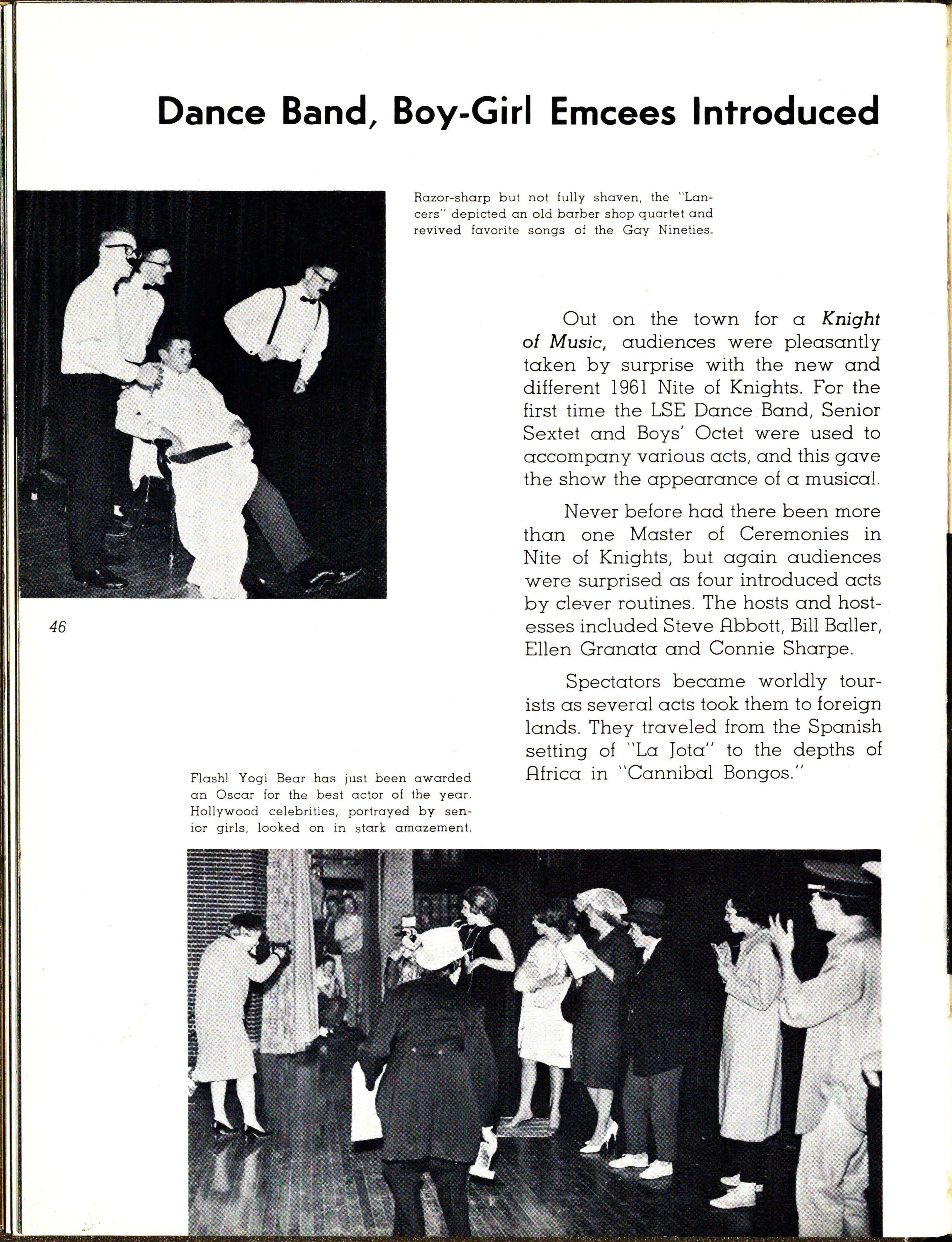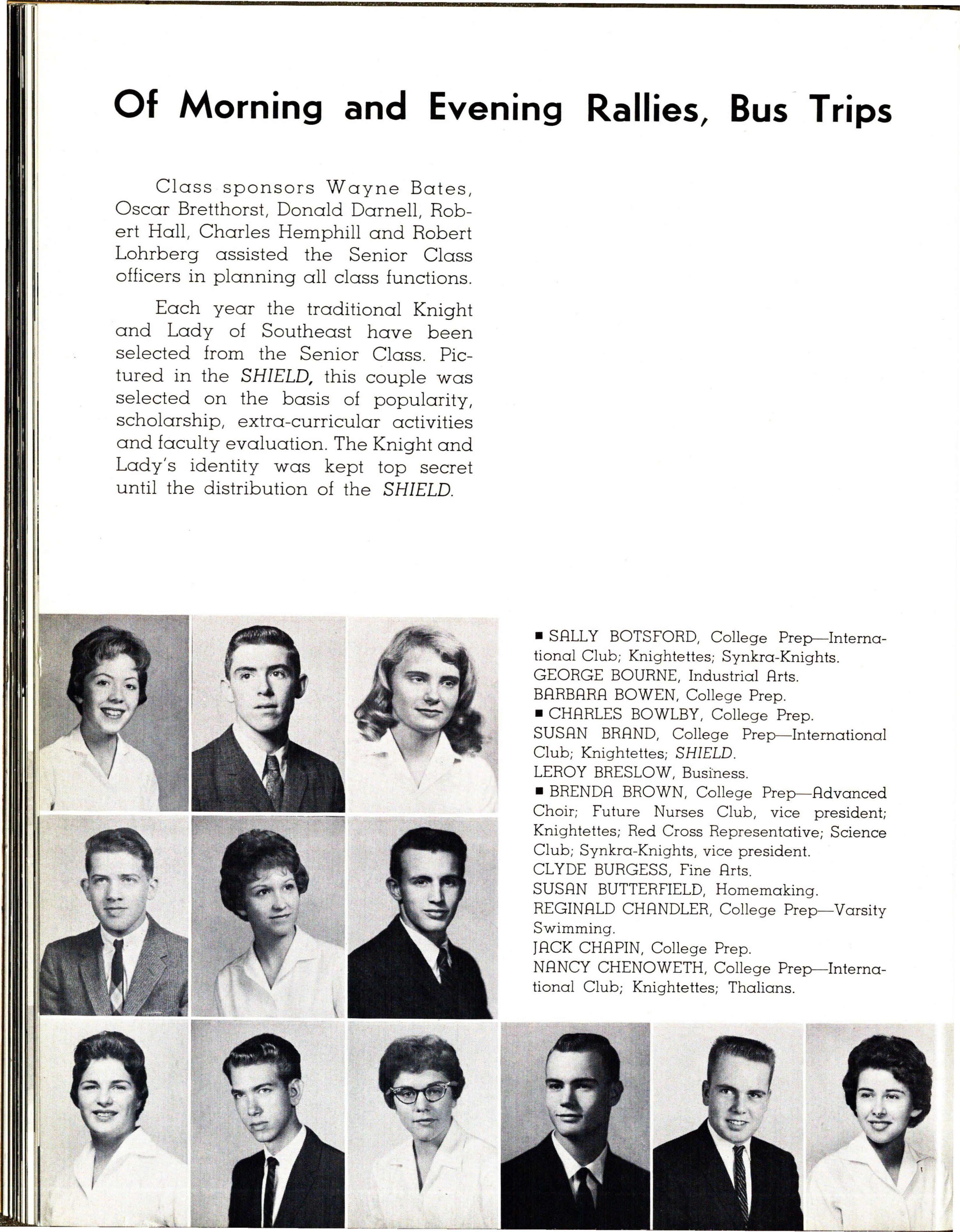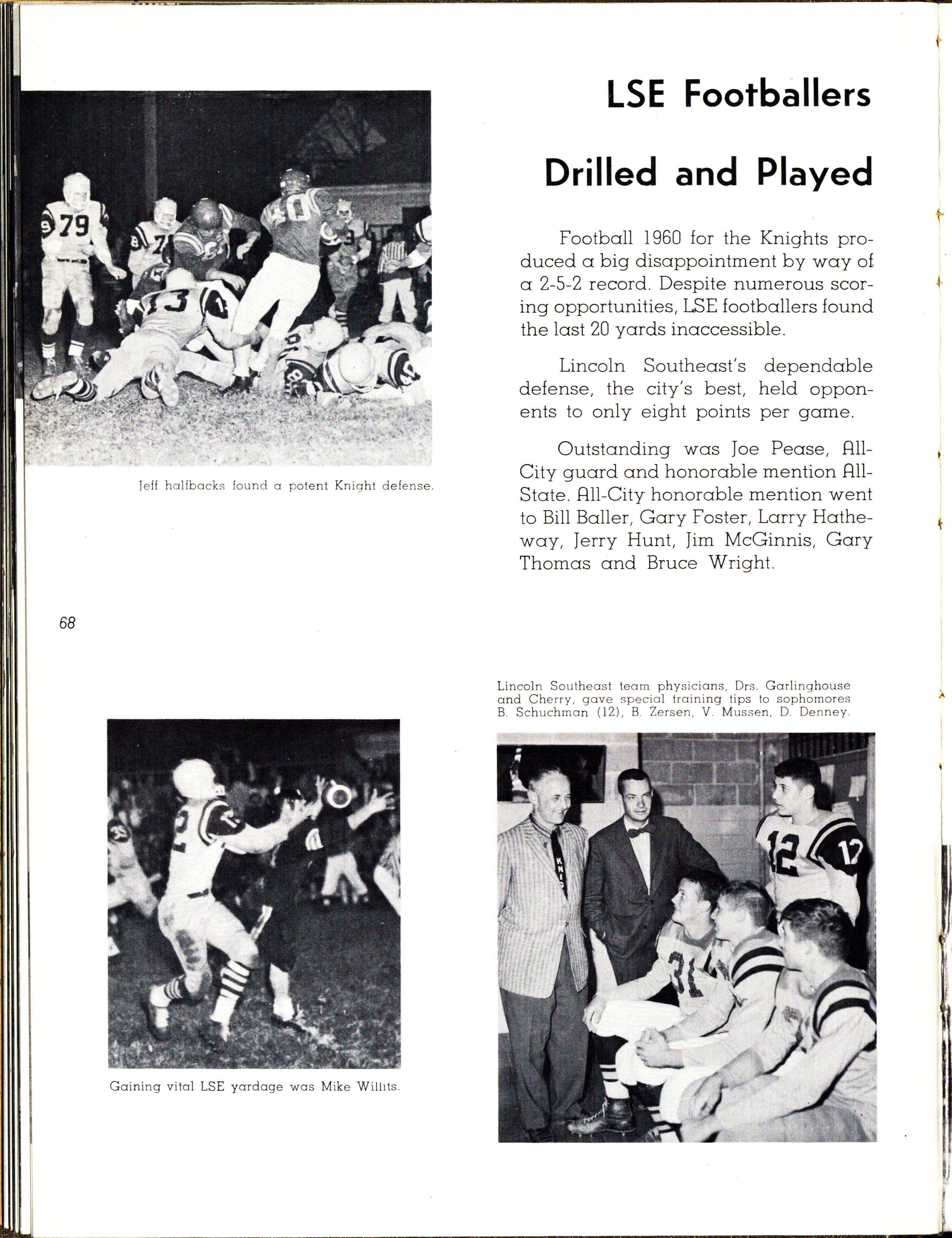 Just as the 1961 SHIELD fell into a pattern so did our lives . .At Lincoln Southeast the pattern consisted of five closely harmonized characteristics: academic accomplishment, organizational activity, athletic achievement, community service and personnel cooperation. Blended together, they gave LSE state and national recognition.