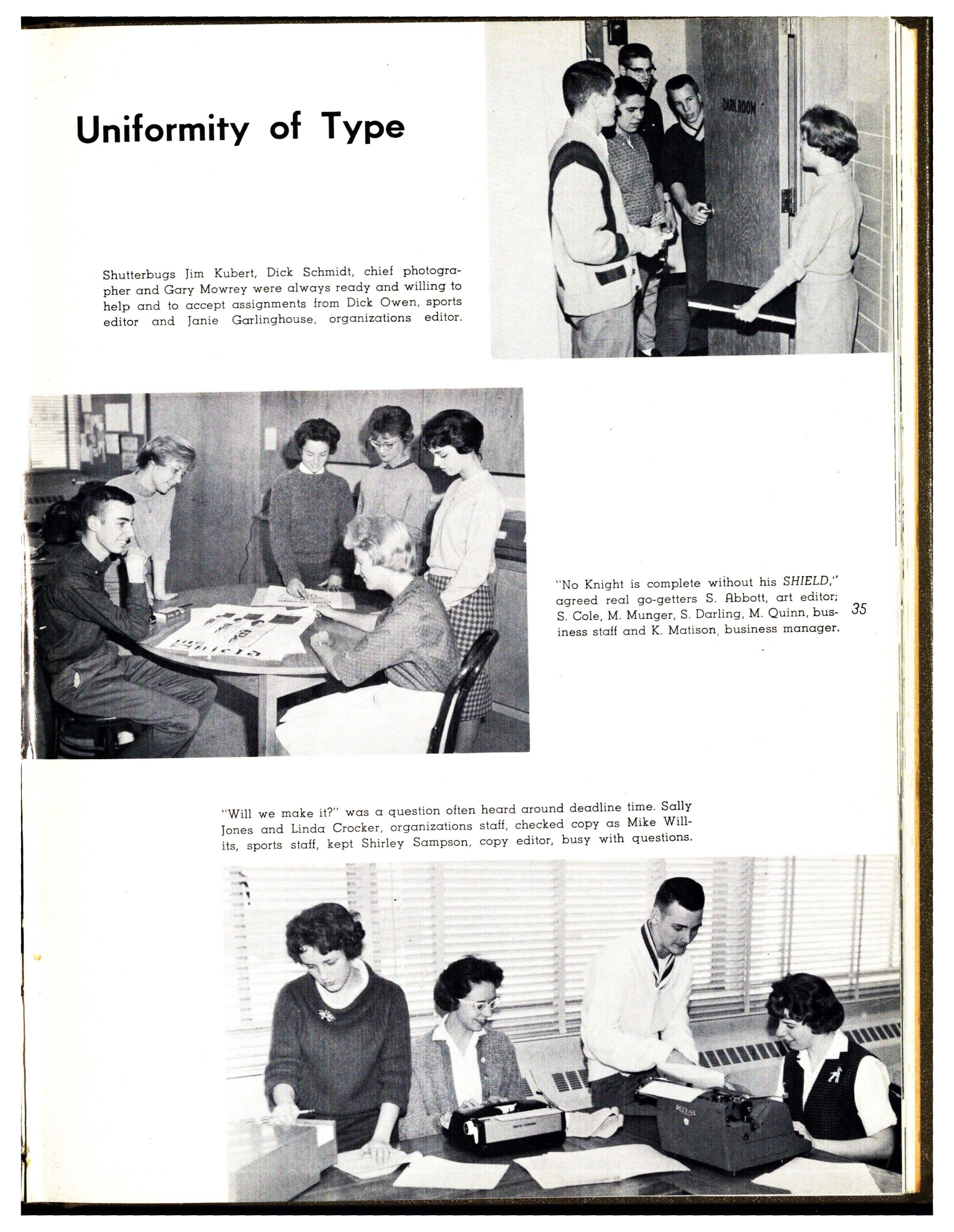 " No Knight is complete without his SHIELD,'' agreed real go-getters S Abbott , art editor; S. Cole, M Munger , S Darling , M. Quinn, bus- 35 iness staff and K Matison , business manager.