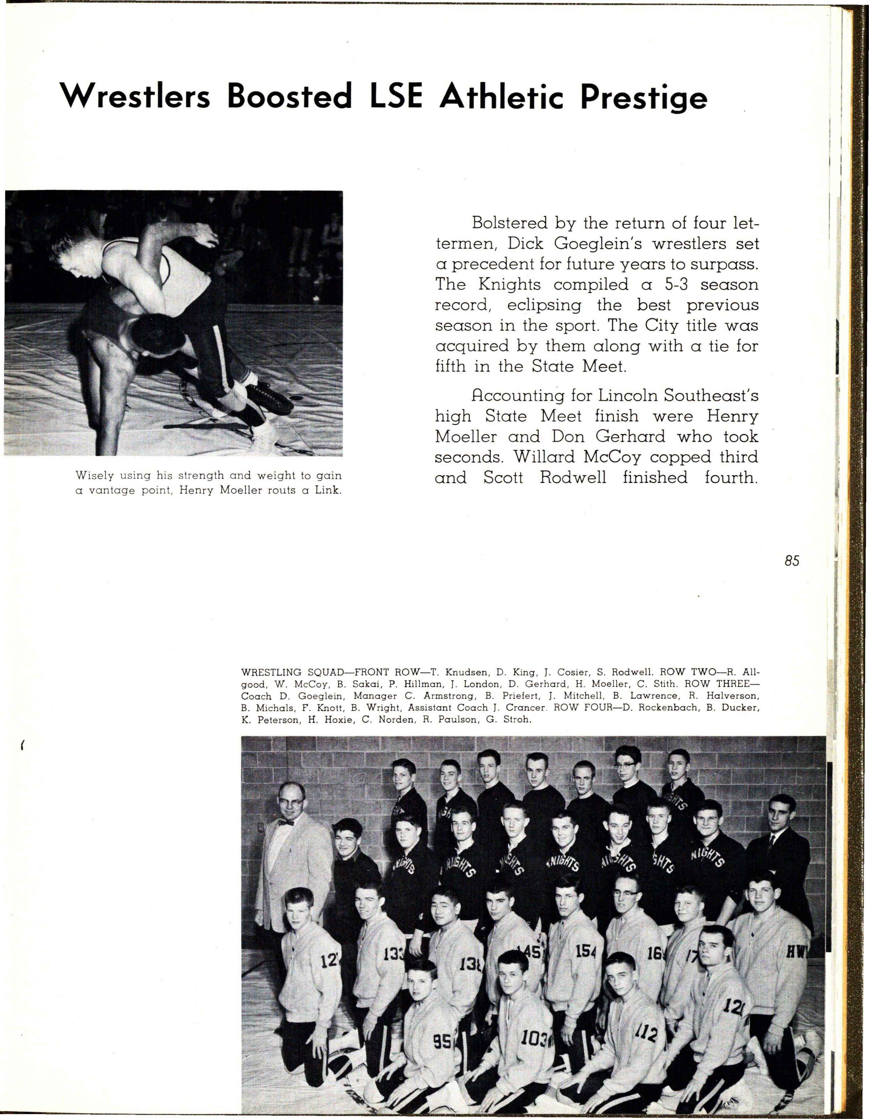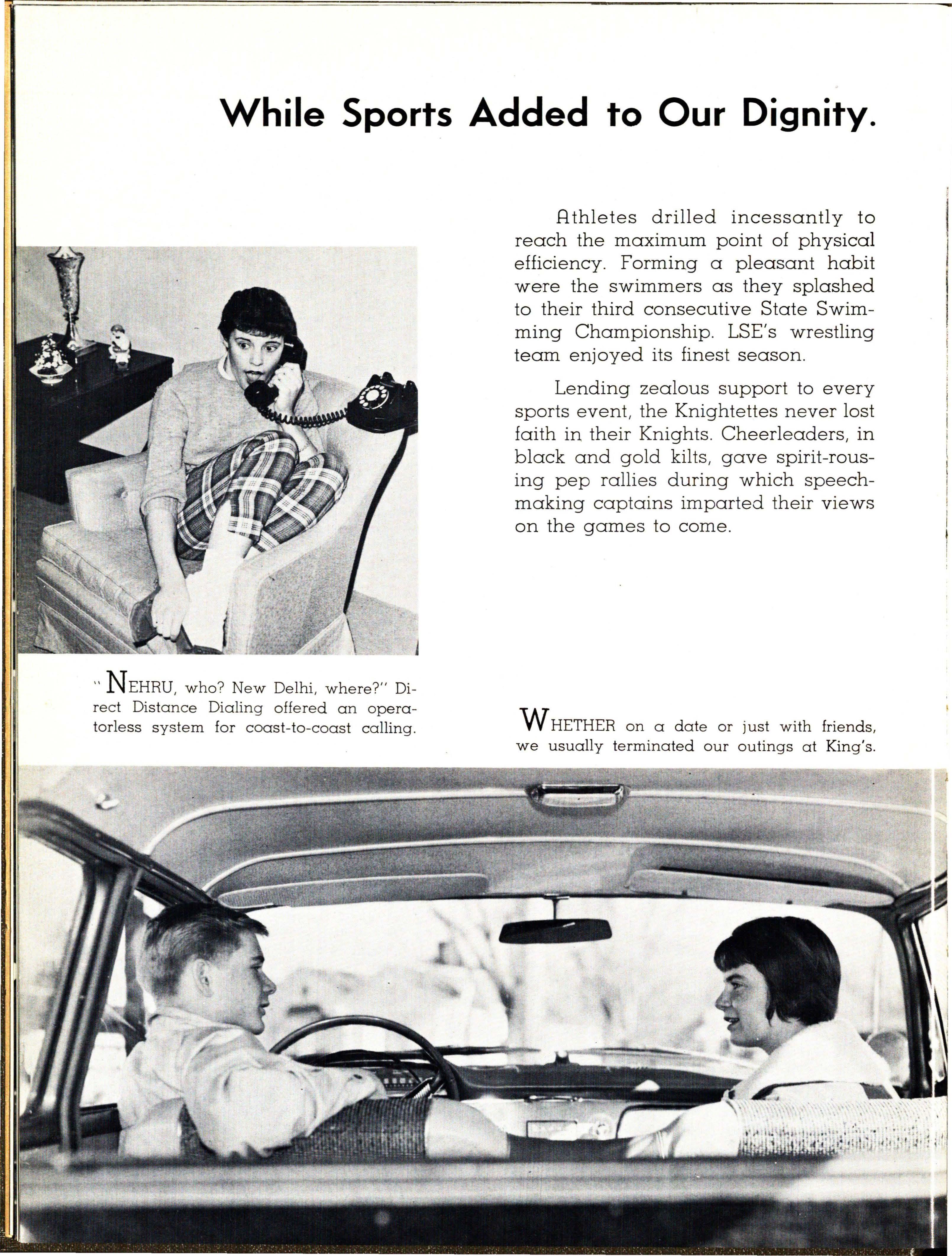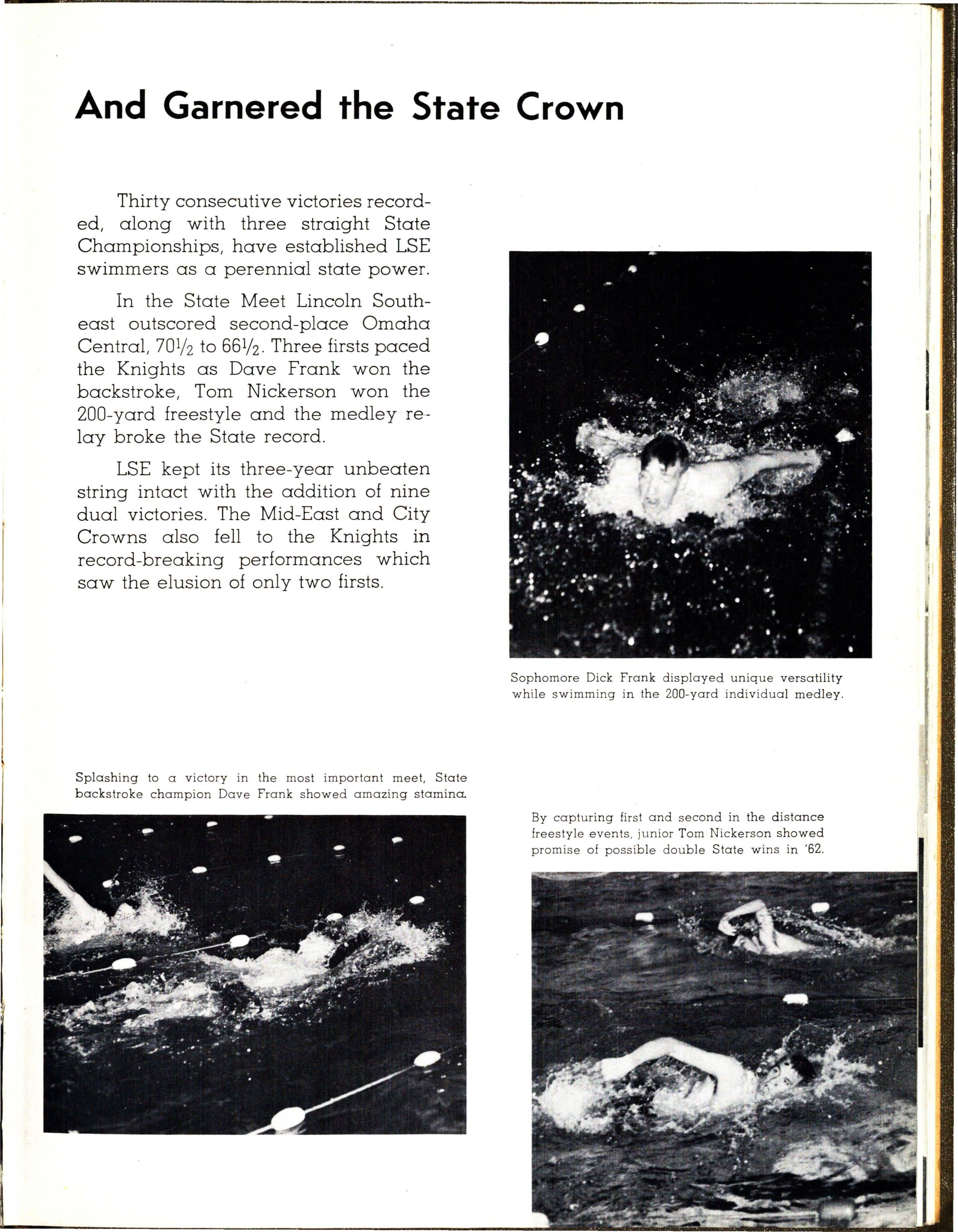 Athletes drilled incessantly to reach the maximum point of physical efficiency. Forming a pleasant habit were the swimmers as they splashed to their third consecutive State Swimming Championship. LSE's wrestling team enjoyed its finest season.