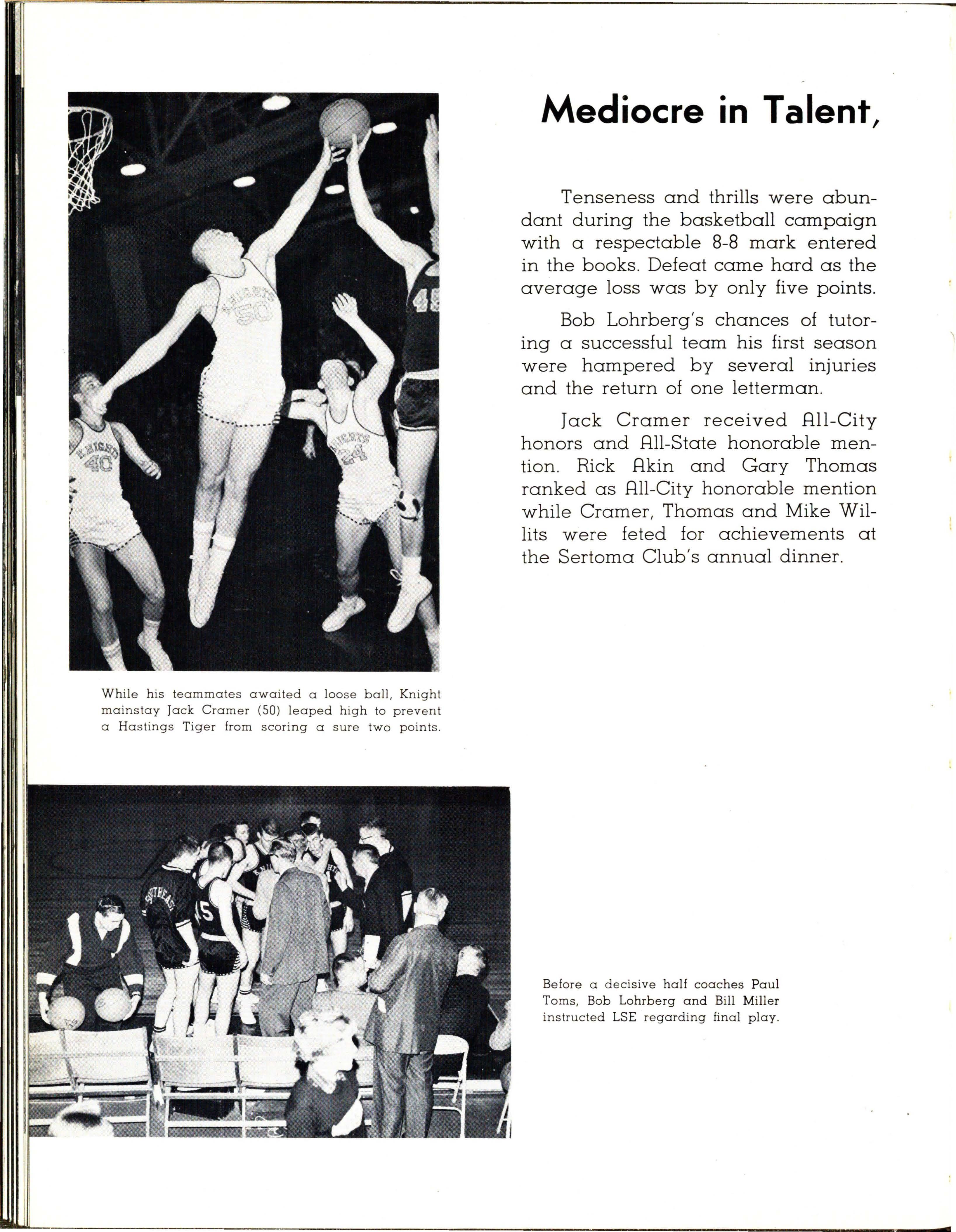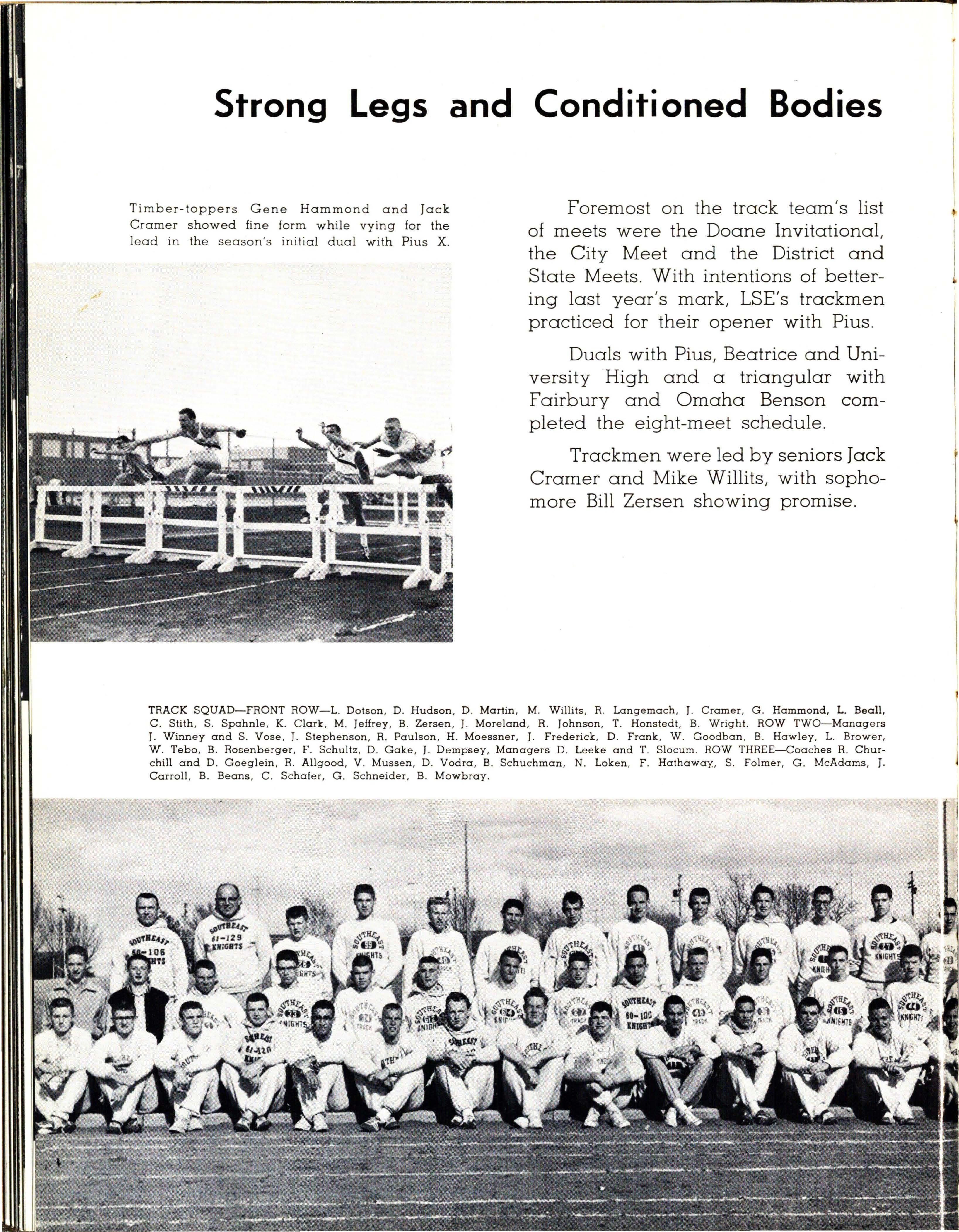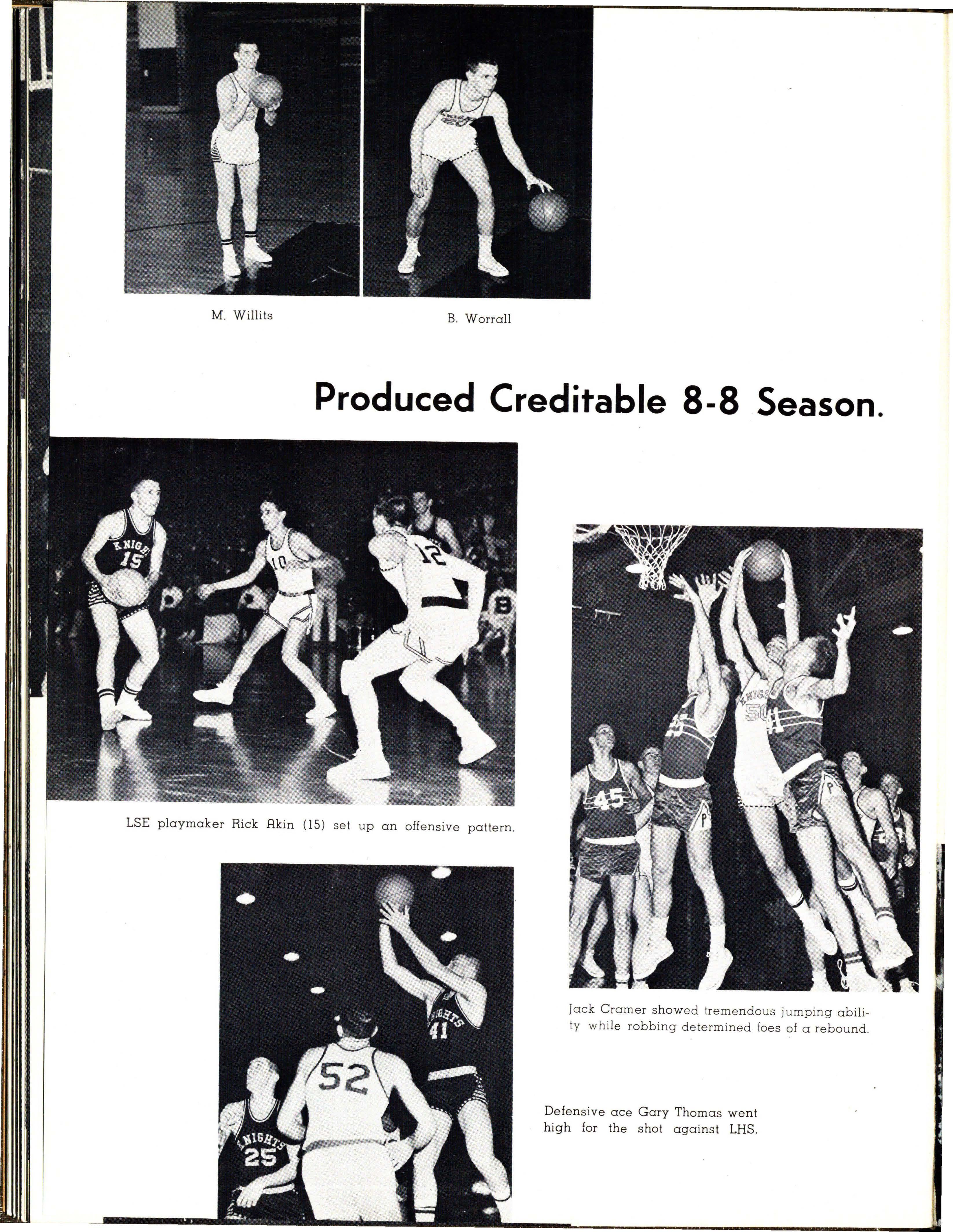 Athletes drilled incessantly to reach the maximum point of physical efficiency. Forming a pleasant habit were the swimmers as they splashed to their third consecutive State Swimming Championship. LSE's wrestling team enjoyed its finest season.