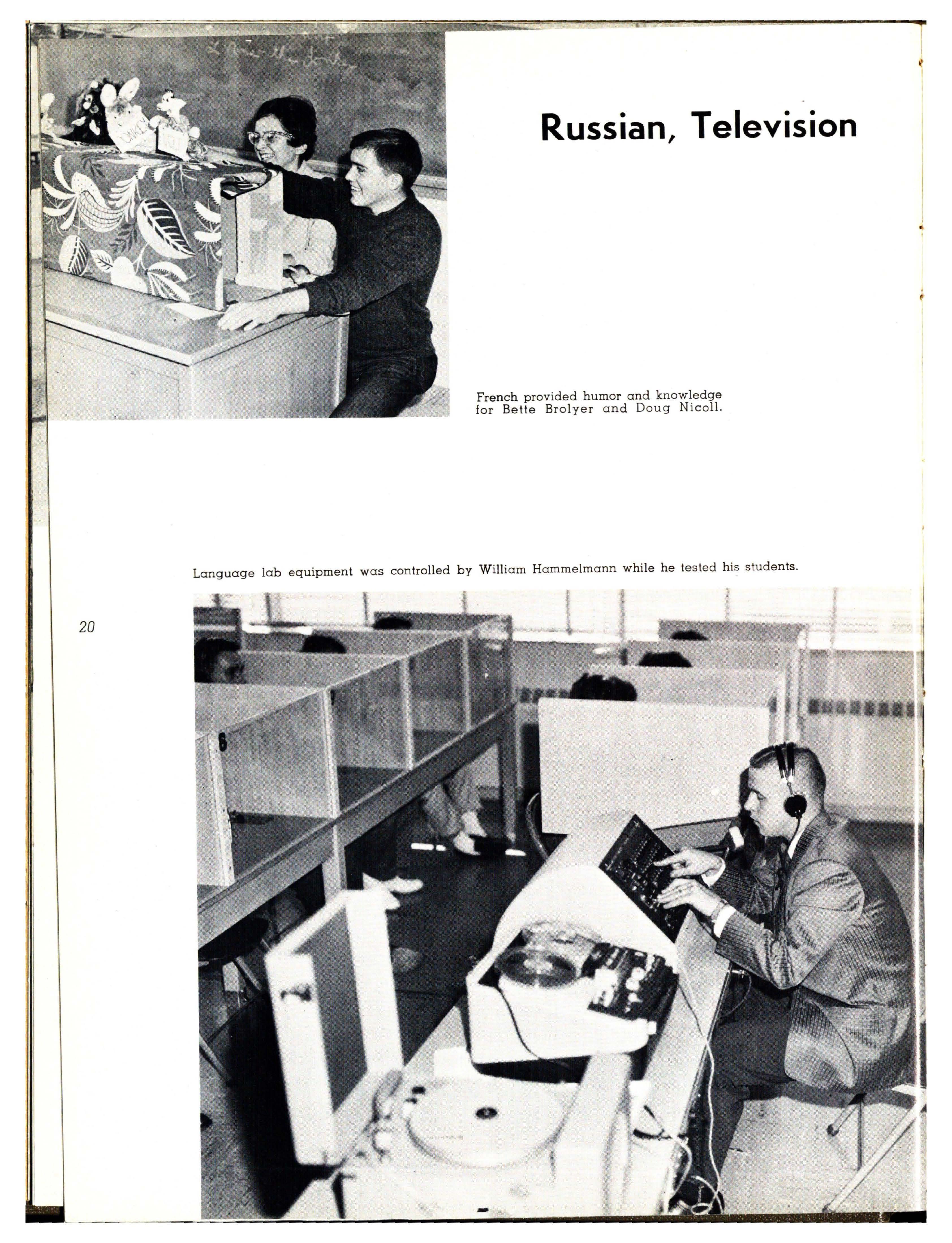 Language lab equipment was controlled by William Hammelmann while he tested his students.