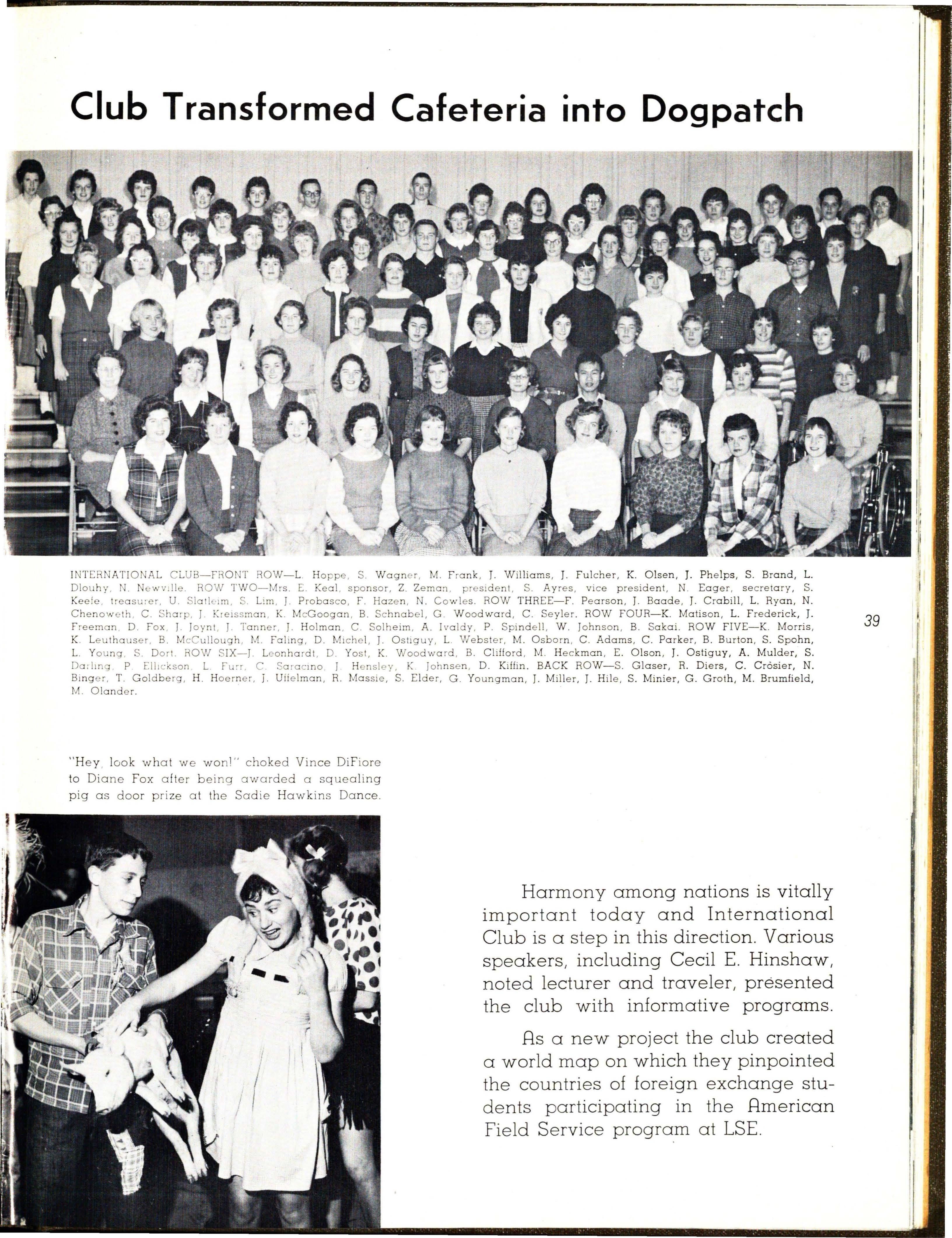 I NTERNATIONAL C LUB-FRONT ROW -L Ho ppe, S. Wagn e r , M. F ran k , T Willi am s, T Fu lcher, K. Olsen, J. Ph e lps , S Brand , L. Dlouhy , N Ne wv.lle ROW TWO-Mrs. E. Keal , sponsor , Z Zeman , presi dent , S. Ayres, vice president , N Eager , se cret ary, S Kee fe. tr easurer, U. Sl atl e1m, S. Lim , J Proba sc o , F. Hazen , N. Cowl e s. ROW TH REE- F Pe arson , T Baade , J Crabill , L. Rya n, N. Chenow e th , C. S harp , ). Kreissm an , K Mc Googan , B Sc hnab el, G Wo odwar d , C. Seyler. ROW FOUR-K Matison, L. F rederick, J F reeman , D F ox , J Joynt , J Tann er, J. H olman , C. Solh eim , A. I valdy , P Spi nd e l! , W. Tohnson , B Sa kai. RO W FIVE-K Morris ,