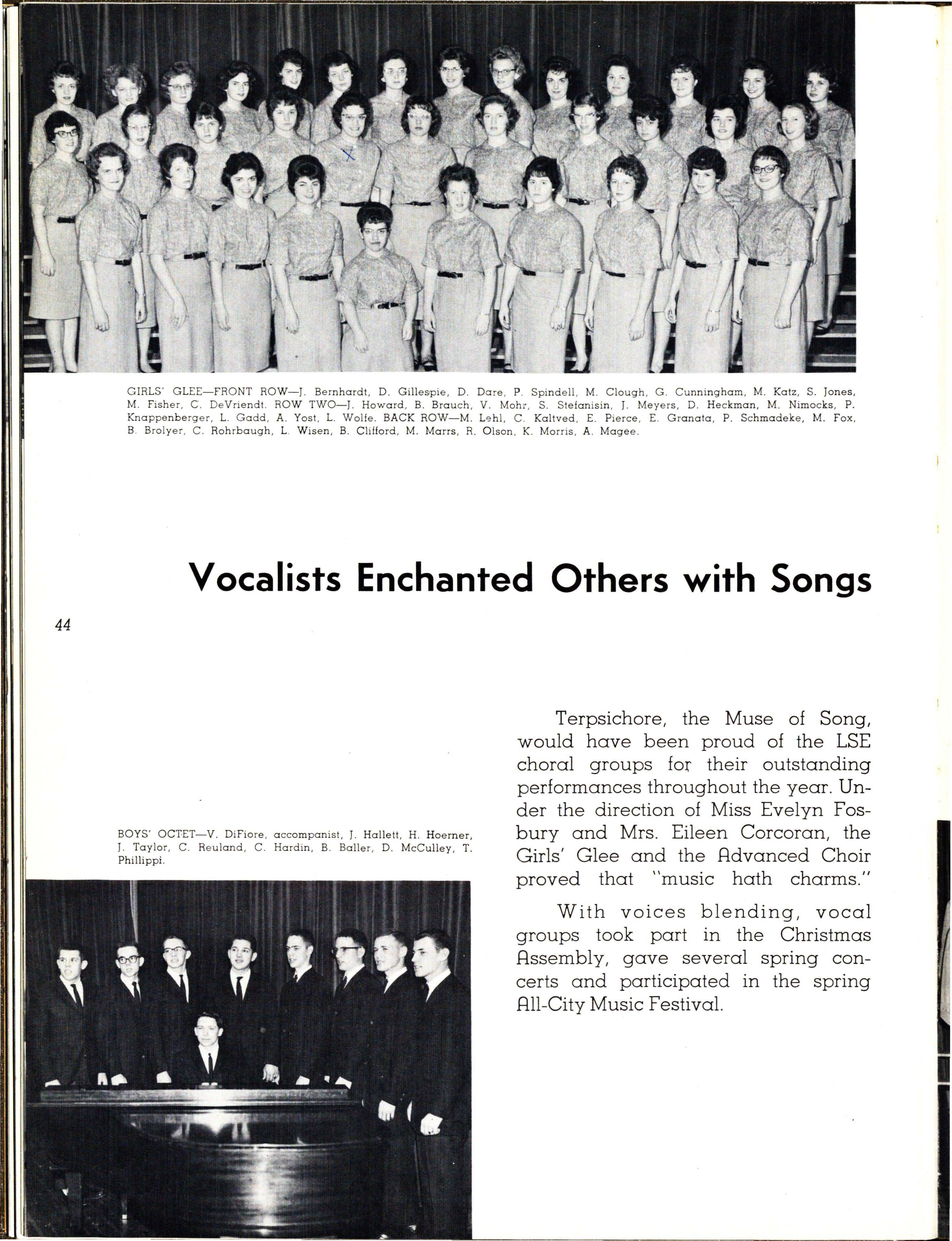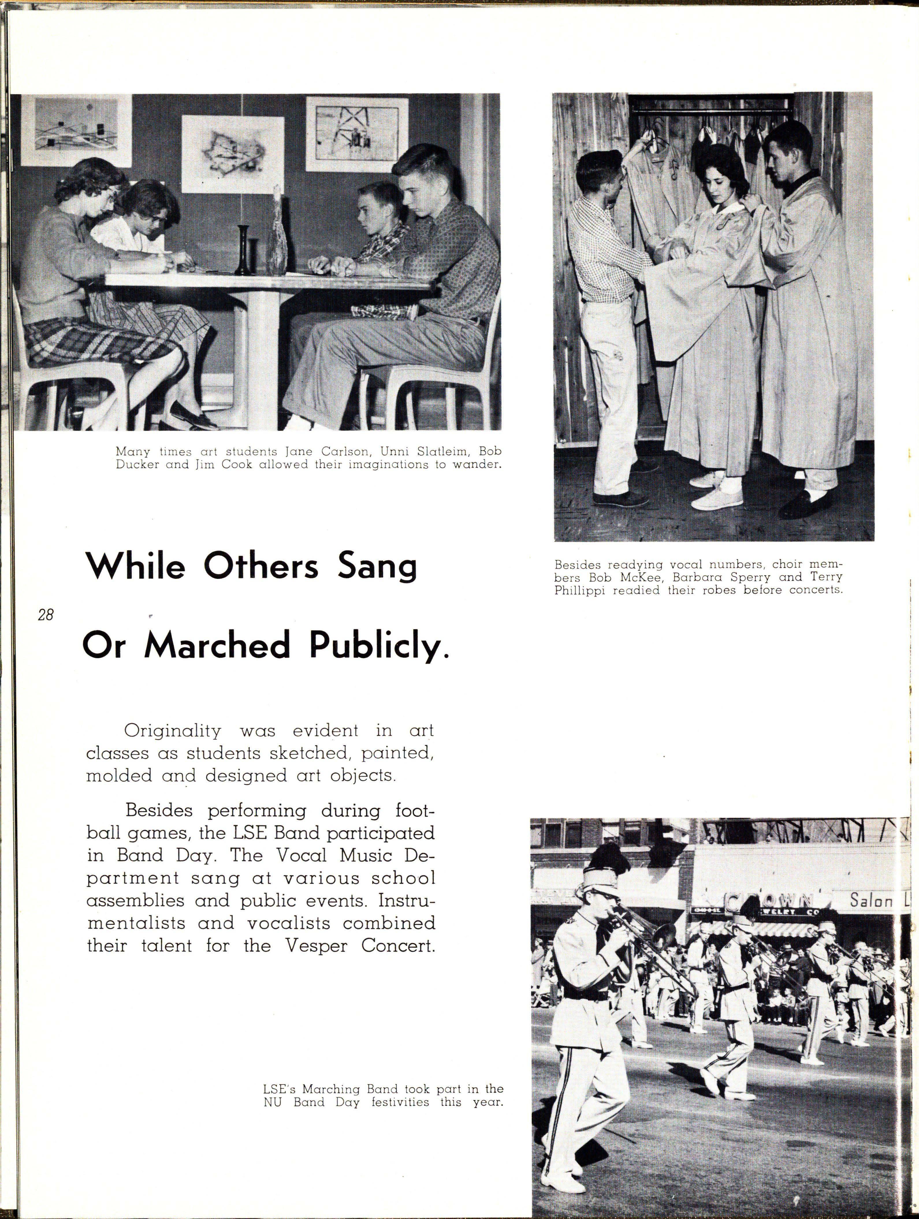 Besides performing during football games, the LSE Band participated in Band Day . The Vocal Music Department sang at various school assemblies and public events. Instrumentalists and vocalists combined their talent for the Vesper Concert.