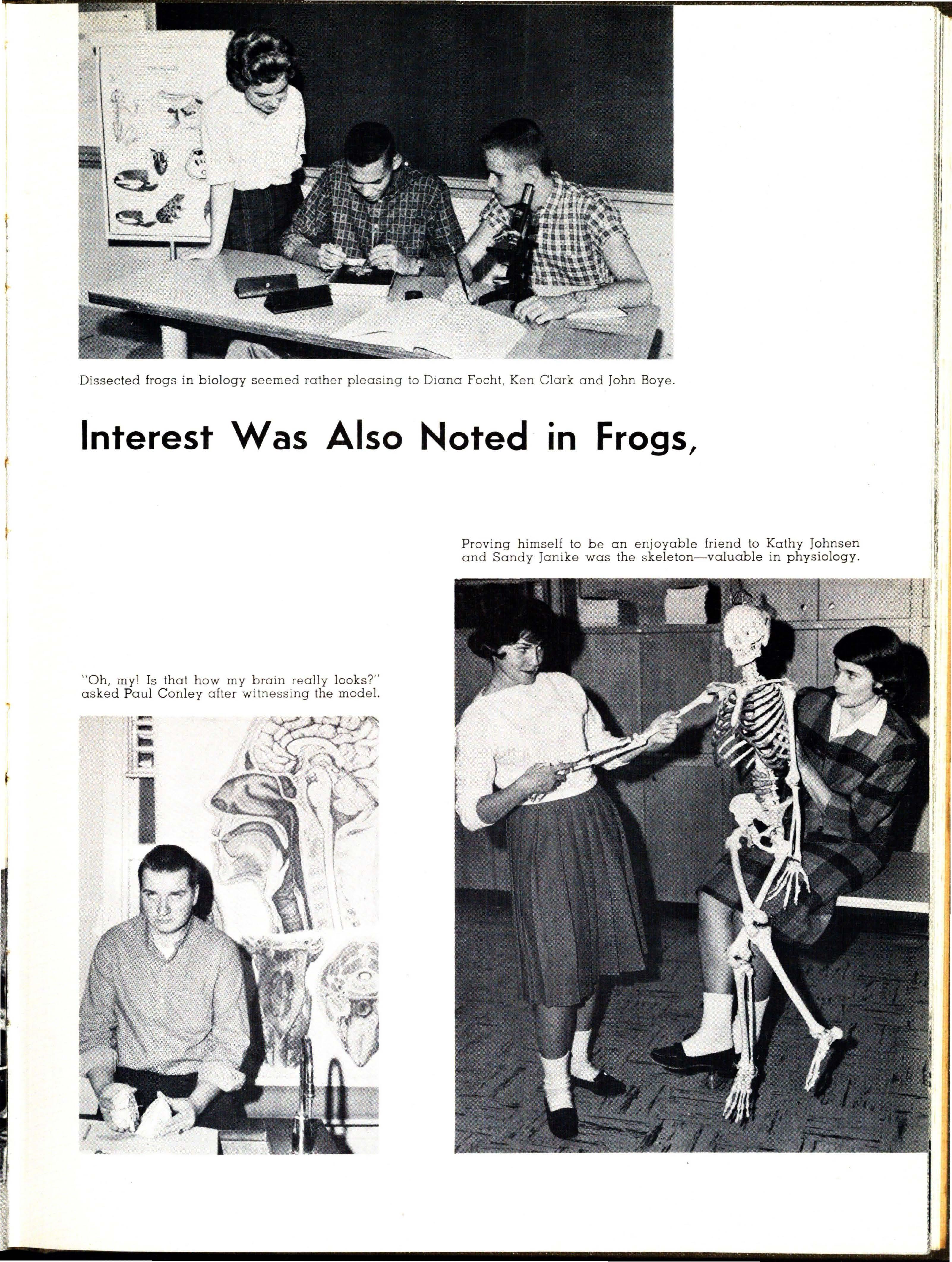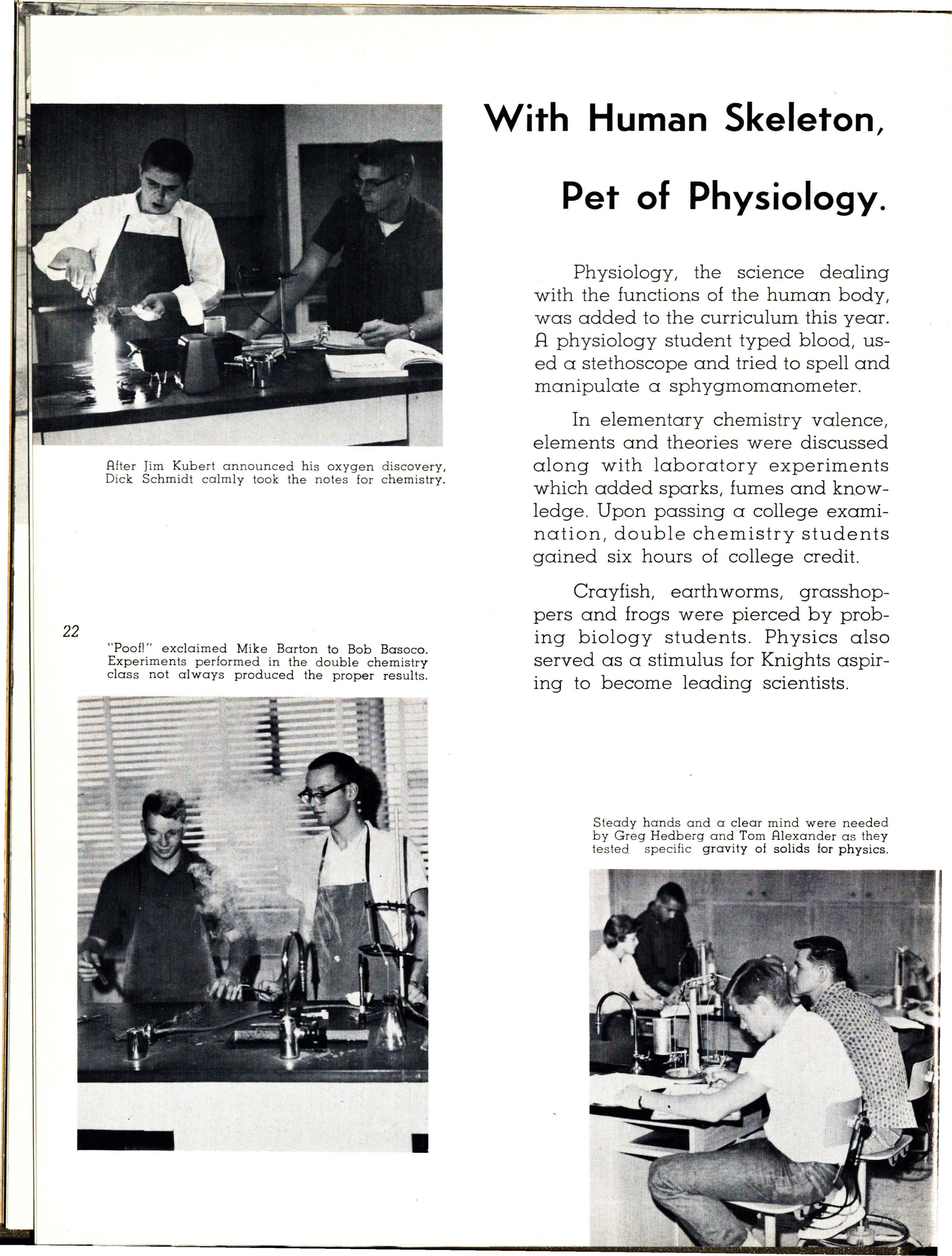 Crayfish, earthworms , grasshoppers and frogs were pierced by probing biology students. Physics also served as a stimulus for Knights aspiring to become leading scientists.