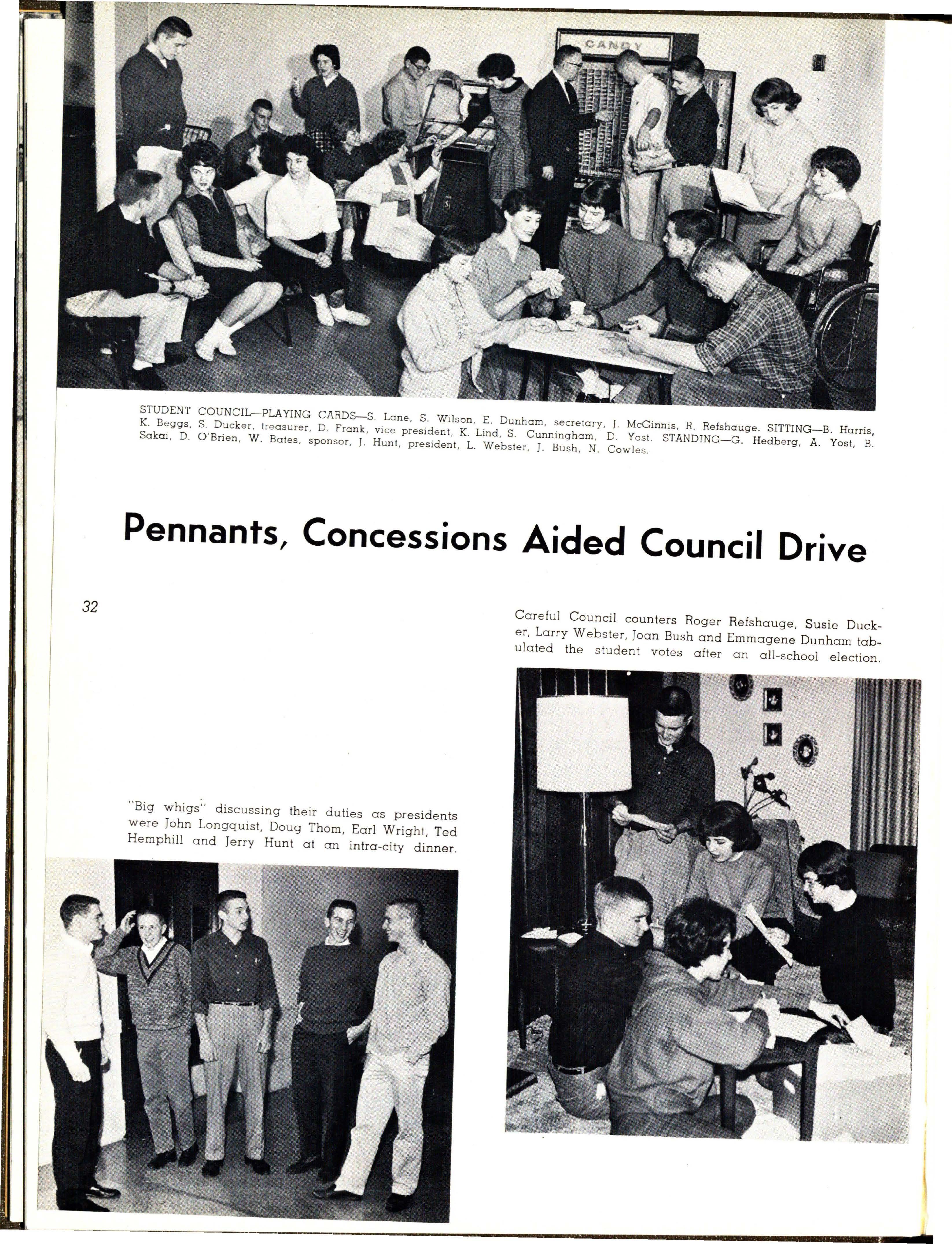 .All-school elections , originated by th e Counci l, i ncreased democratic spi rit amo n g st ude nt s . The club contributed to t he March of Dimes Fund and procured a lounge coin machine