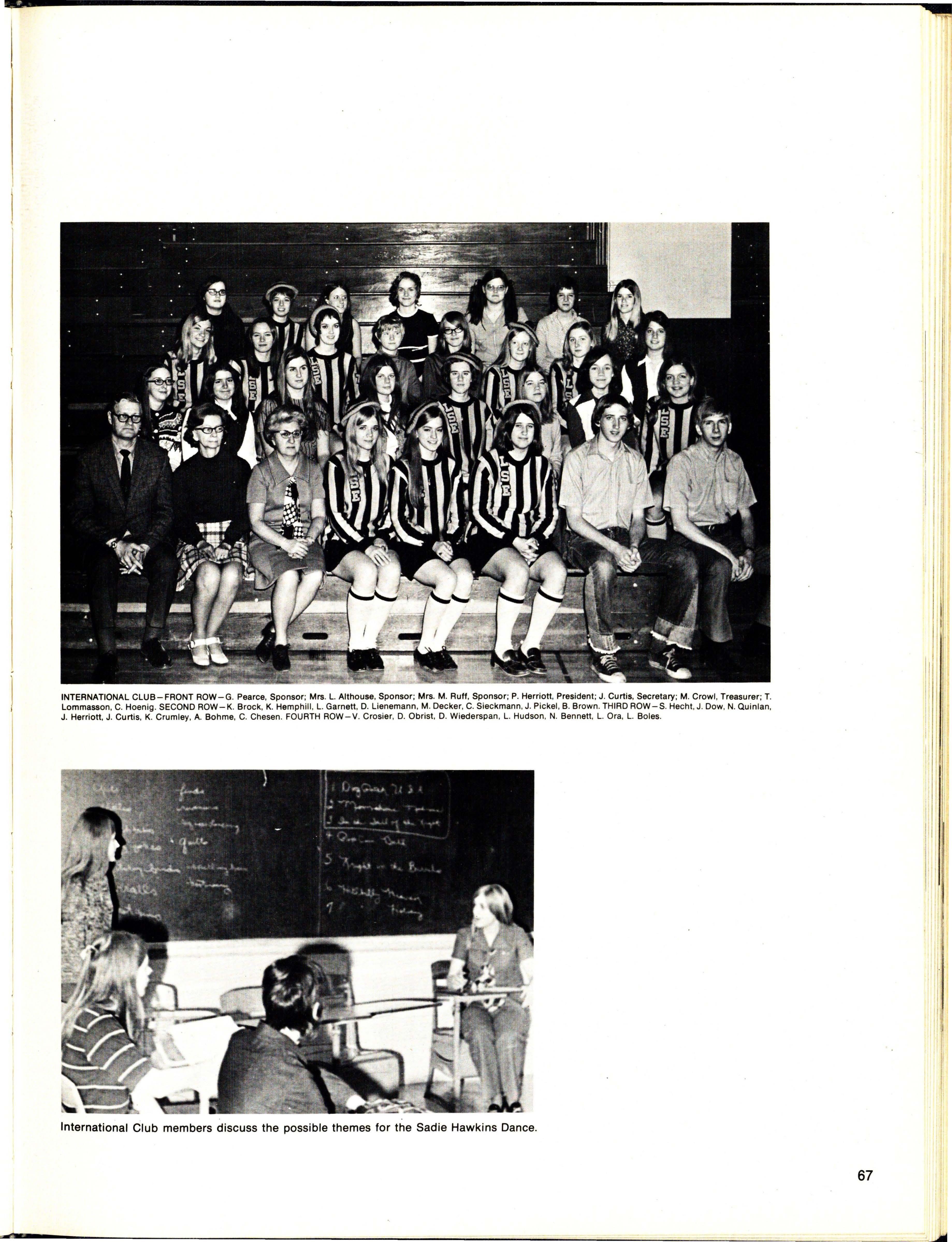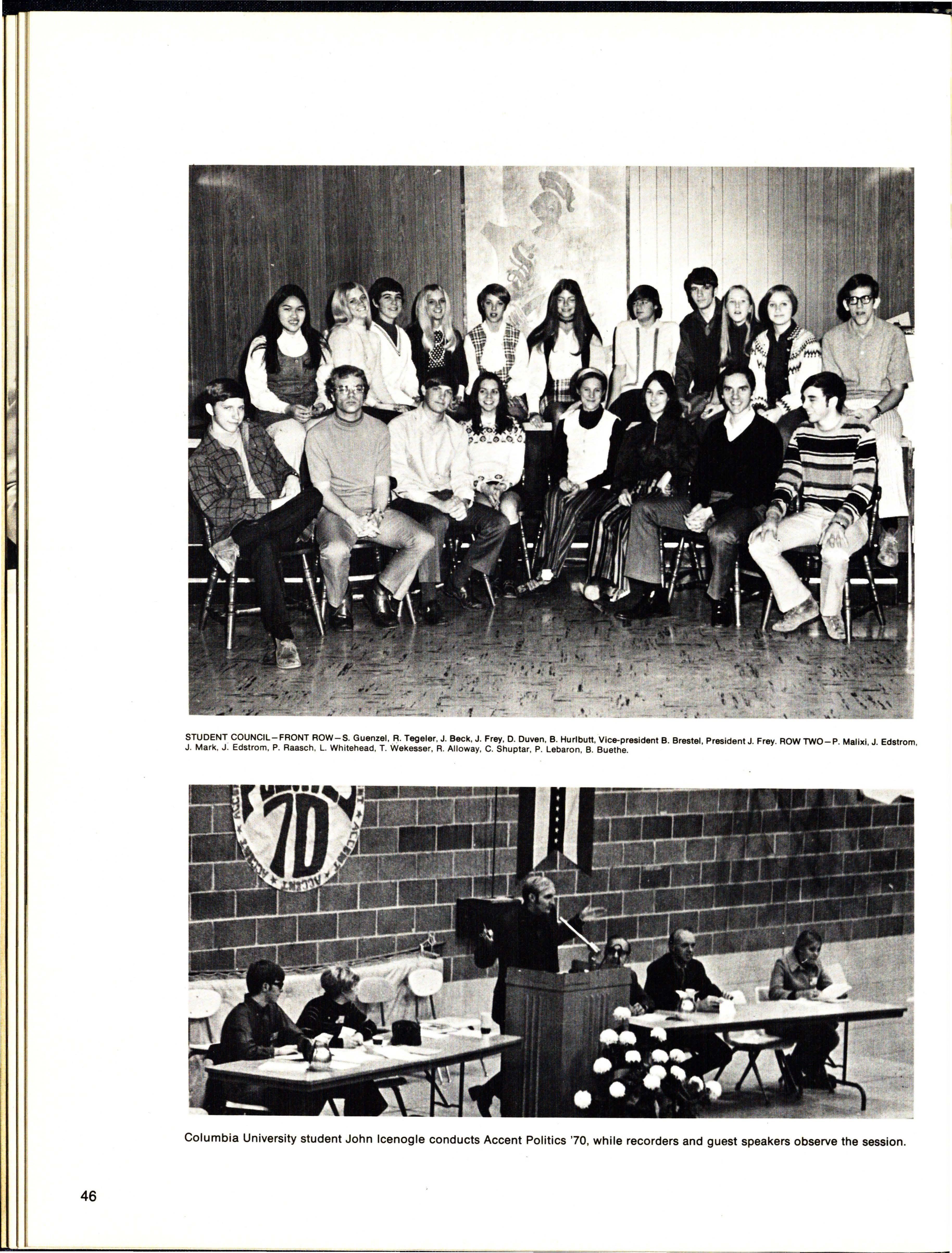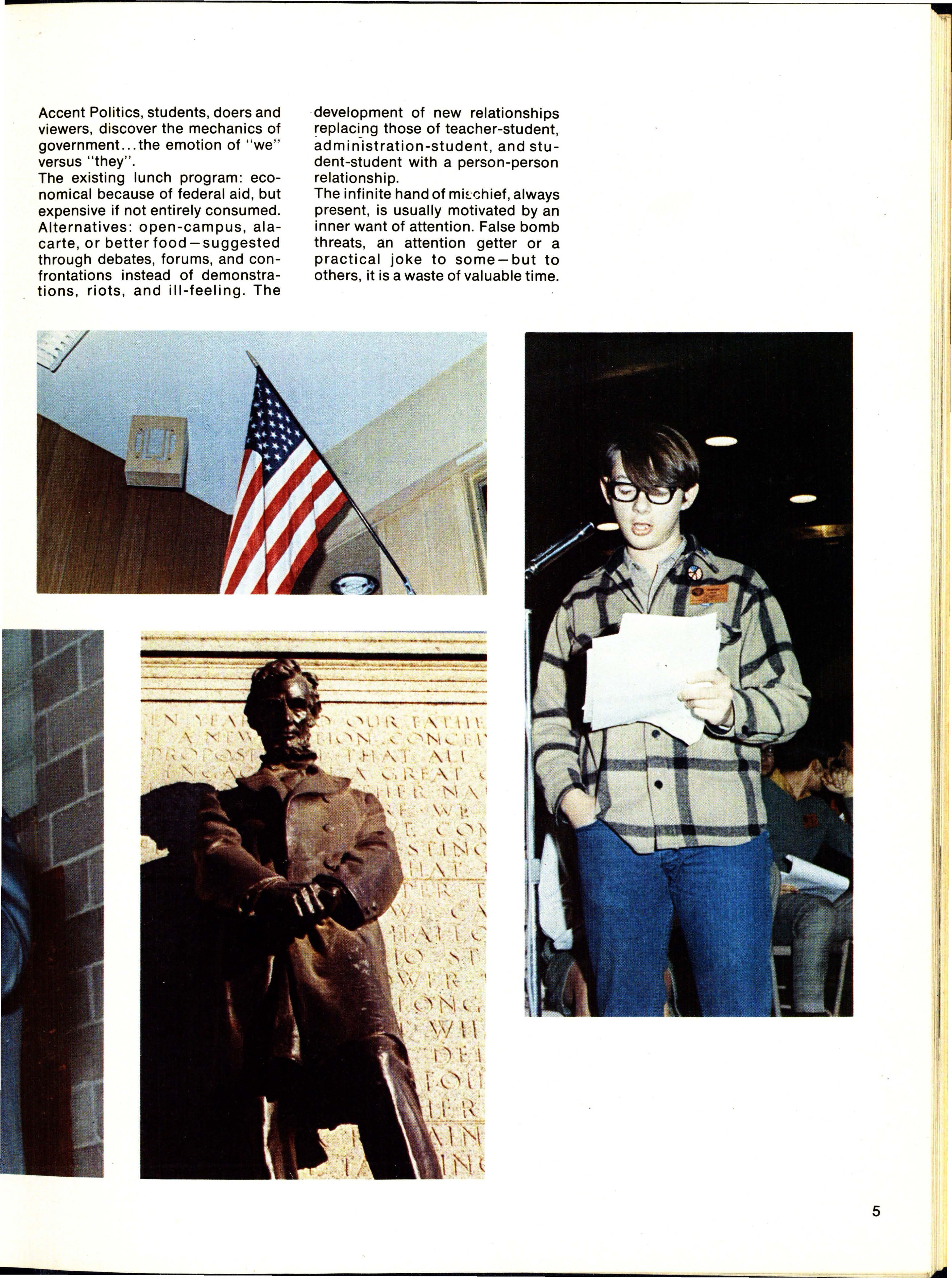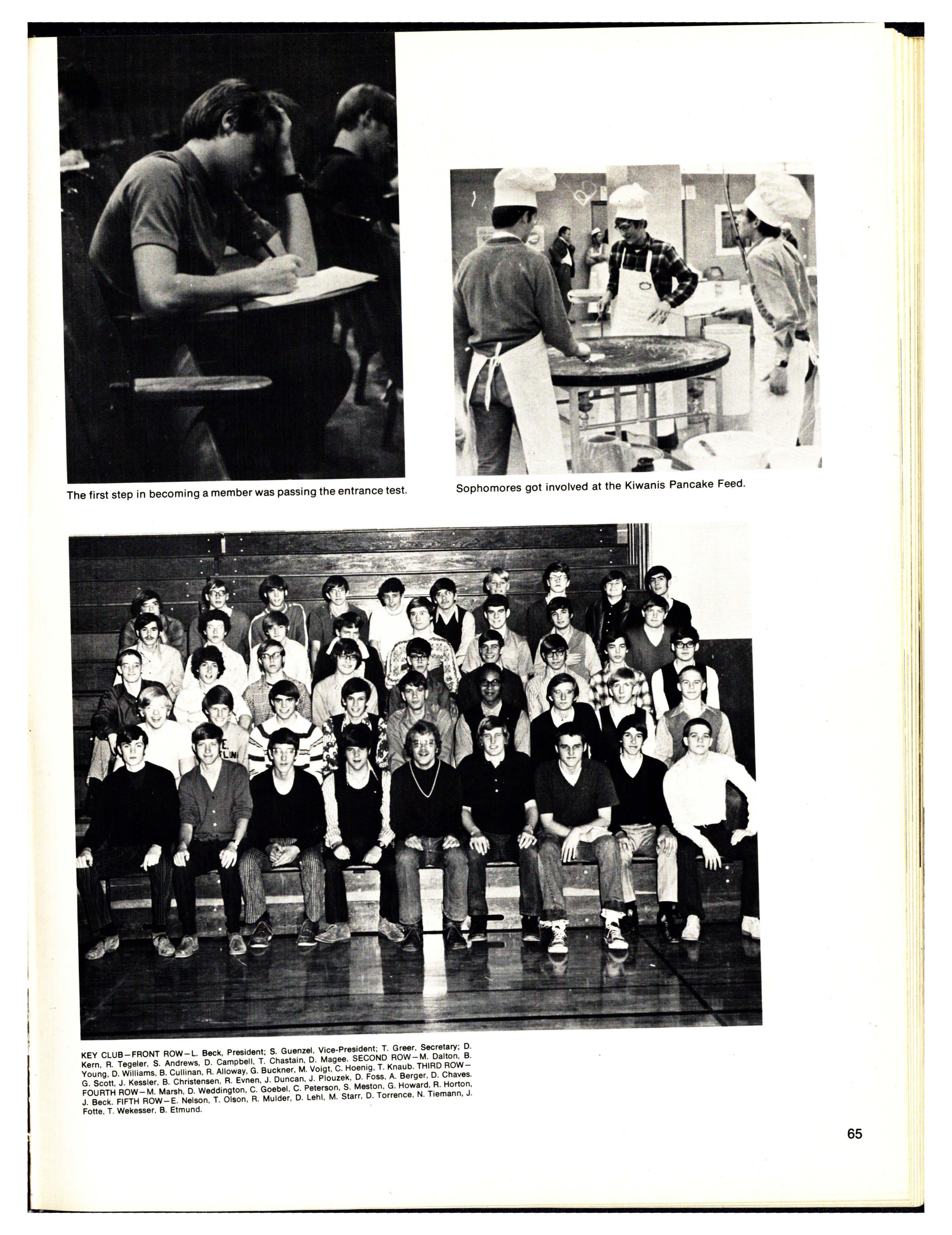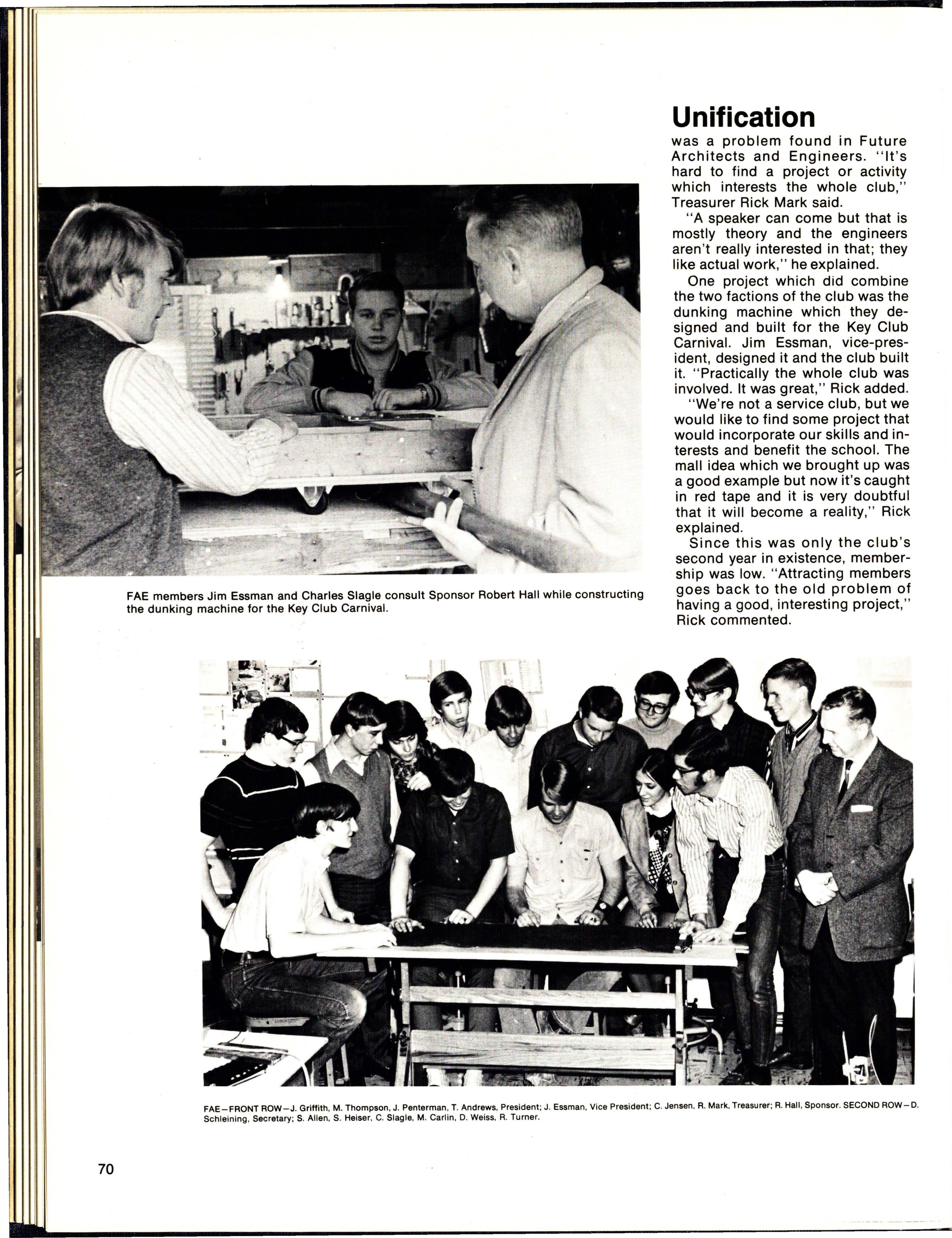 Our transition began with life as a grade schooler - pure , innocent, unsuspecting, and willing to accept anything Hands filled with insecurity , fumbling to grasp something Hands expressing love , hate , anger, friendship , and trust. We placed our trust and faith in the experienced hands of adults: teachers , parents , older brothers and sisters, anyone willing to extend understanding and guidance-and discipline. Reaching the junior high age, we played a dual role-still that of a reacher , but also that of a leader. We began to utilize the experience and knowledge secured from others and in turn use this to aid new seekers. During high school, we leaned more toward the role of a leader, aiding others around us, activating our life in school , community, and state. We discarded the majority of our insecurities in preparation of new and different challenges. But to meet tomorrow ' s challenges , both sets of hands are essential-one to lead and one to reach out and grasp. For those that reach are those that wi II guide the future.