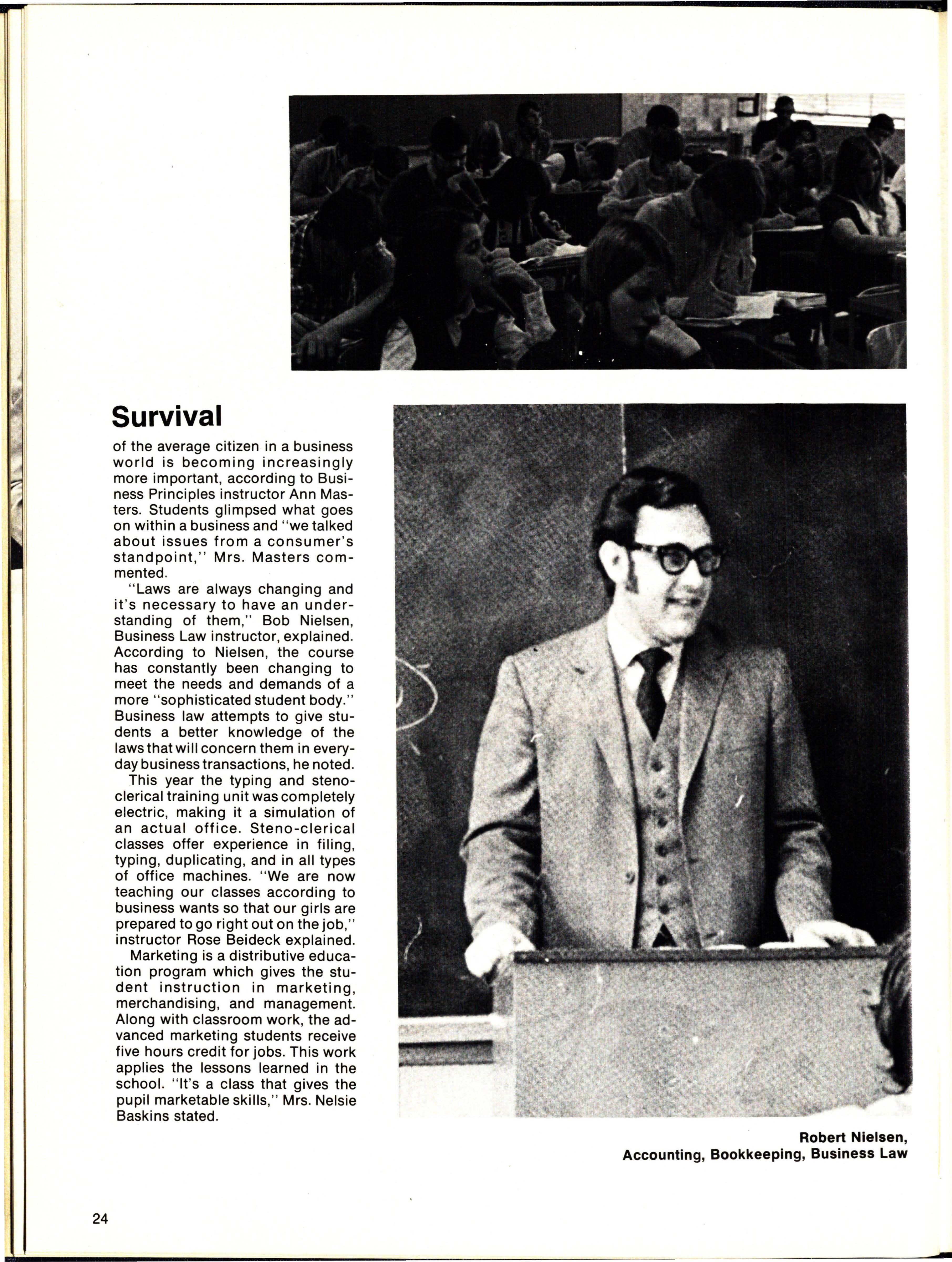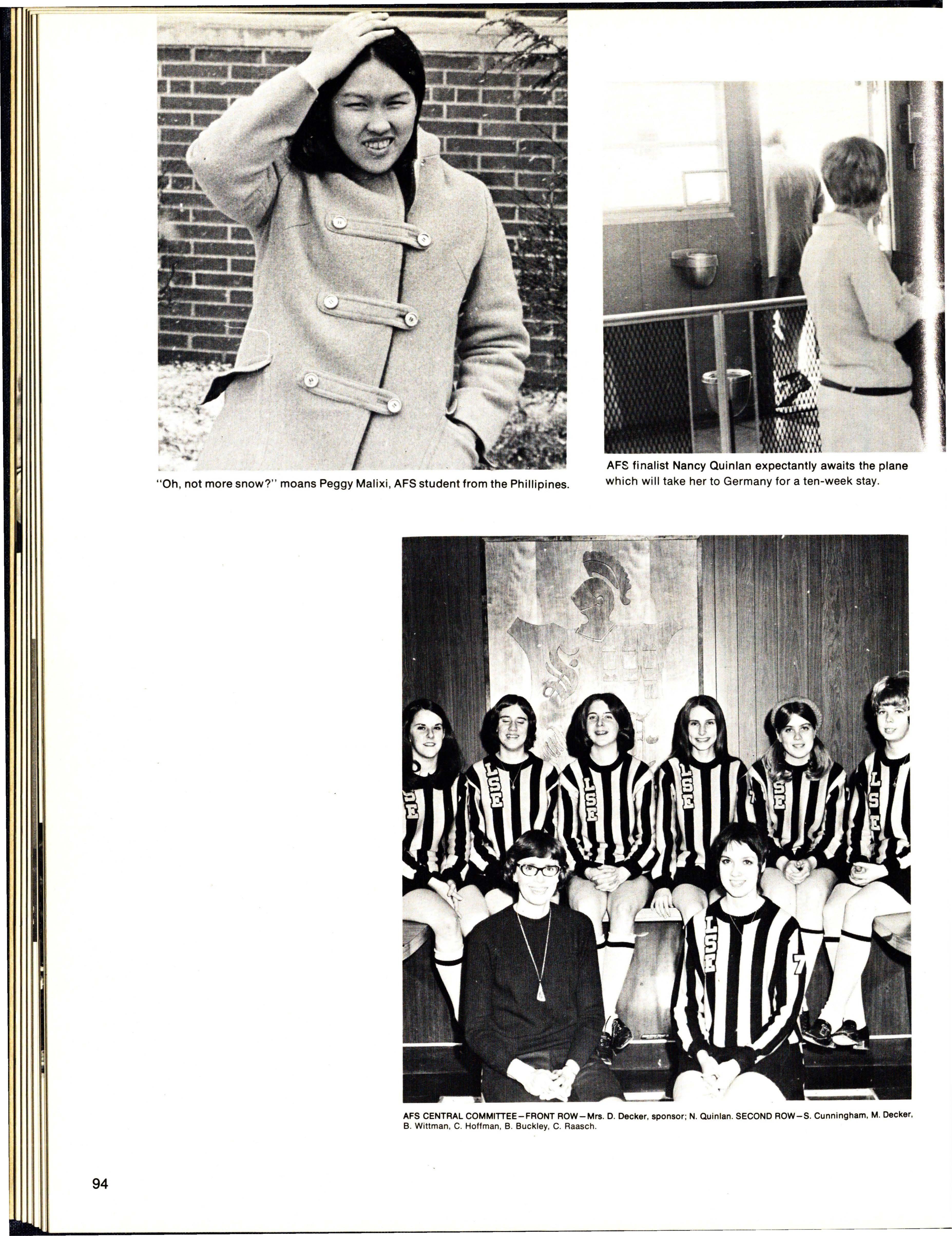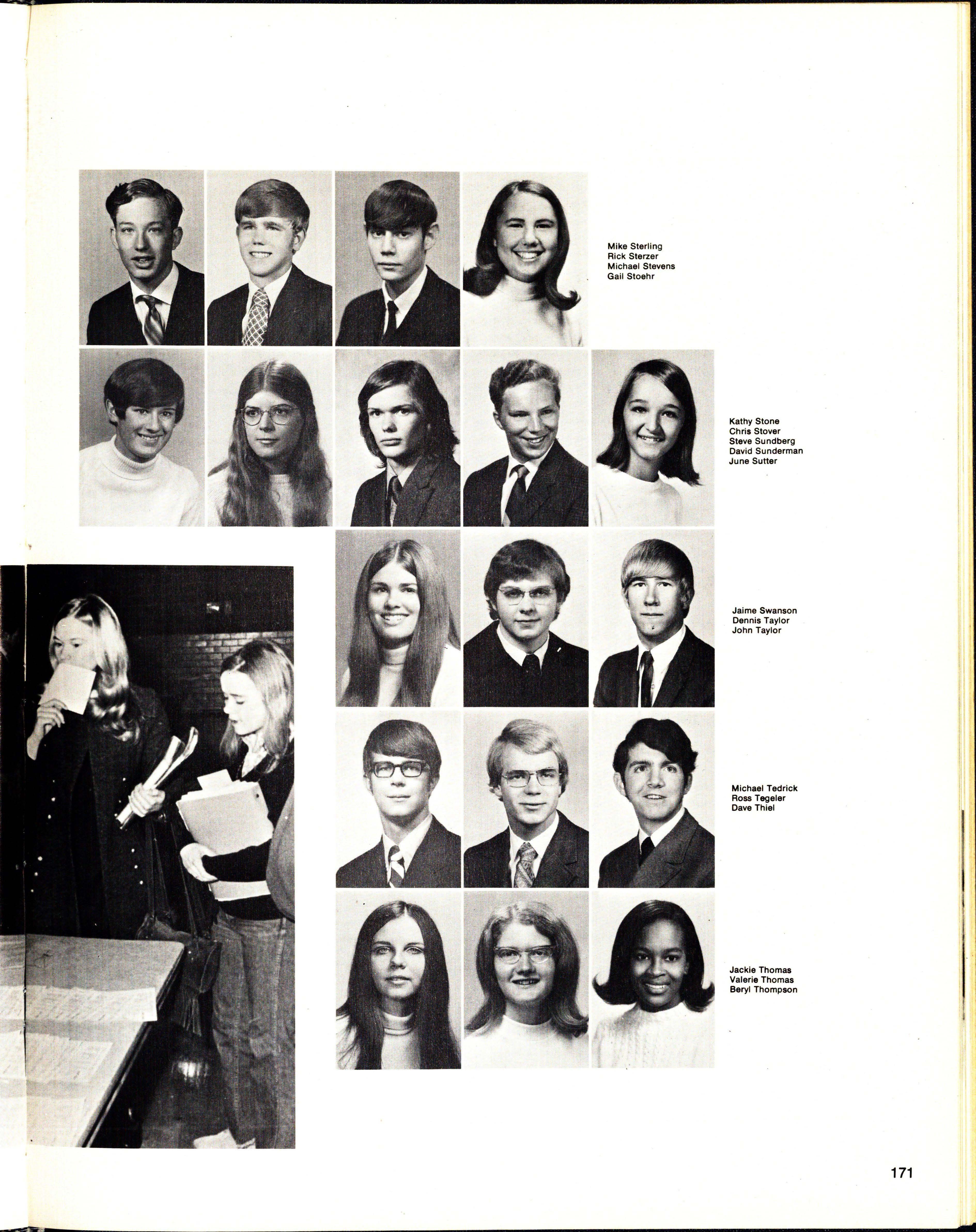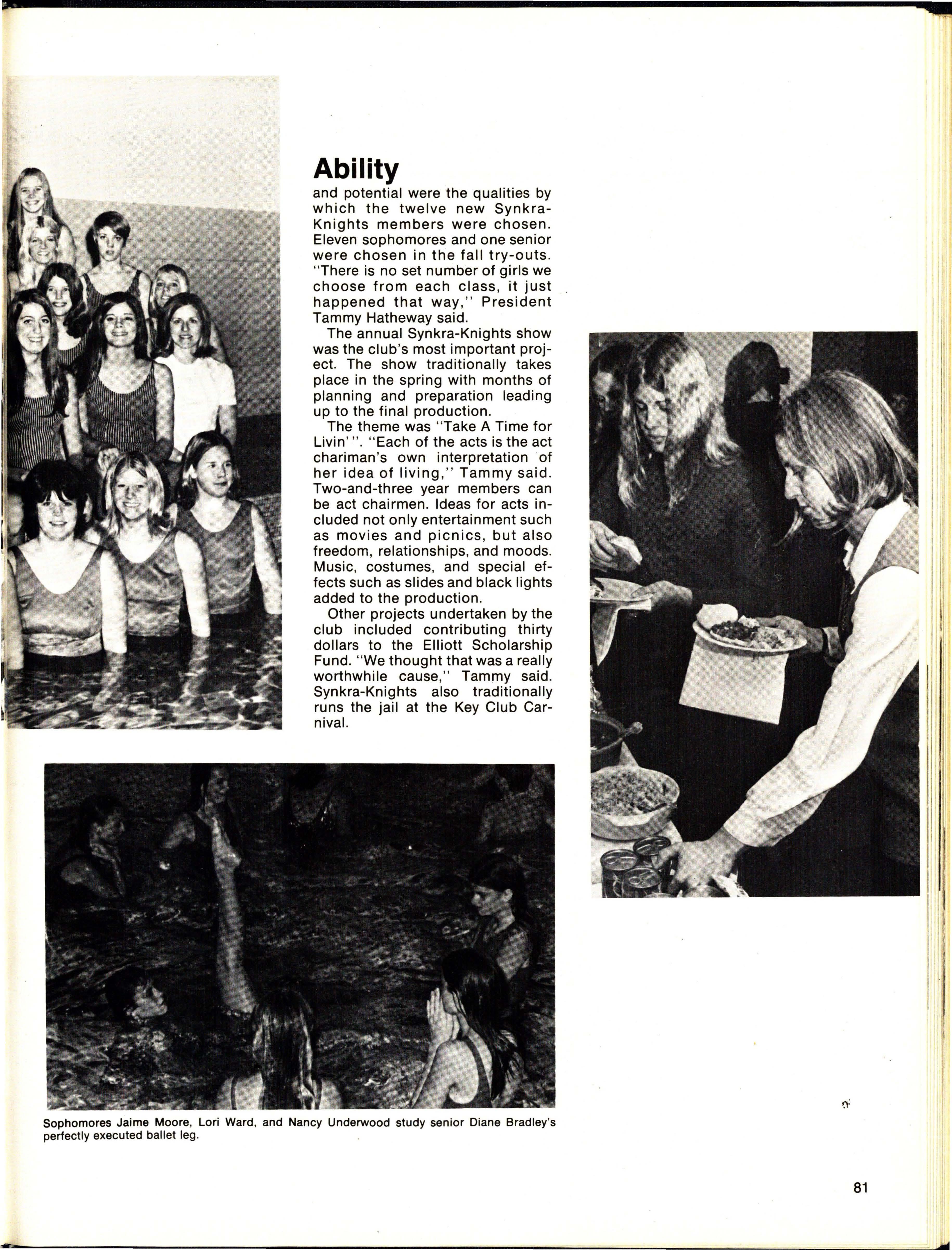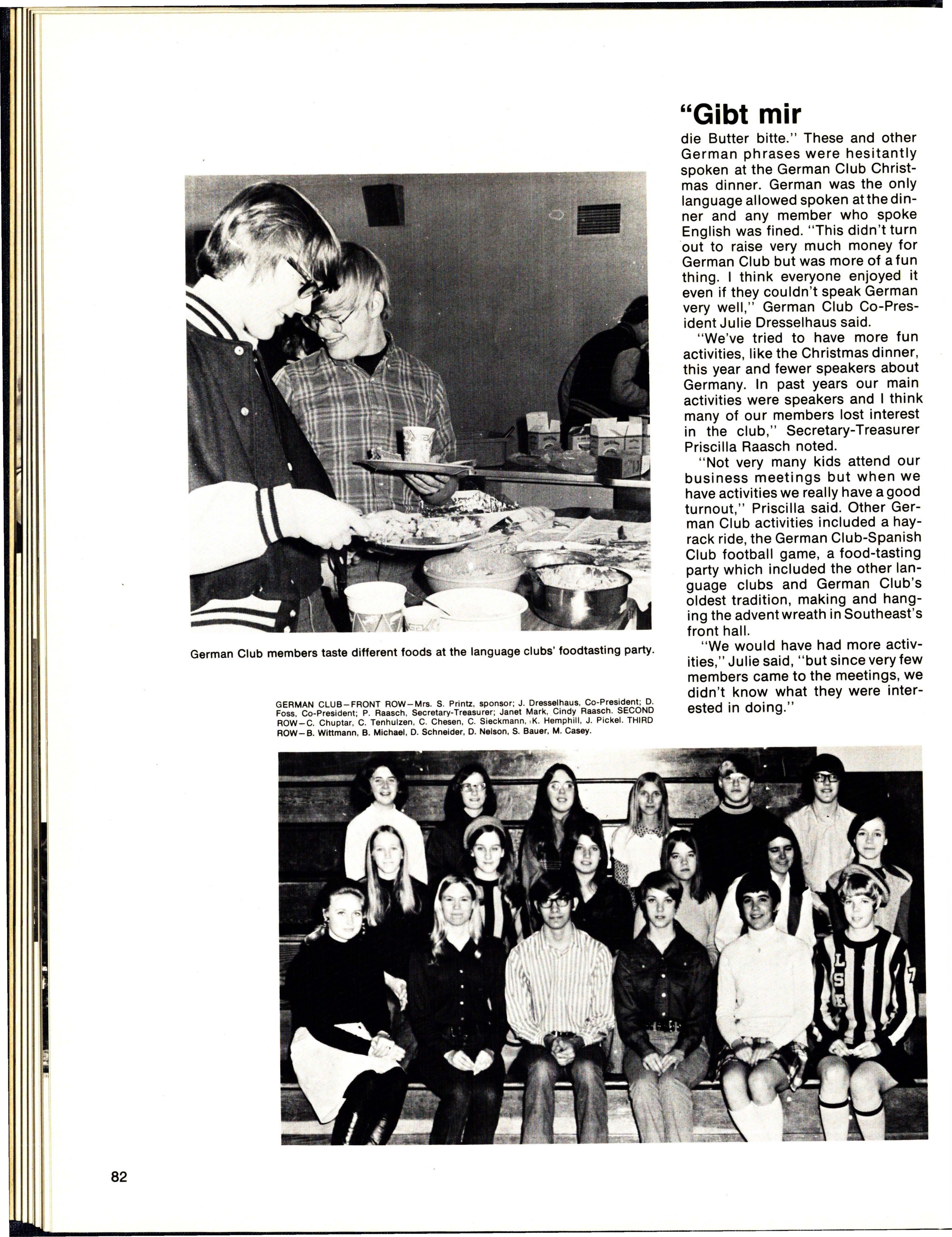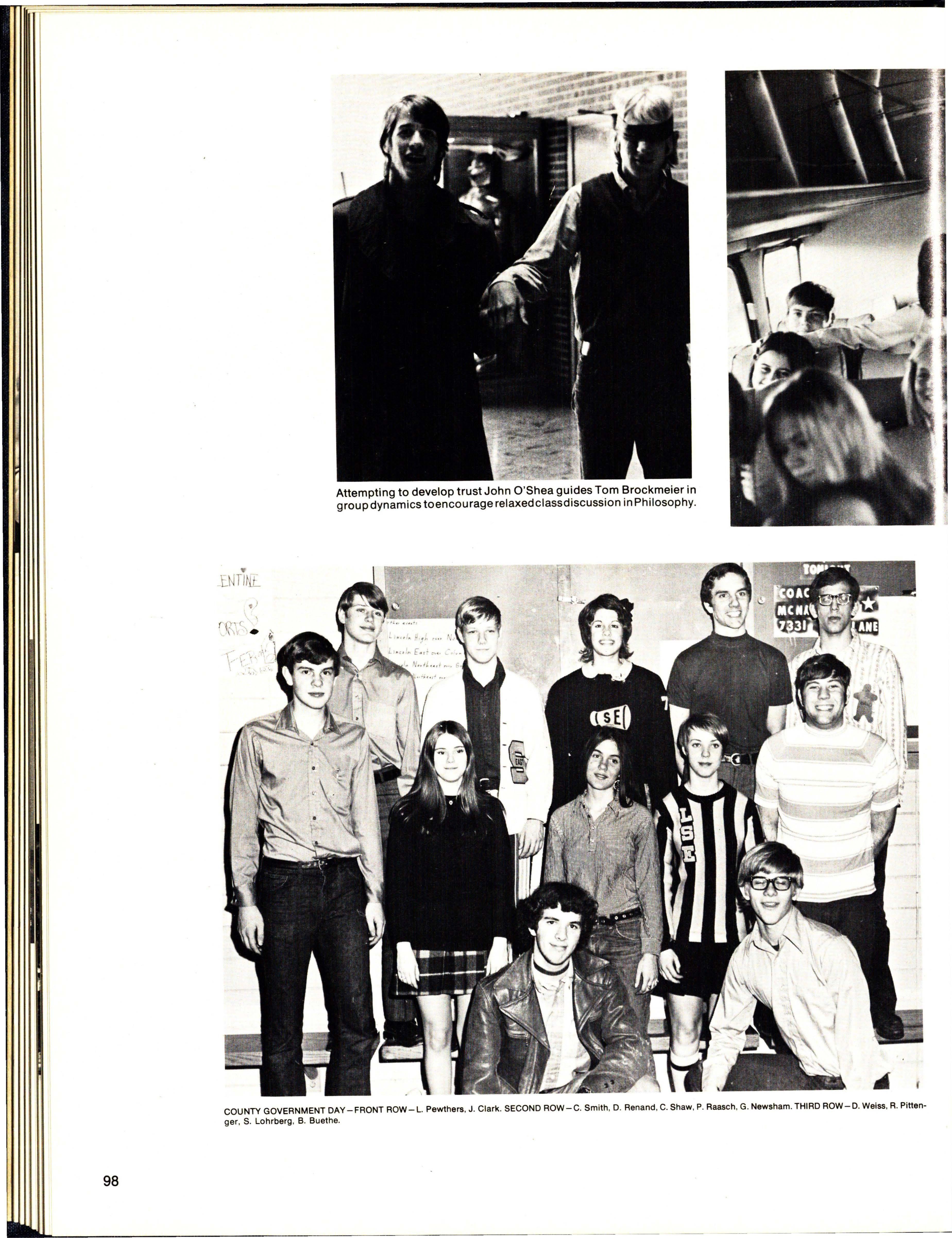 Our transition began with life as a grade schooler - pure , innocent, unsuspecting, and willing to accept anything Hands filled with insecurity , fumbling to grasp something Hands expressing love , hate , anger, friendship , and trust. We placed our trust and faith in the experienced hands of adults: teachers , parents , older brothers and sisters, anyone willing to extend understanding and guidance-and discipline. Reaching the junior high age, we played a dual role-still that of a reacher , but also that of a leader. We began to utilize the experience and knowledge secured from others and in turn use this to aid new seekers. During high school, we leaned more toward the role of a leader, aiding others around us, activating our life in school , community, and state. We discarded the majority of our insecurities in preparation of new and different challenges. But to meet tomorrow ' s challenges , both sets of hands are essential-one to lead and one to reach out and grasp. For those that reach are those that wi II guide the future.