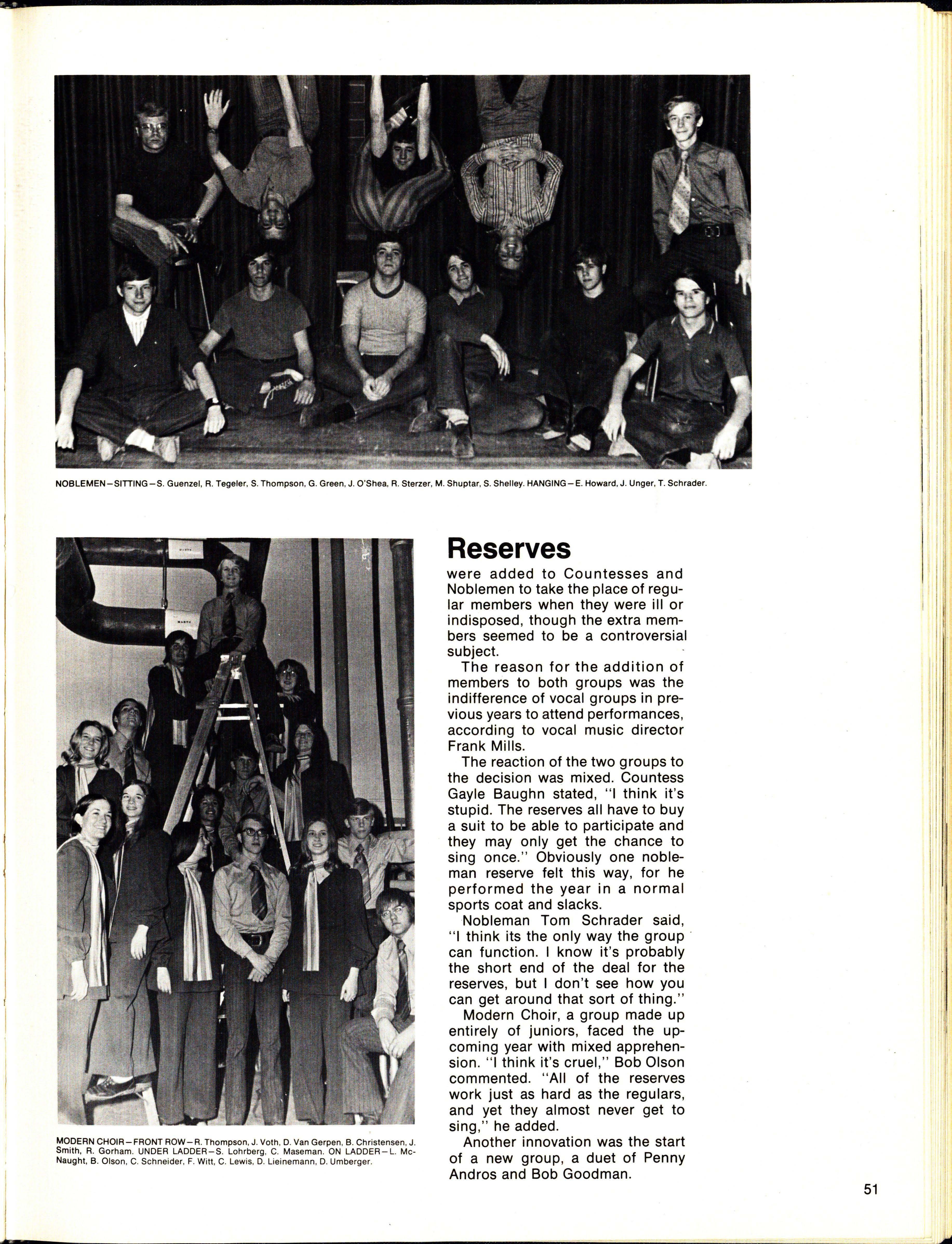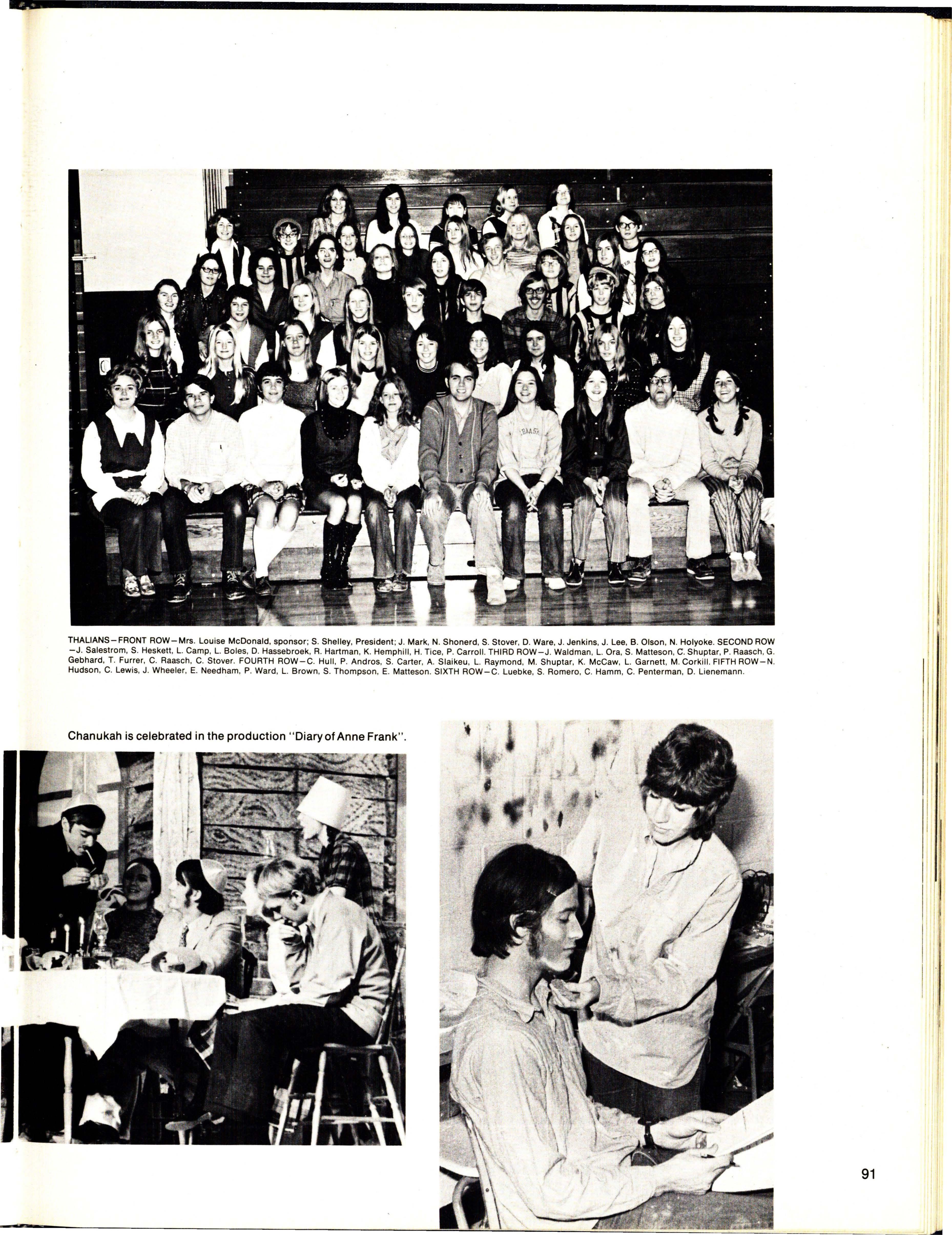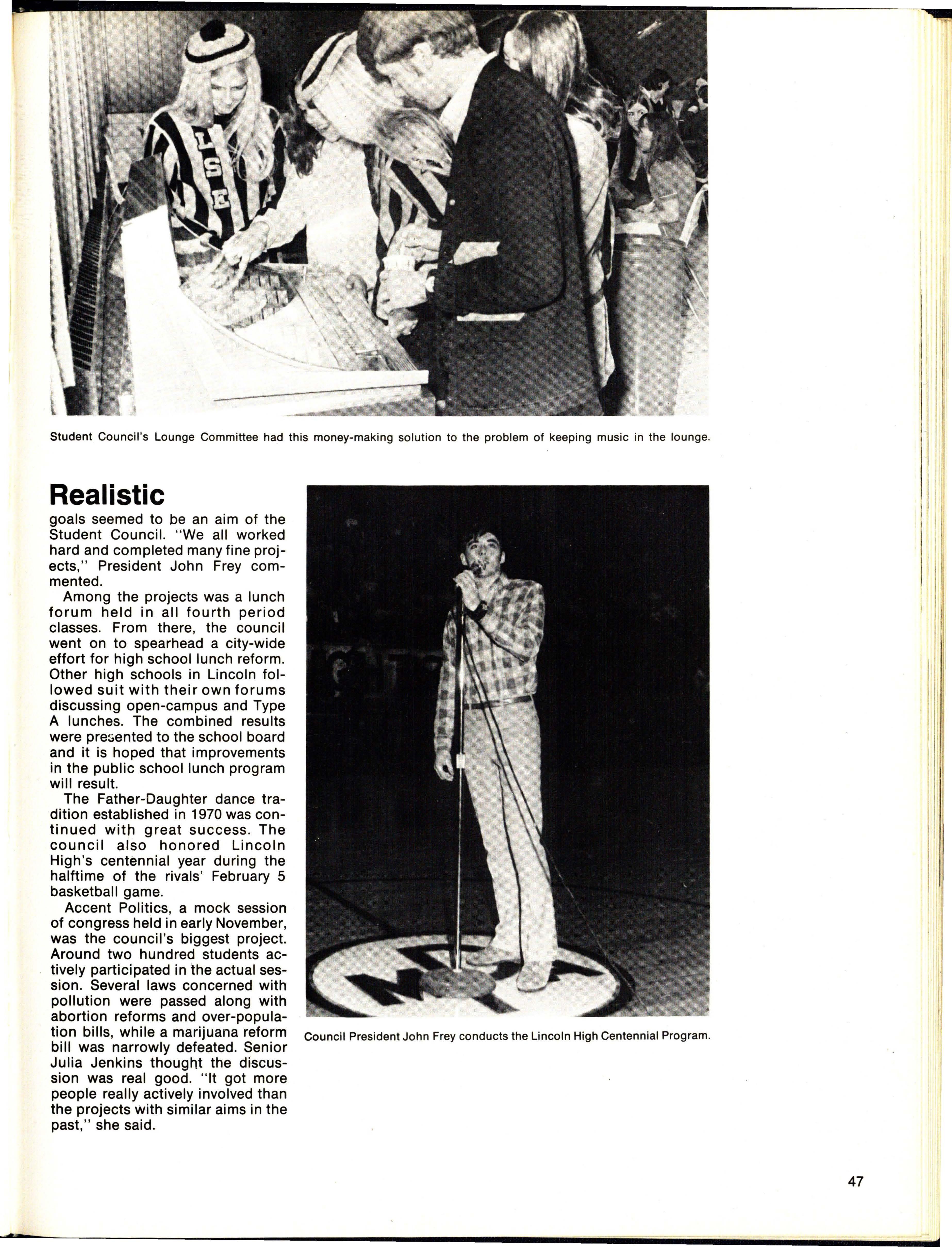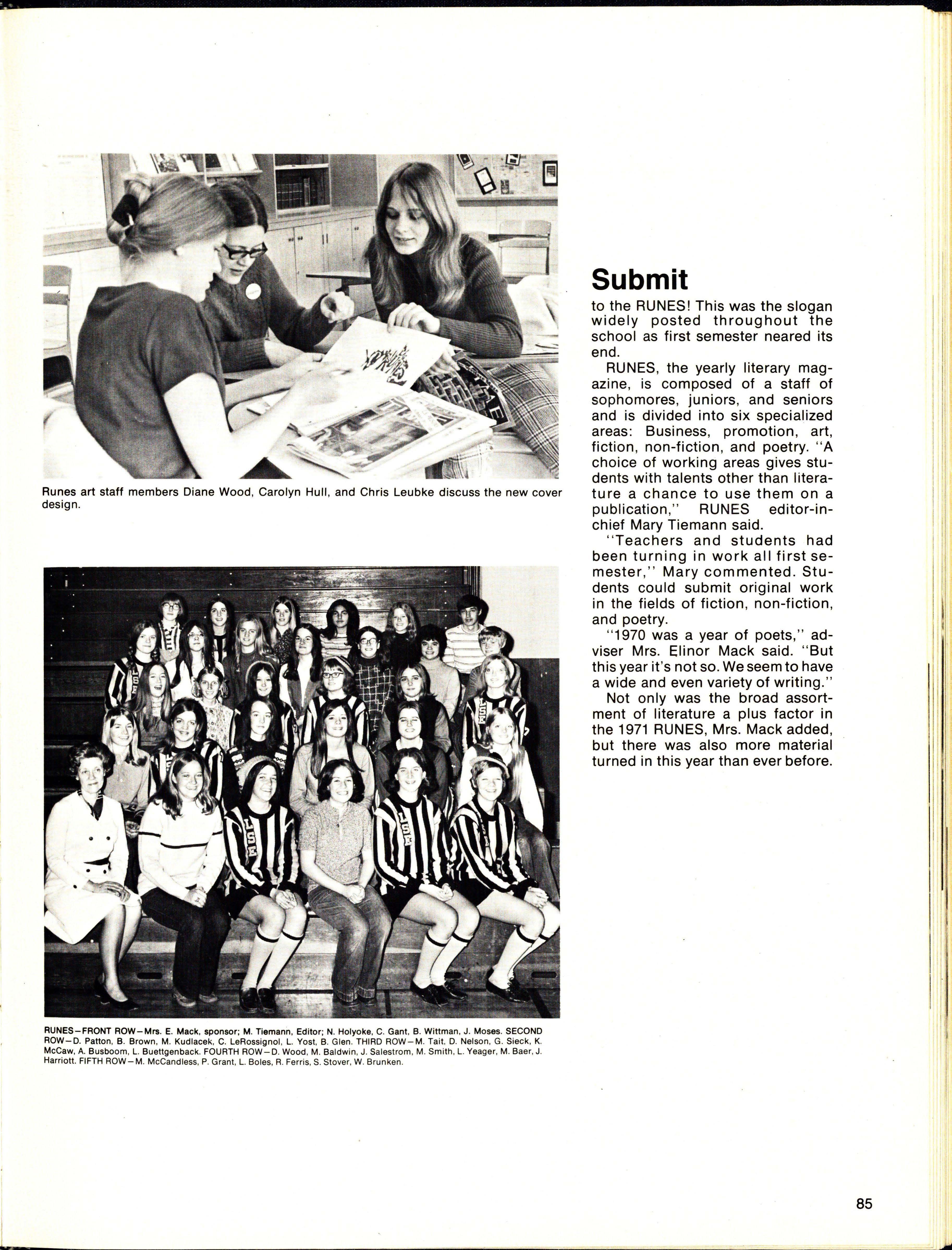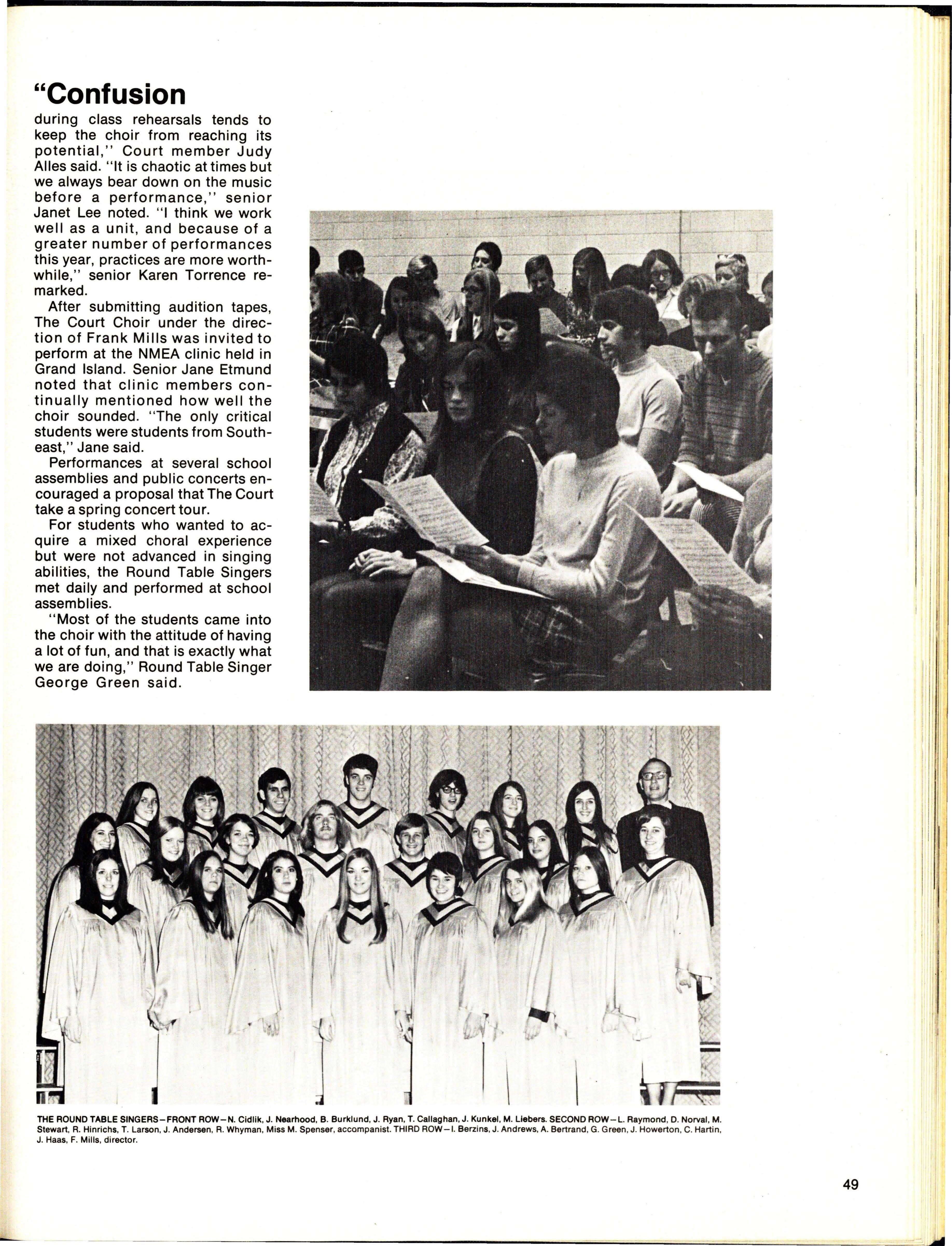 Our transition began with life as a grade schooler - pure , innocent, unsuspecting, and willing to accept anything Hands filled with insecurity , fumbling to grasp something Hands expressing love , hate , anger, friendship , and trust. We placed our trust and faith in the experienced hands of adults: teachers , parents , older brothers and sisters, anyone willing to extend understanding and guidance-and discipline. Reaching the junior high age, we played a dual role-still that of a reacher , but also that of a leader. We began to utilize the experience and knowledge secured from others and in turn use this to aid new seekers. During high school, we leaned more toward the role of a leader, aiding others around us, activating our life in school , community, and state. We discarded the majority of our insecurities in preparation of new and different challenges. But to meet tomorrow ' s challenges , both sets of hands are essential-one to lead and one to reach out and grasp. For those that reach are those that wi II guide the future.