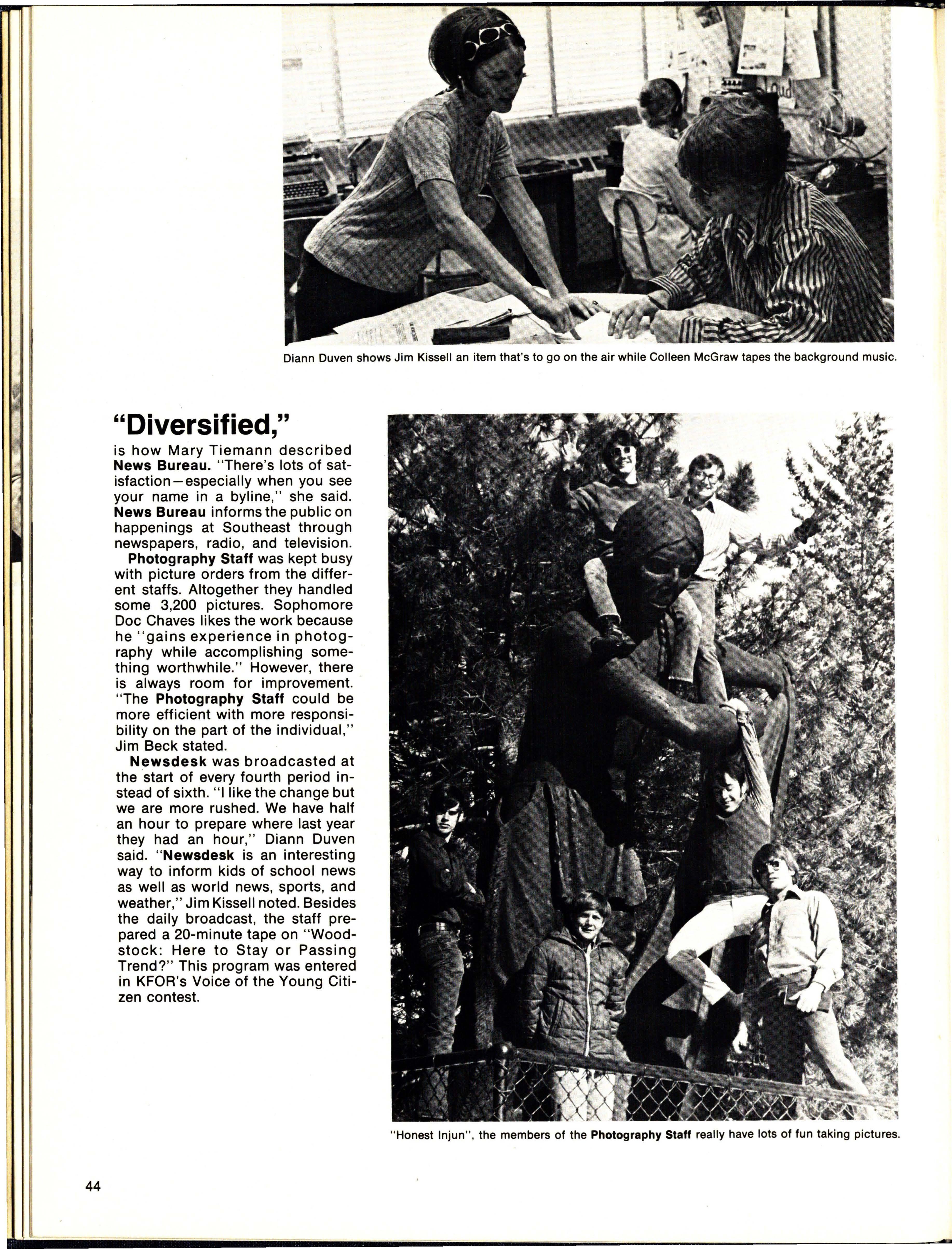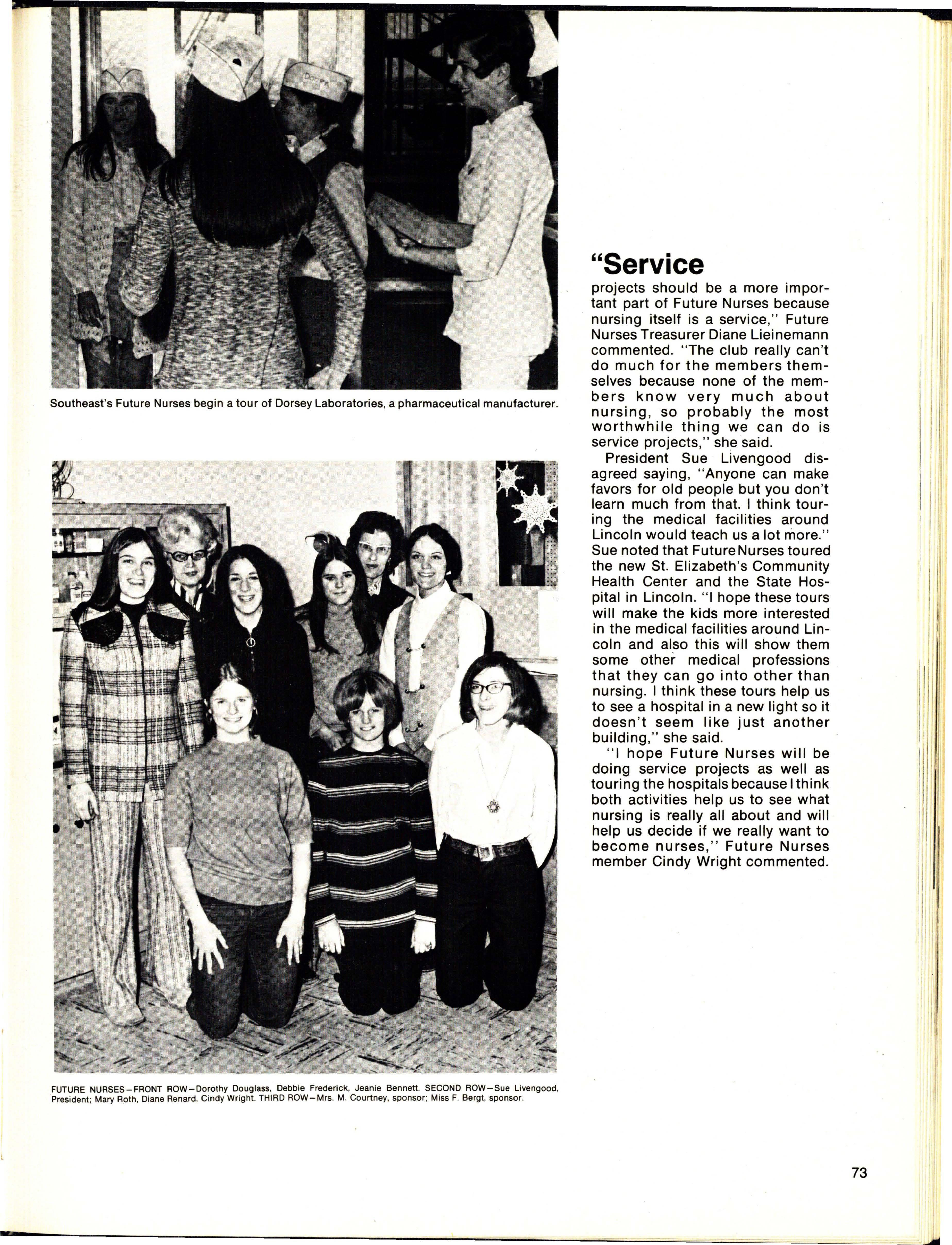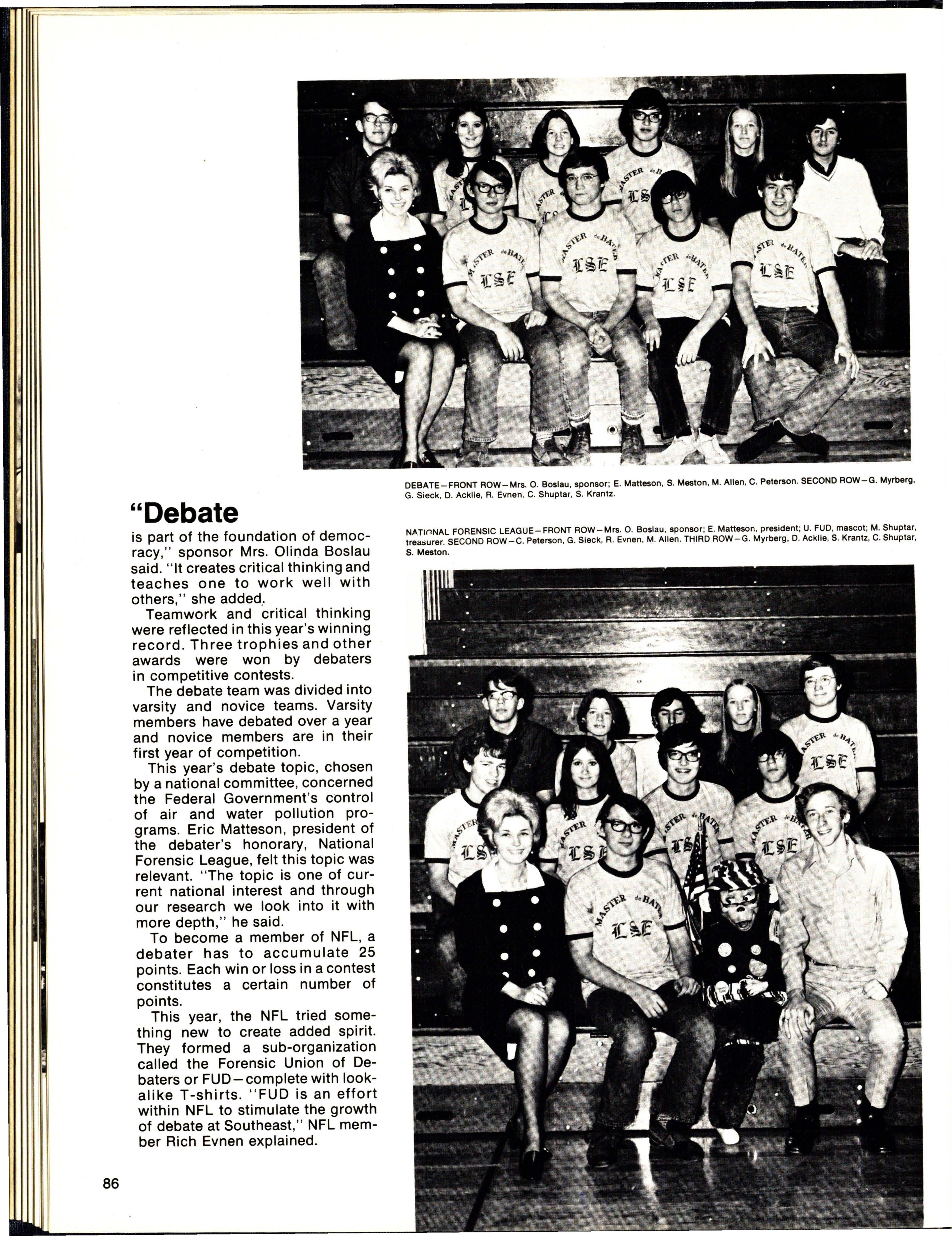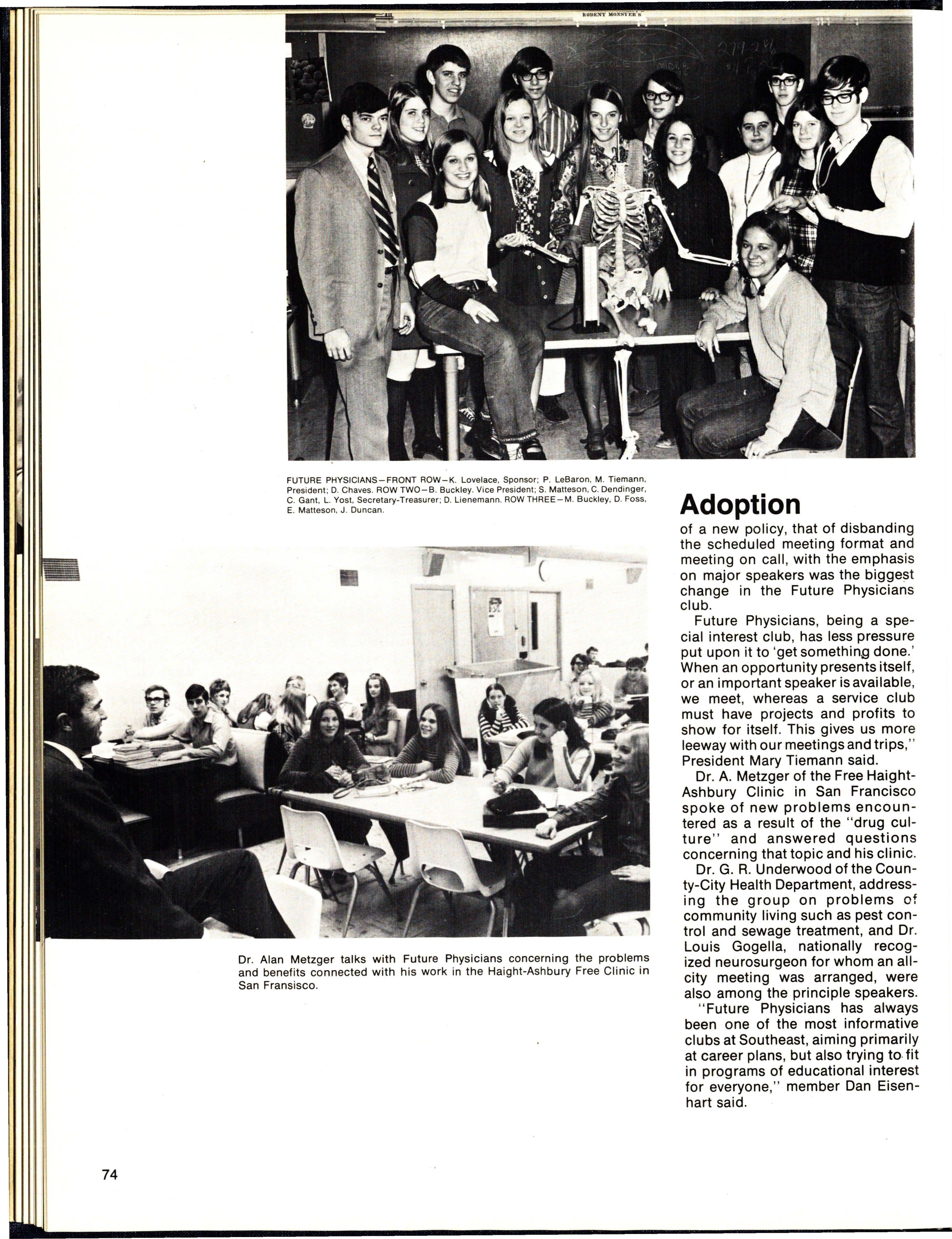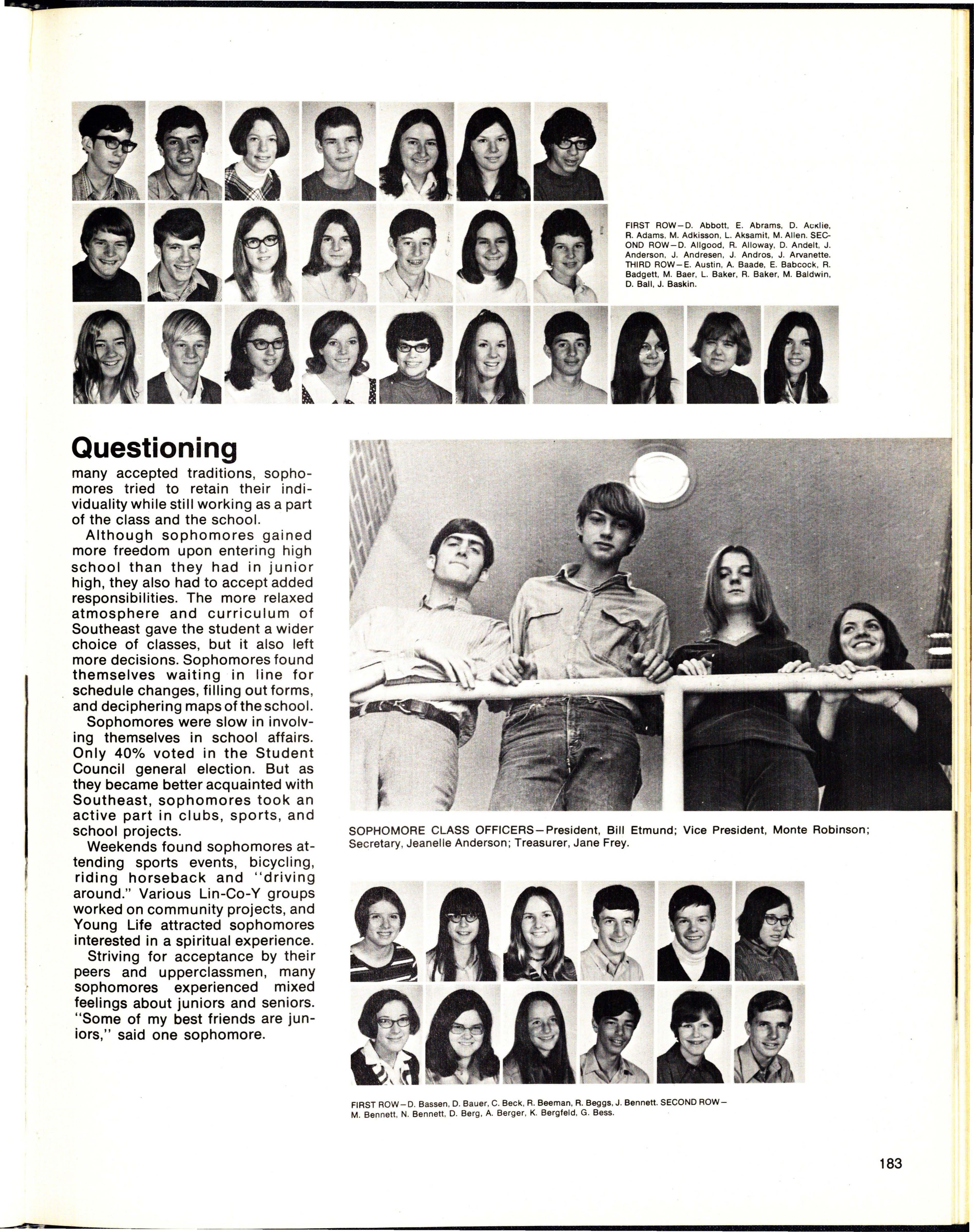 Our transition began with life as a grade schooler - pure , innocent, unsuspecting, and willing to accept anything Hands filled with insecurity , fumbling to grasp something Hands expressing love , hate , anger, friendship , and trust. We placed our trust and faith in the experienced hands of adults: teachers , parents , older brothers and sisters, anyone willing to extend understanding and guidance-and discipline. Reaching the junior high age, we played a dual role-still that of a reacher , but also that of a leader. We began to utilize the experience and knowledge secured from others and in turn use this to aid new seekers. During high school, we leaned more toward the role of a leader, aiding others around us, activating our life in school , community, and state. We discarded the majority of our insecurities in preparation of new and different challenges. But to meet tomorrow ' s challenges , both sets of hands are essential-one to lead and one to reach out and grasp. For those that reach are those that wi II guide the future.
