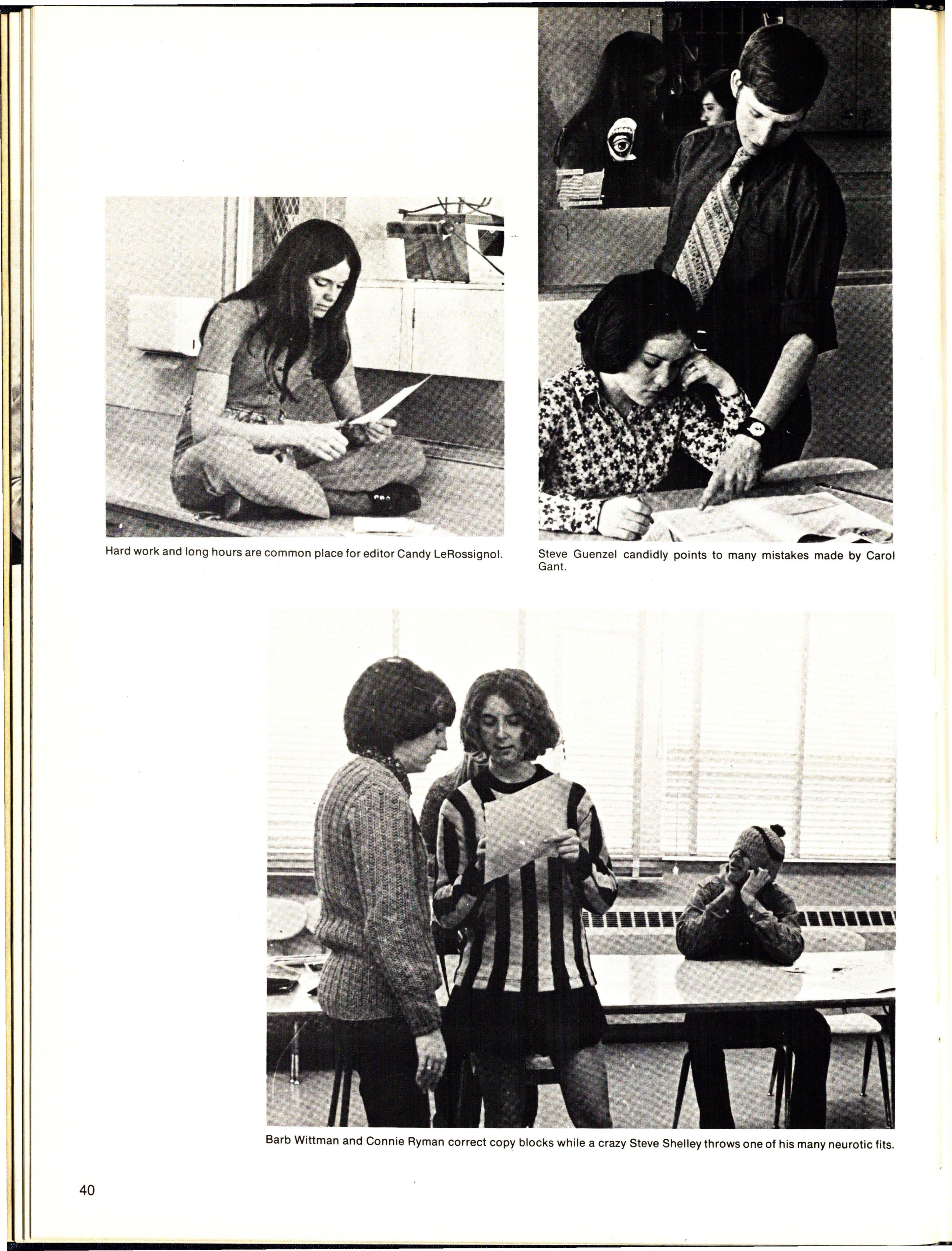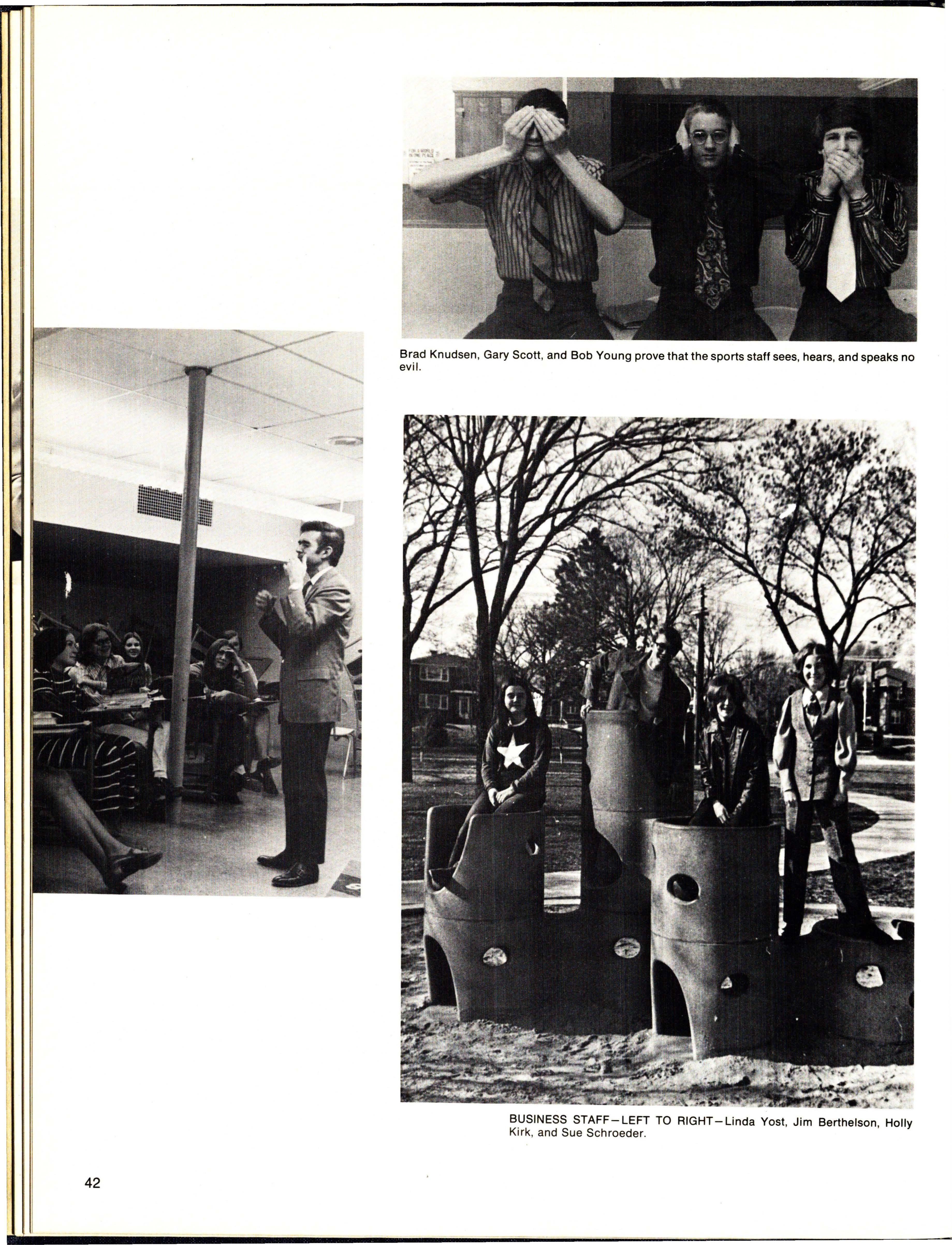 cooperation in setting our type i 1 time for deadlines to lnterco l legiate Press for turning a ye aportrayed by pictures and stori e: _ into a finished yearbook and t c our advisor Larry Fauss for his ex perienced advice, ttusting natur e individual attention and help, aneverlasting humor enabling us t c_ learn a great deal no matter ho vtense the situation happened to b e
