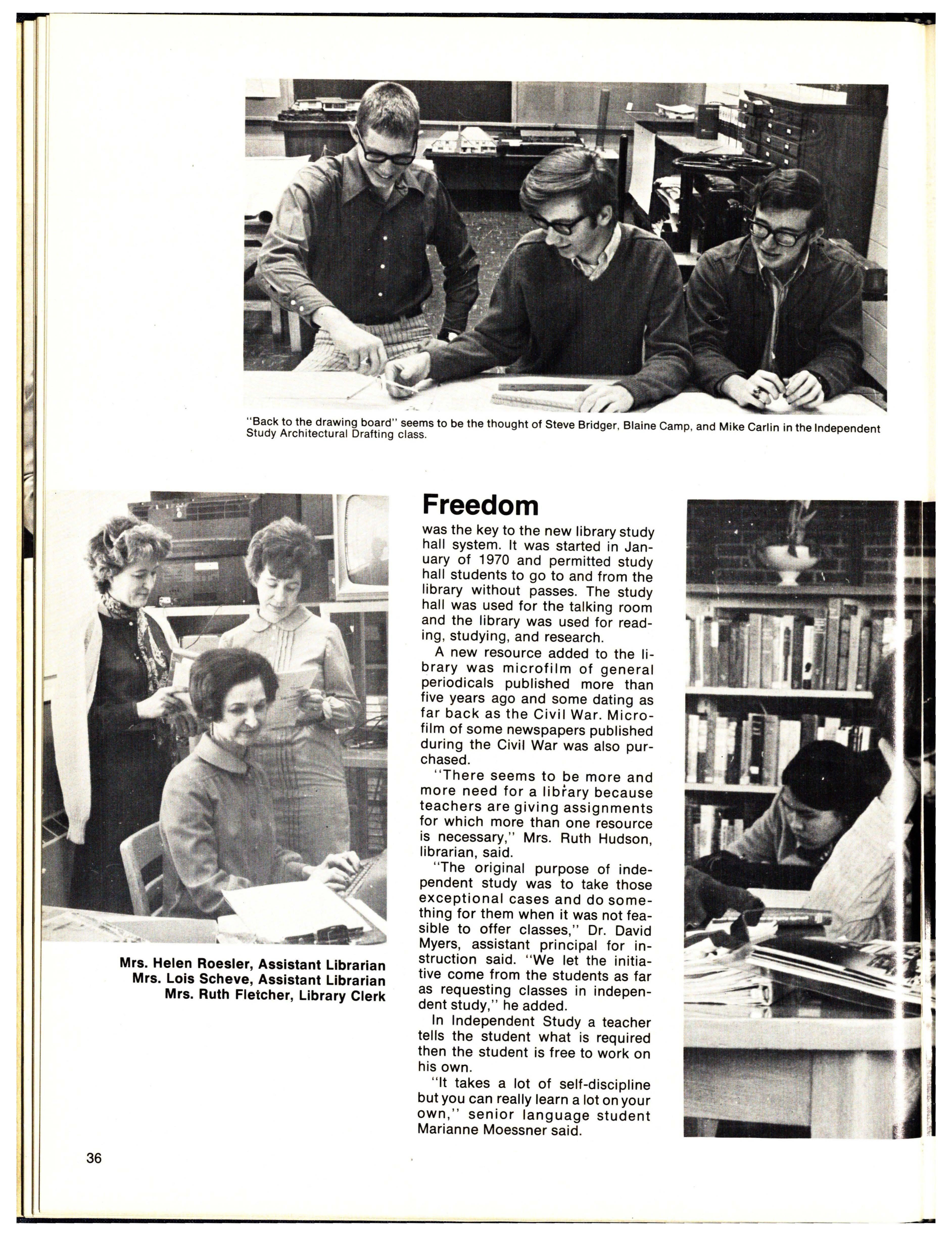 is what the students wanted, now it is up to them to get regular guidance information," counselor Charles Hemphill commented about excluding homeroom from the curriculum. - Students received information from intercom announcements every Tuesday morning for about ten minutes. The announcements told seniors about college representatives and scholarships that were available while juniors and sophomores were given information about their โขsix semester plans. Each grade level also had two or three sessions for special information during the year.