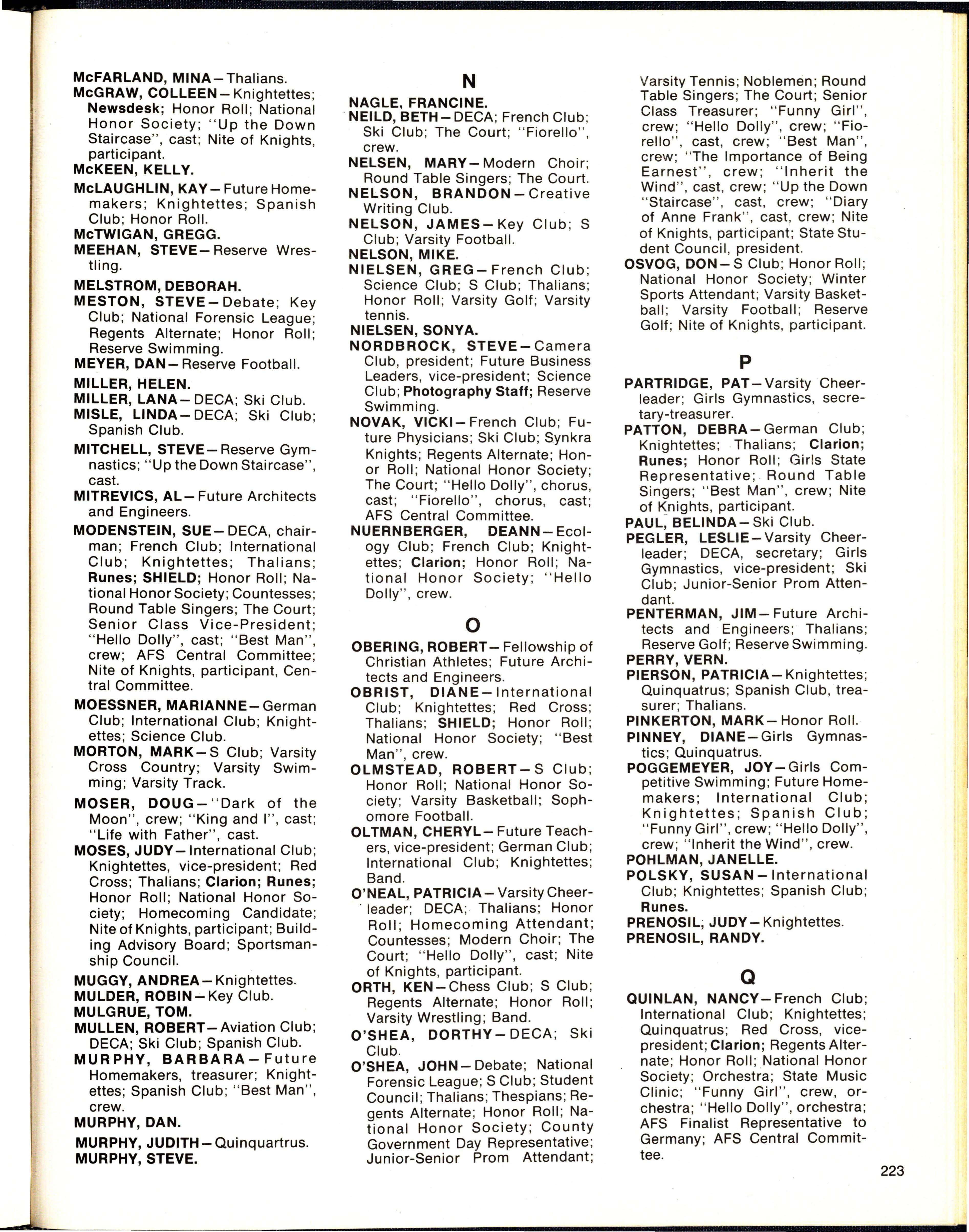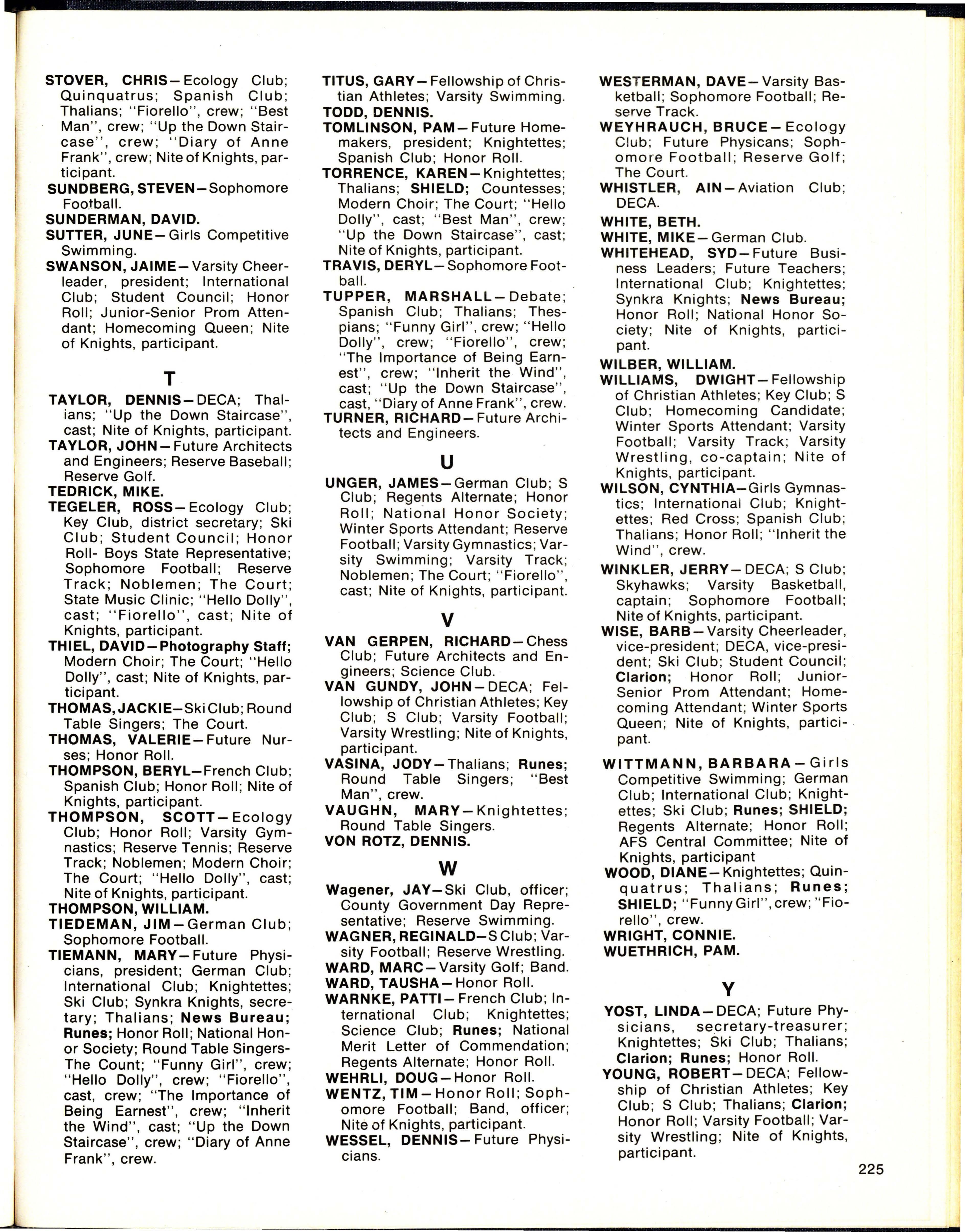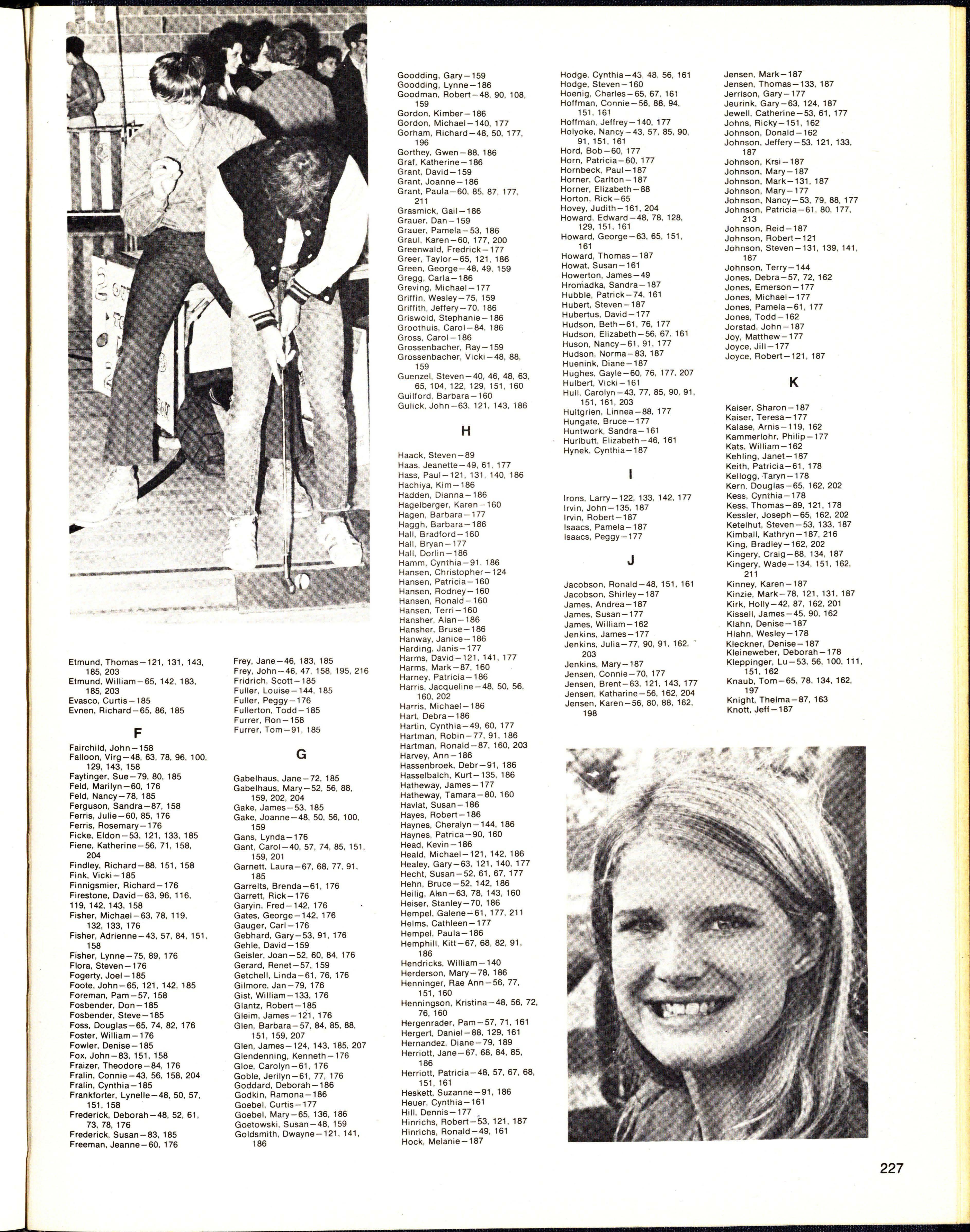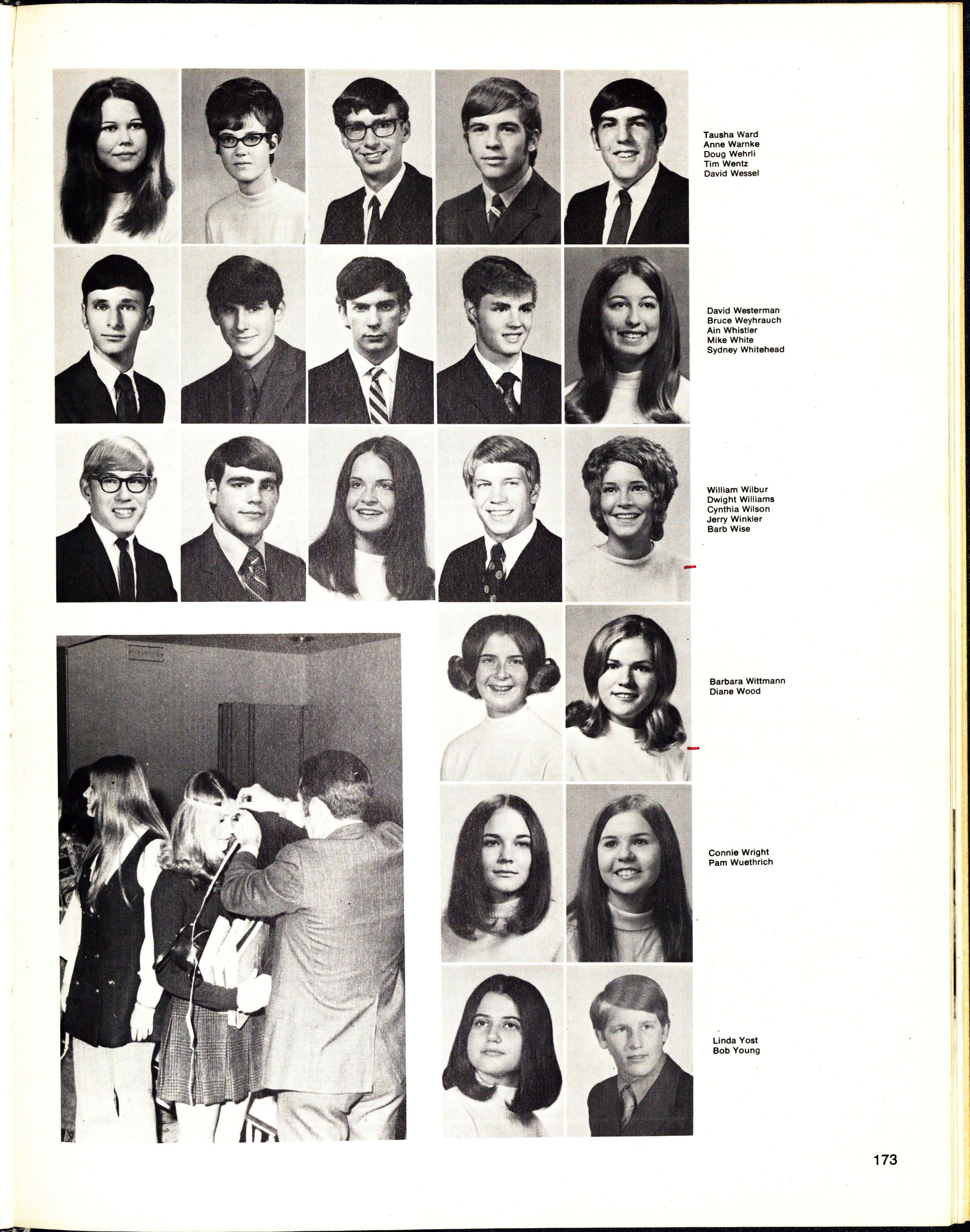 W i ll iams Pau -182 W illi ts Becky-80 81 19 1 W il nes, Doug - 19 1 W il sno , Cynthia-57 , 79 , 83 , 173 W il son Dana-78 191 W i Ison Jane - 182 W i ndle , Jo h n-63 , 78 , 121 , 143, 182 W i nier , Jerry-63 , 124 , 128, 130 , 173 W ise Barbara-42 57 64 87 96 100 111 173 205 Wismer Jeff-121 191 W i tt , Fred-50, 121 , 186 , 196 W i ttmann , Barb-40 , 56 , 76 , 82 , 85 , 94 , 173, 214 Woerth Roxanne - 182 Wohlfarth , Becky-191 Wolke n, John-122 , 142, 191 Woltemath , Sharon -191 Wood Debra-182 Wood , Diane-41 , 85 , 173 , 214 Wood Jeffrey-122 142 191 Wood Susan-6 1 182 Woodruff , W i lliam-53 , 182 Worster, Donna -1 9 1 Wr i ght Conn ie-173 Wr ight , Cynthia-48 , 61 , 73 , 182 W ri ght , James-182 Wue t hri ch Pamella-173 II ult Karen-191 Wc. 'f Kenneth- 182 y Yeager lrene-191 Yeager Lucy-85 136 191 Yost Linda-42 74 76 85 173 200 Young , Corl iss-191 Young Dee Ann-182 Young Janet - 191 Young , Joan-61 , 182 Young Robert-42 63 65 78 11 9 133 173 206 Youngman , Mason - 182 z Zad i na , Simon-76 , 142 , 182 Zieman , Ki mber ly-191 Zimmerman , Jer i -80, 136 Znamenacek , Linda-182 , 197 Zobs , El i zabeth-191 229