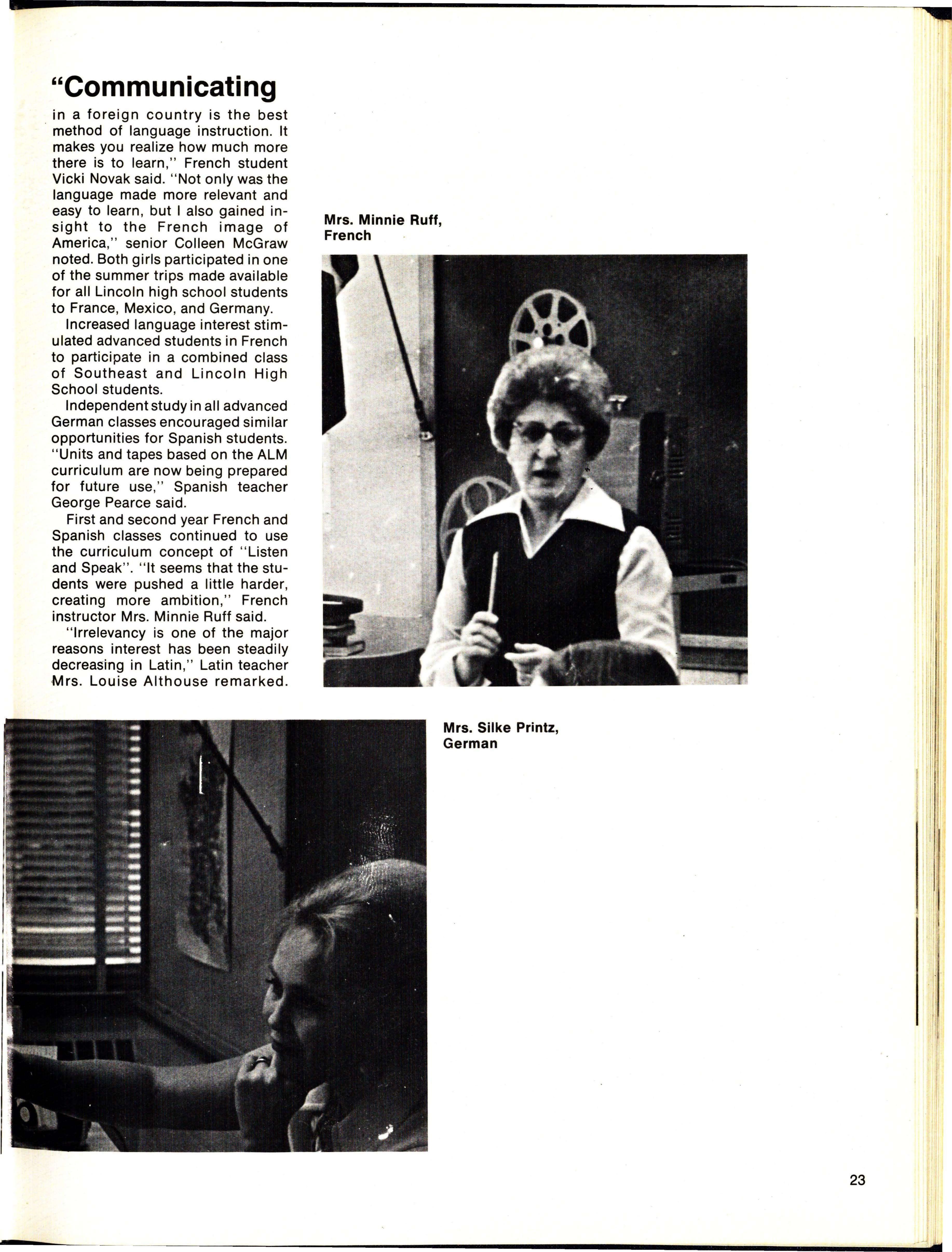 "Communicating in a foreign country is the best ยท method of language instruction. It makes you realize how much more there is to learn," French student Vicki Novak said. "Not only was the language made more relevant and easy to learn, but I also gained insight to the French image of America," senior Colleen McGraw noted. Both girls participated in one of the summer trips made available for all Lincoln high school students to France, Mexico, and Germany.