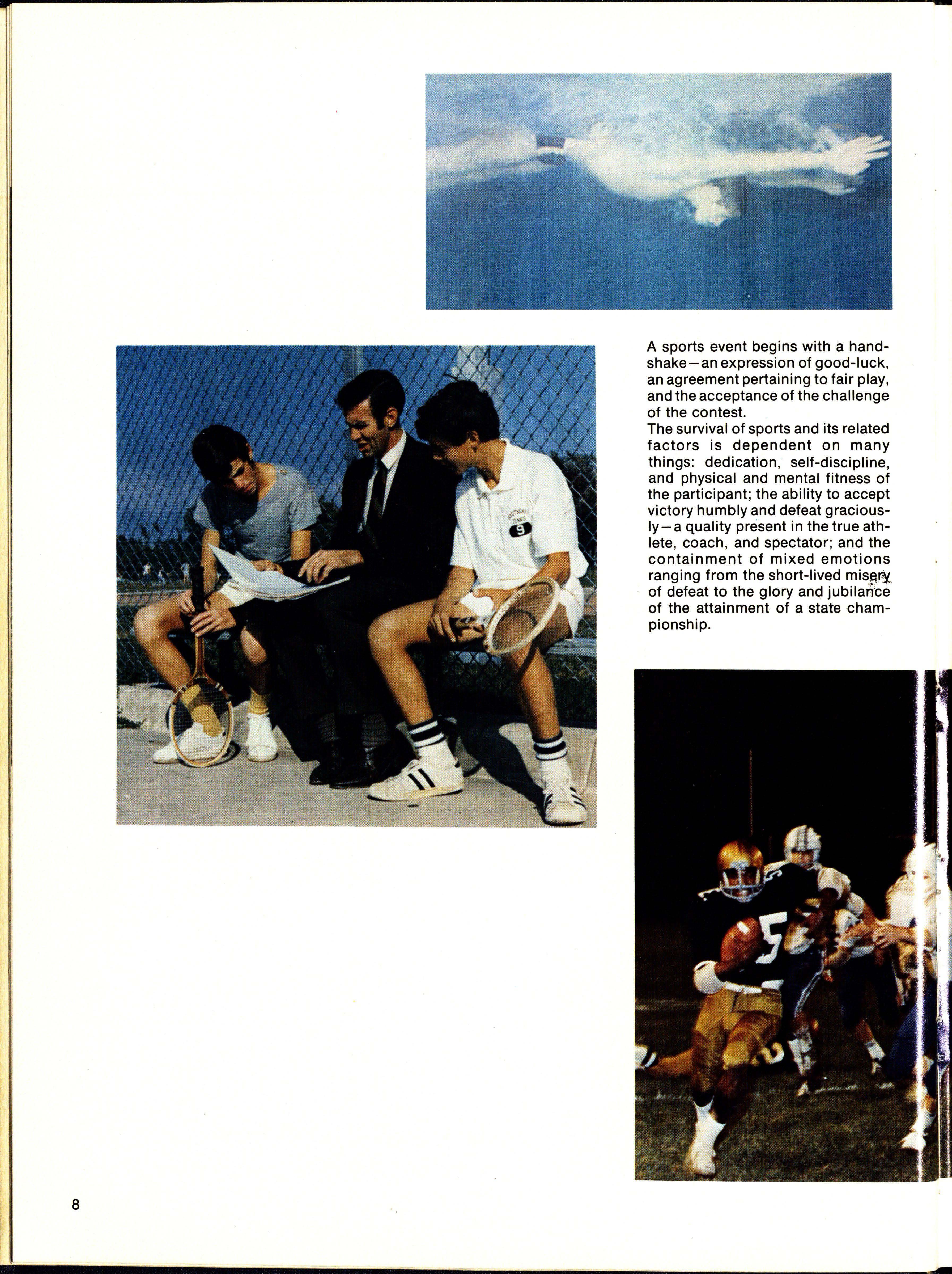 The survival of sports and its related factors is dependent on many things: dedication, self-discipline, and physical and mental fitness of the participant; the ability to accept victory humbly and defeat graciously-a quality present in the true athlete, coach, and spectator; and the containment of mixed emotions ranging from the short-lived mis~rj_ of defeat to the glory and jubilarfoe of the attainment of a state championship.