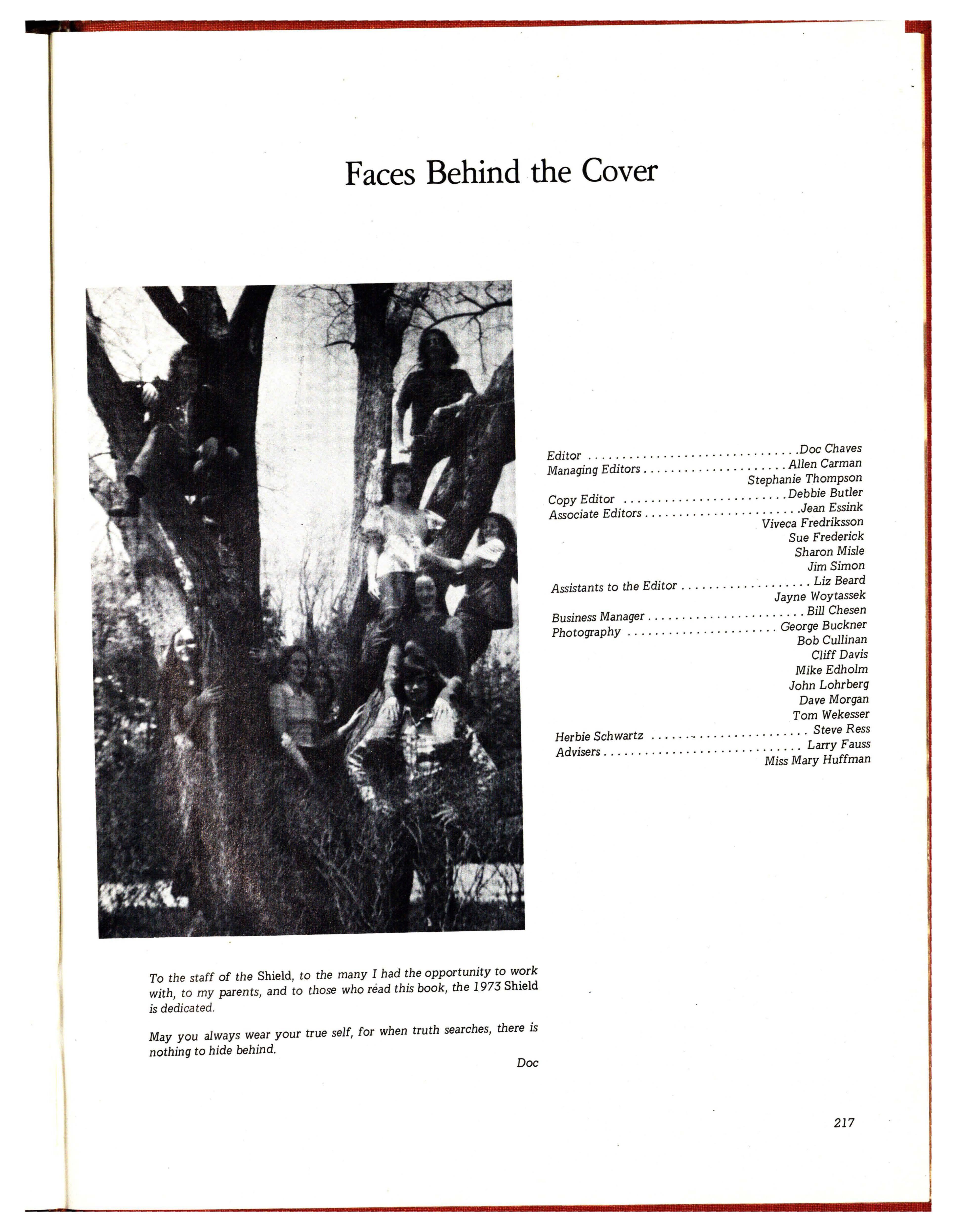 To the staff of the Shield , to the many I had the opportunity to work with, to my parents , and to those who read this book, the 1973 Shield is dedi cat ed.
