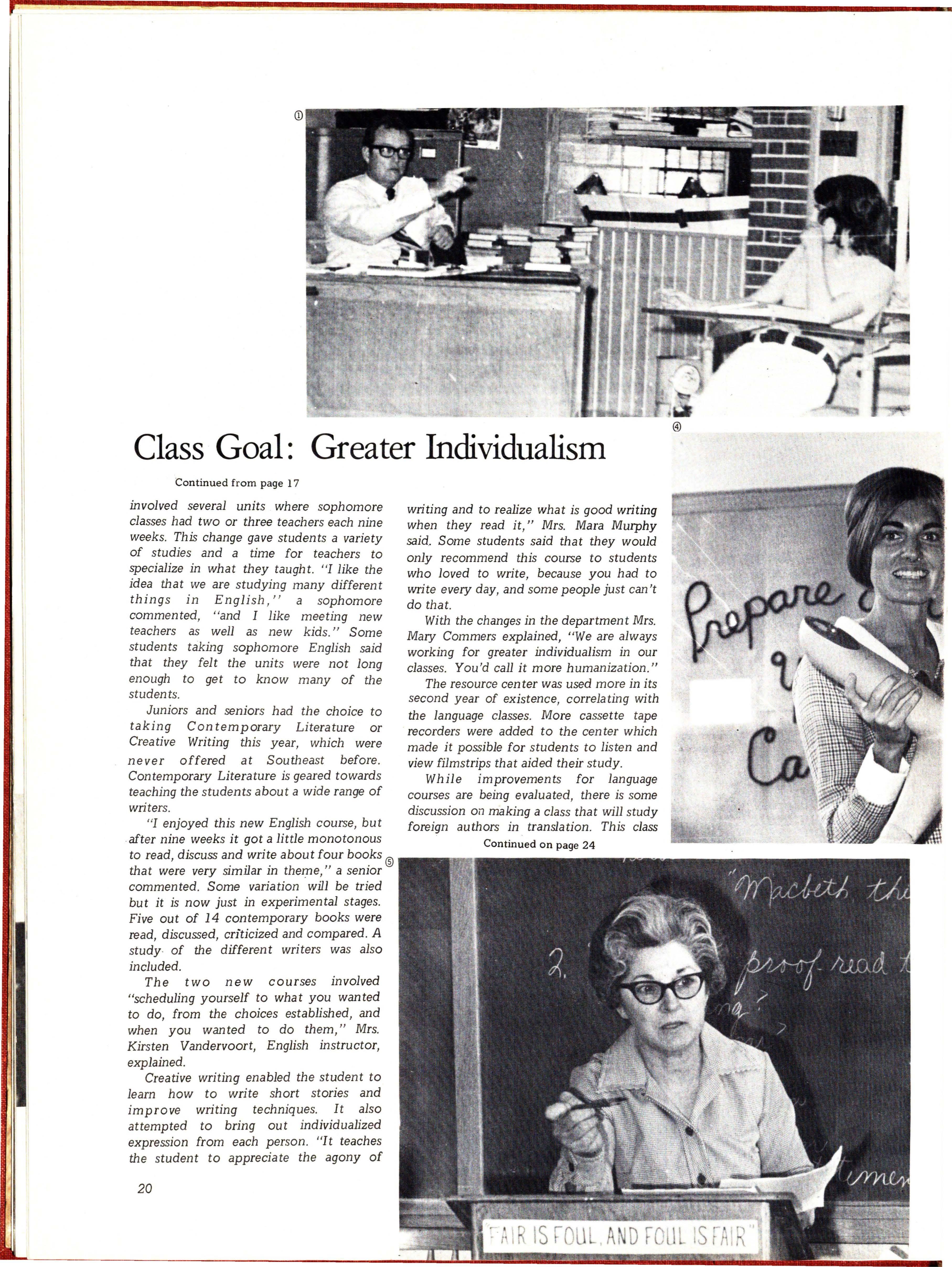 With the changes in the department Mrs. Mary Commers explained, "We are always working for greater individualism in our classes. You'd call it more humanization "