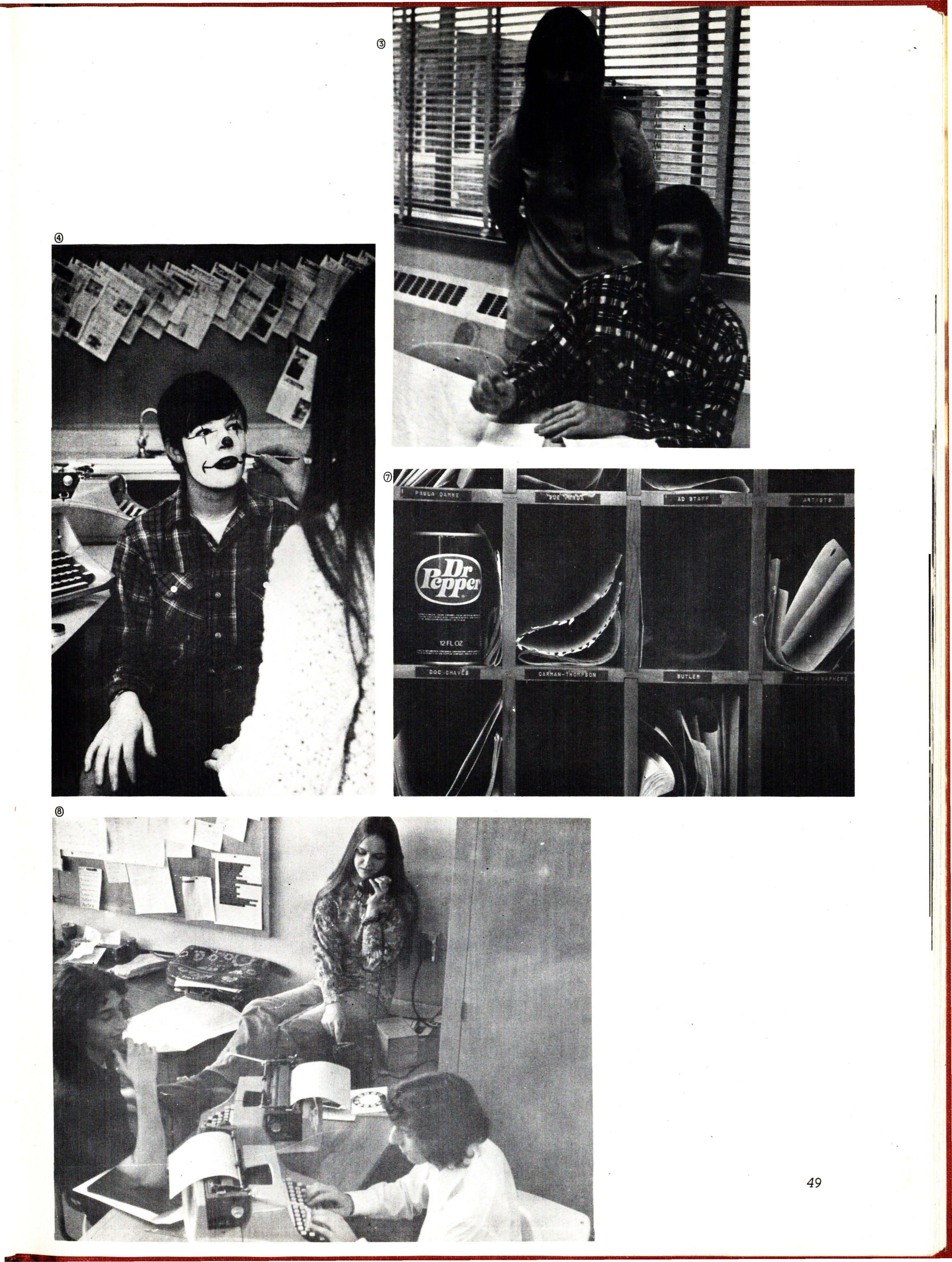 5) Teresa Vos designs a poster fo r drama class while Steve Spitsnogle looks on.