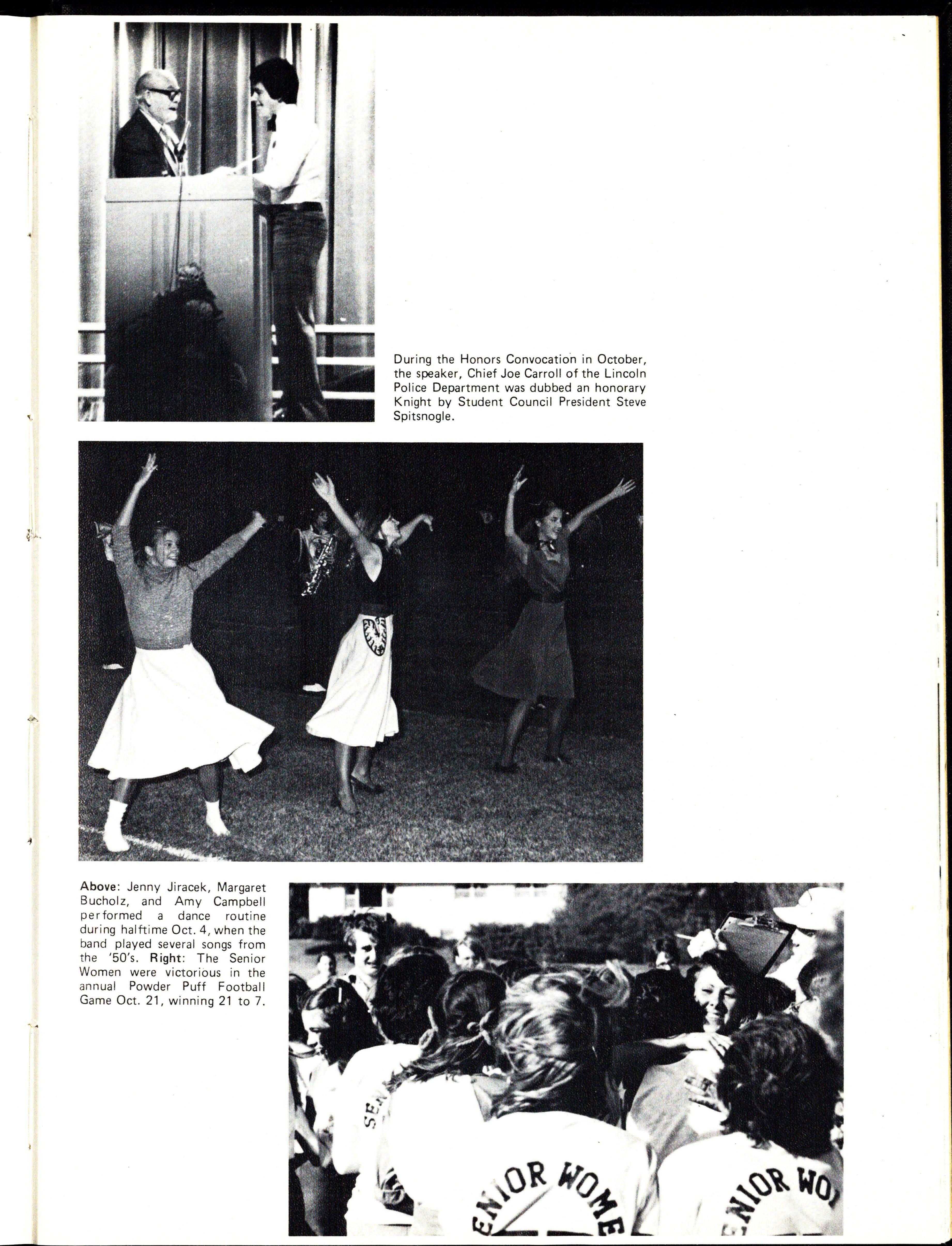 Then I became a junior and I was halt-way done w i th high school I suddenly understood the way c l asses were graded scheduled and wh i ch teachers were which I got a j ob so ' COLI Id a f ford the car I JUSt bought. If I had stayed in football. I would ha ve had a chance to make varsity. I remember a lot of the girls were concerned with trying out for reserve cheerleader or Shirettes I went to the junior - senior prom at the Linco l n Cornhusker. and