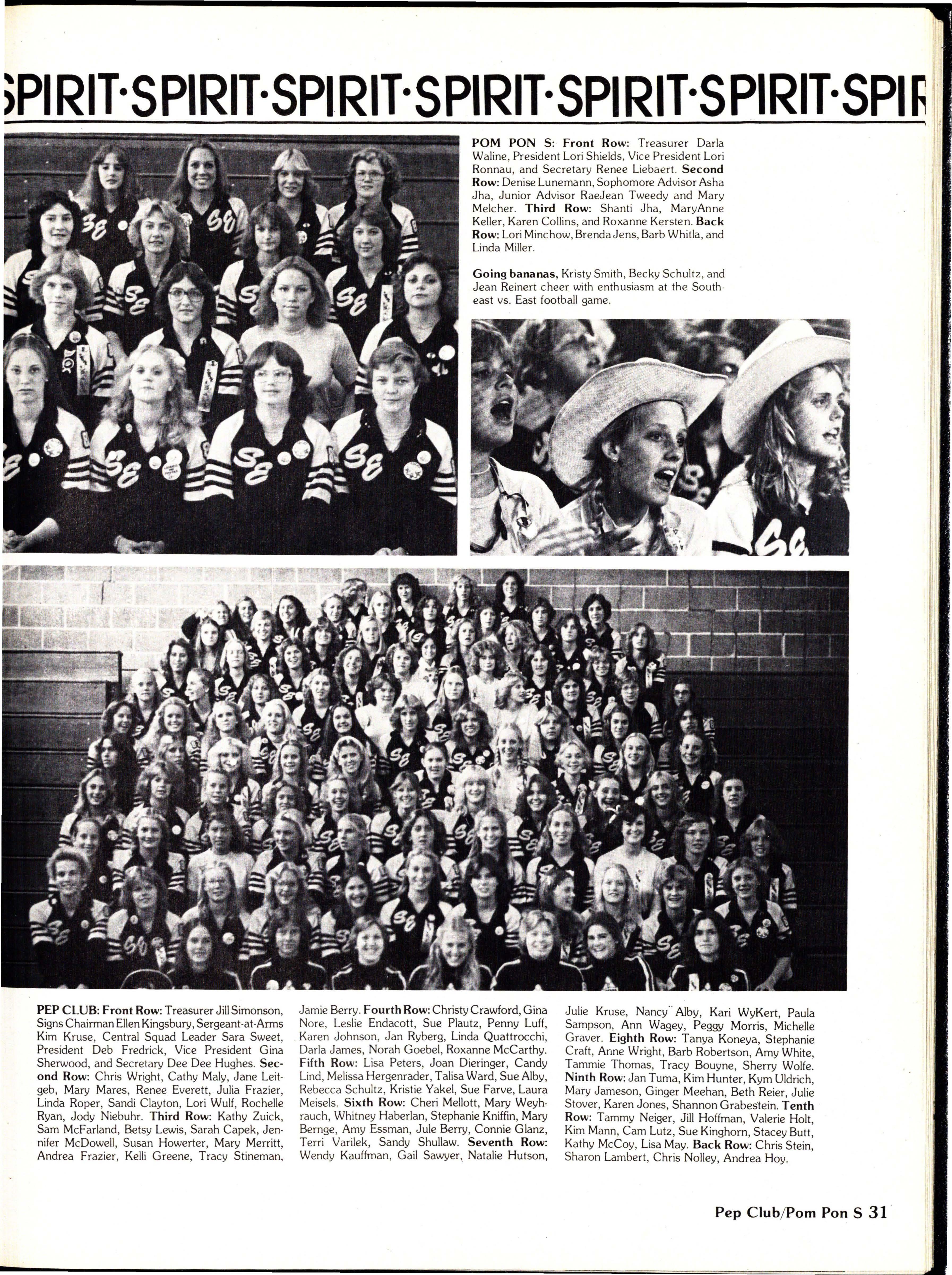 dances continue to move to the disco beat. Pep Club is open to any girl interested, and membership runs around 100. only a few Pep Club uniforms spot the halls on game days.