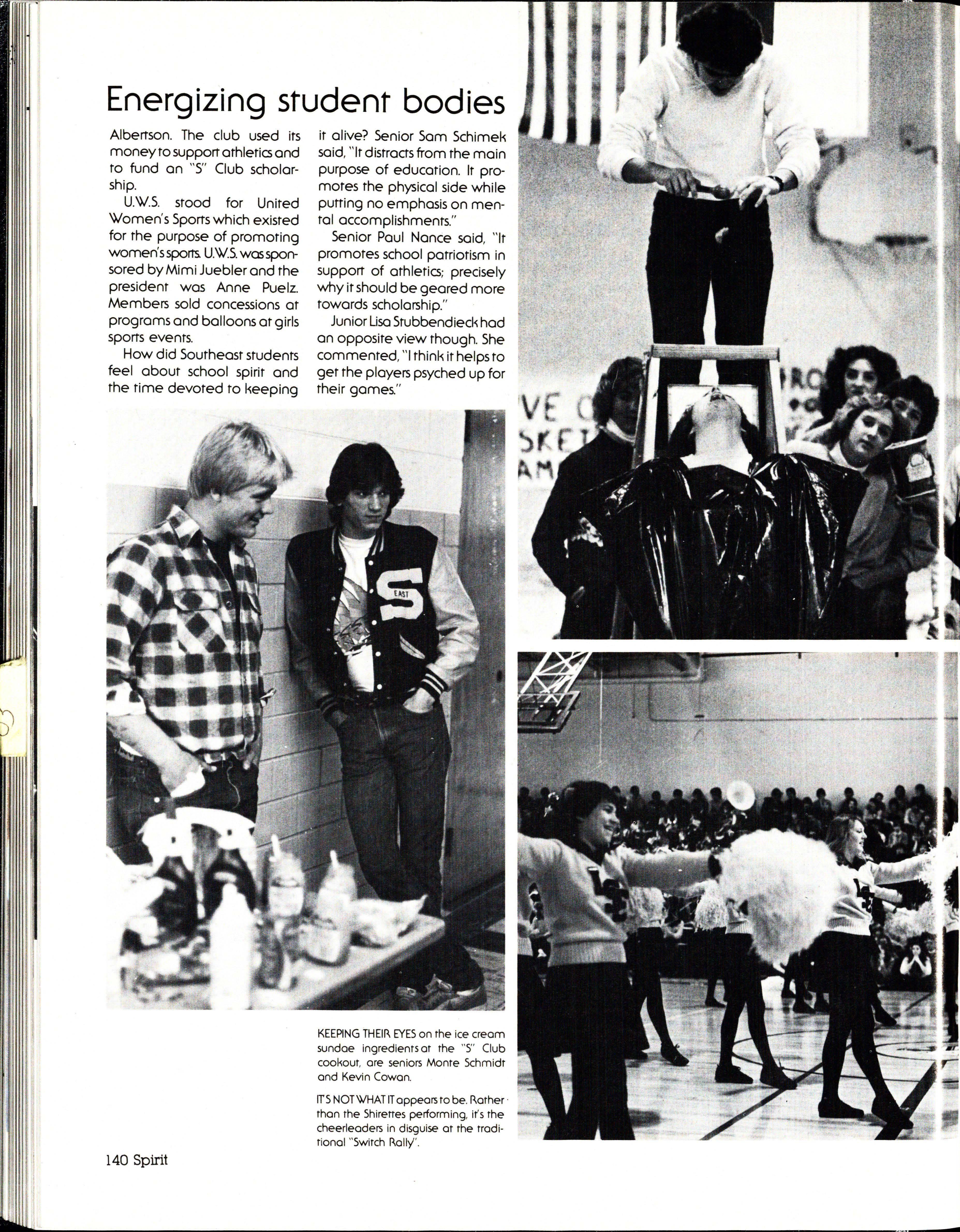 The changes that surrounded the school as well as the community set this year apart from others. The Southeast world was improved by the student council being reduced in size to make for a more workable and efficient group. During the summer windows and skylights were closed off and insulated to conserve energy. This conservative movement was shown no~ only at Southeast but across the nation. "Energy Tums the World" was the theme of the I 982 Worlds Fair. It gave a new understanding to energy, and demonstrated its' wiser use and more efficient production.