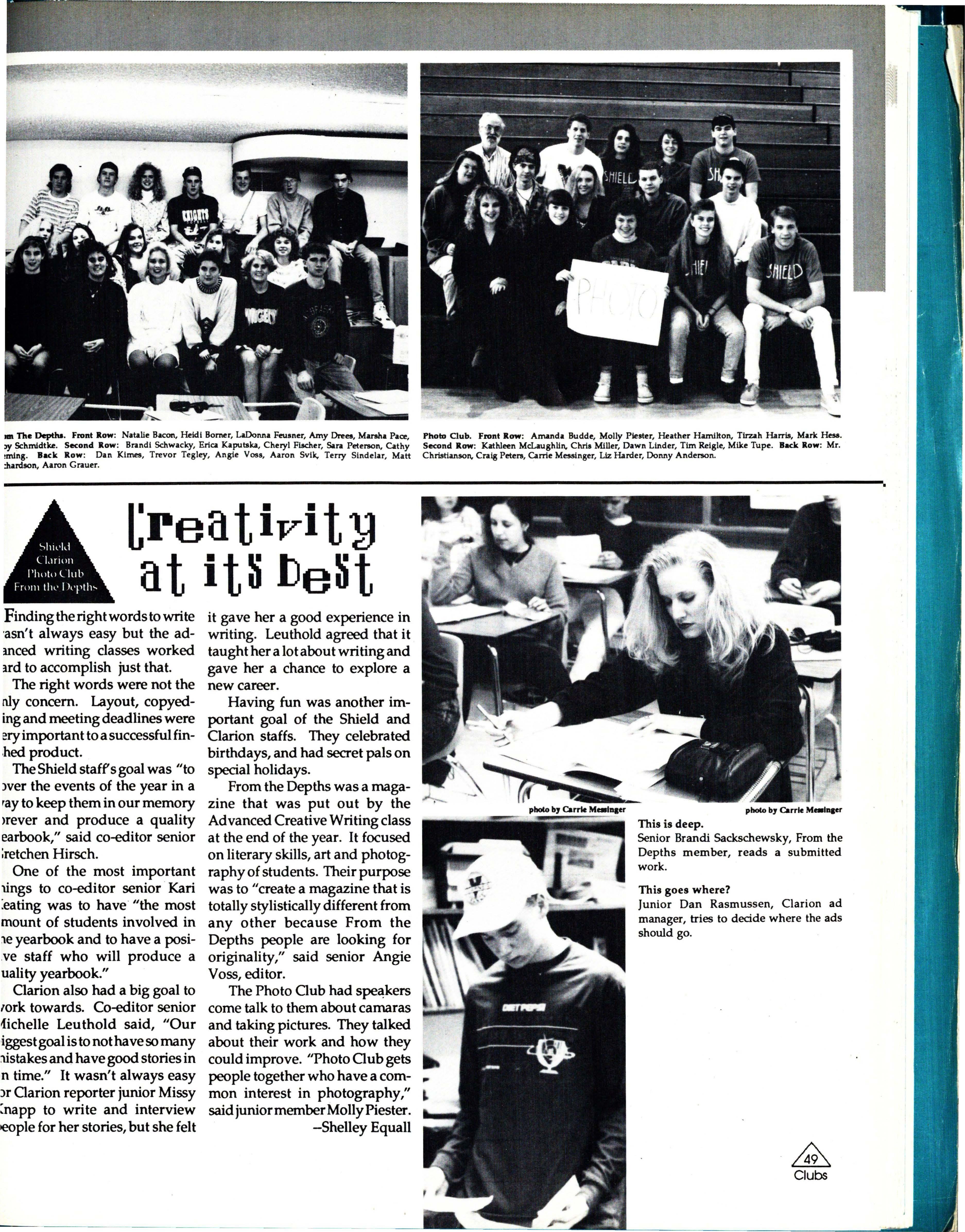 Voss, Angela. Pep Club, 10 ; Clarion, 11Entertainment Editor, 12-Copy Editor; Orchestra, 10, 11, 12-Vice President; Honor Roll, 10; From the Depths, 11-Assistent Contest Director, 12Editor in Chief; Baseball (1 ), 10-Manager; Lincoln Youth Symphony, 10, 11, 12; Beatrice Orchestra, 11, 12.