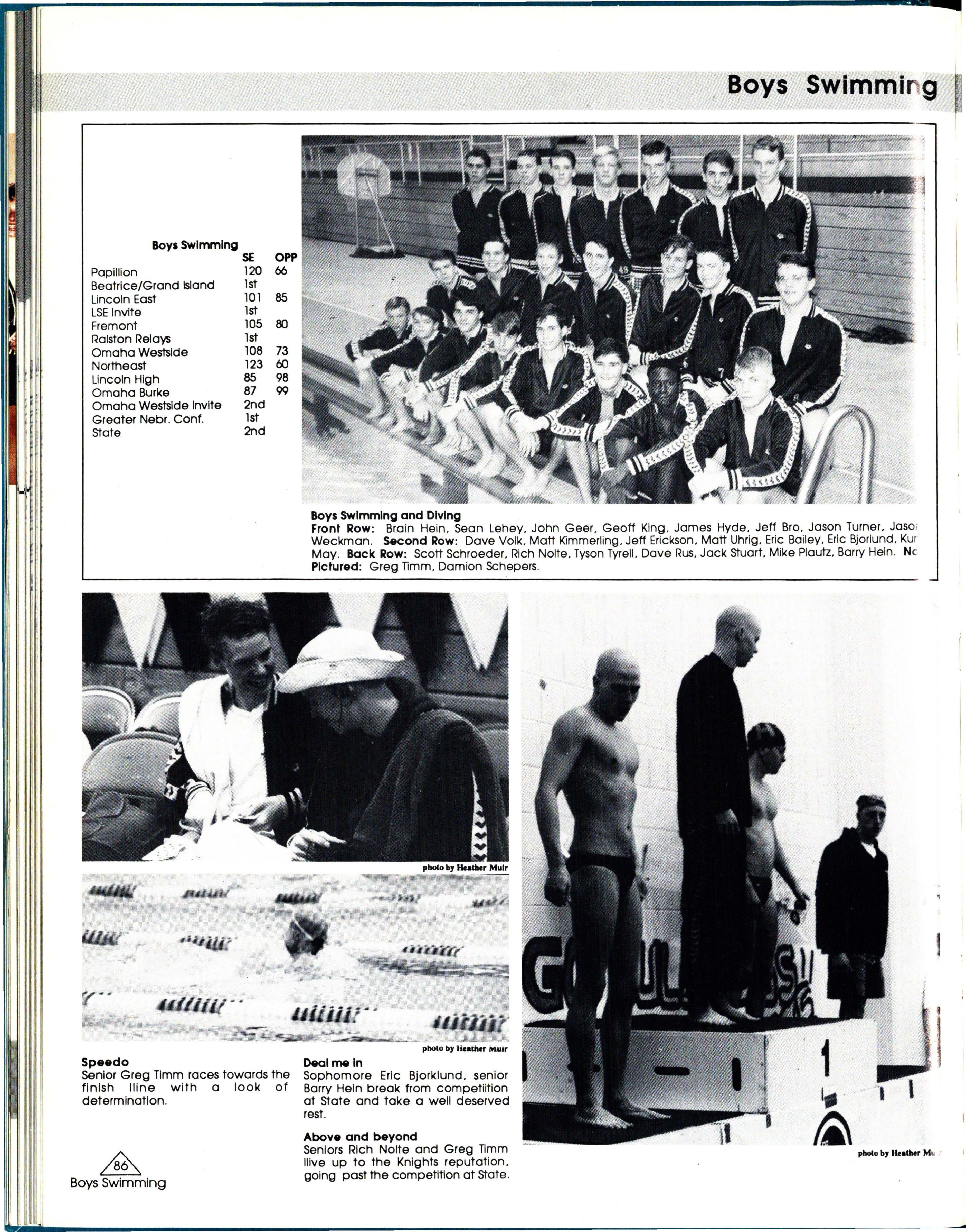 Band, 10, 11, 12; Concert Band, 10; Jazz Band, 11; Honor Roll, 12; Boys Track (3); Boys Swim/Dive (3)