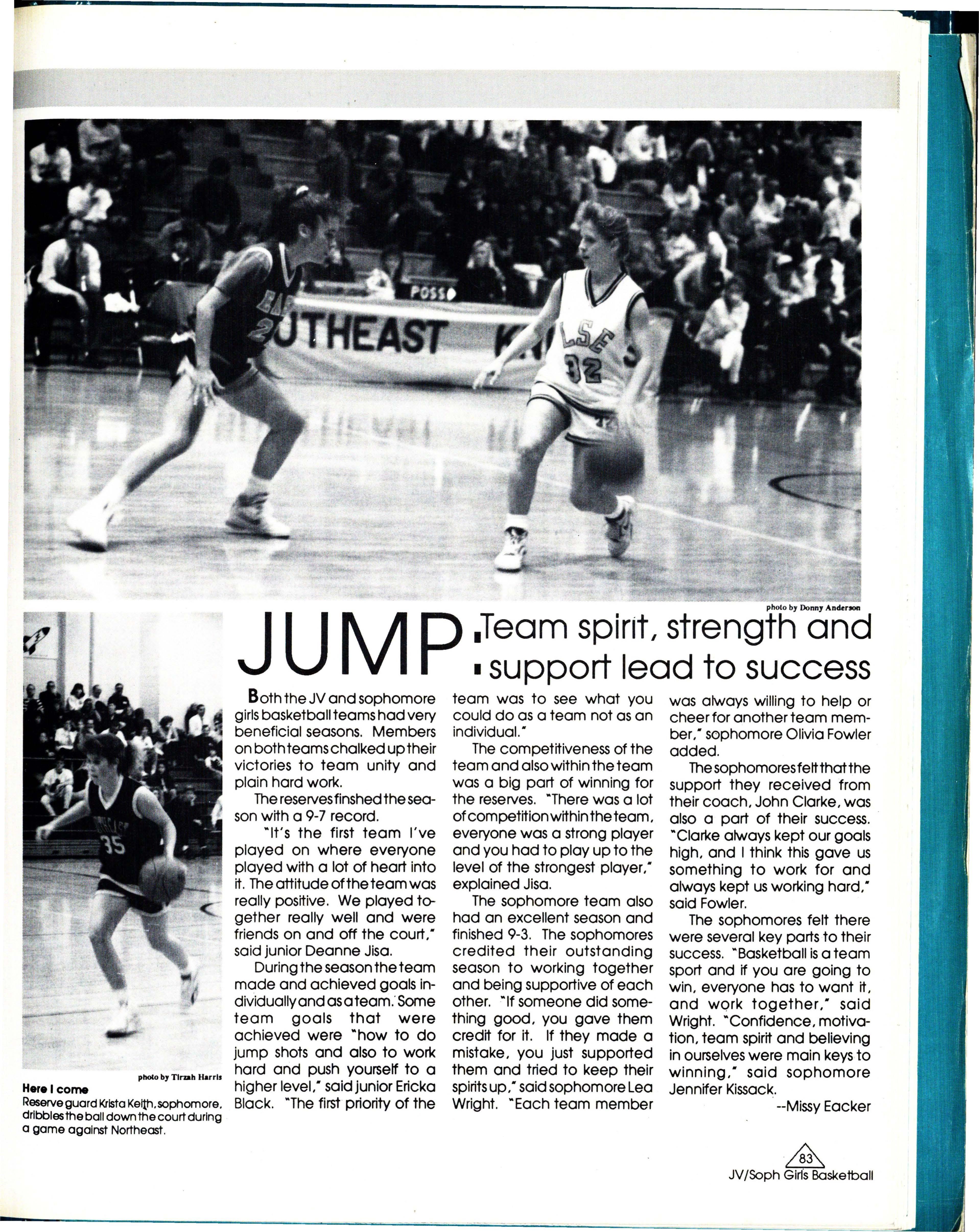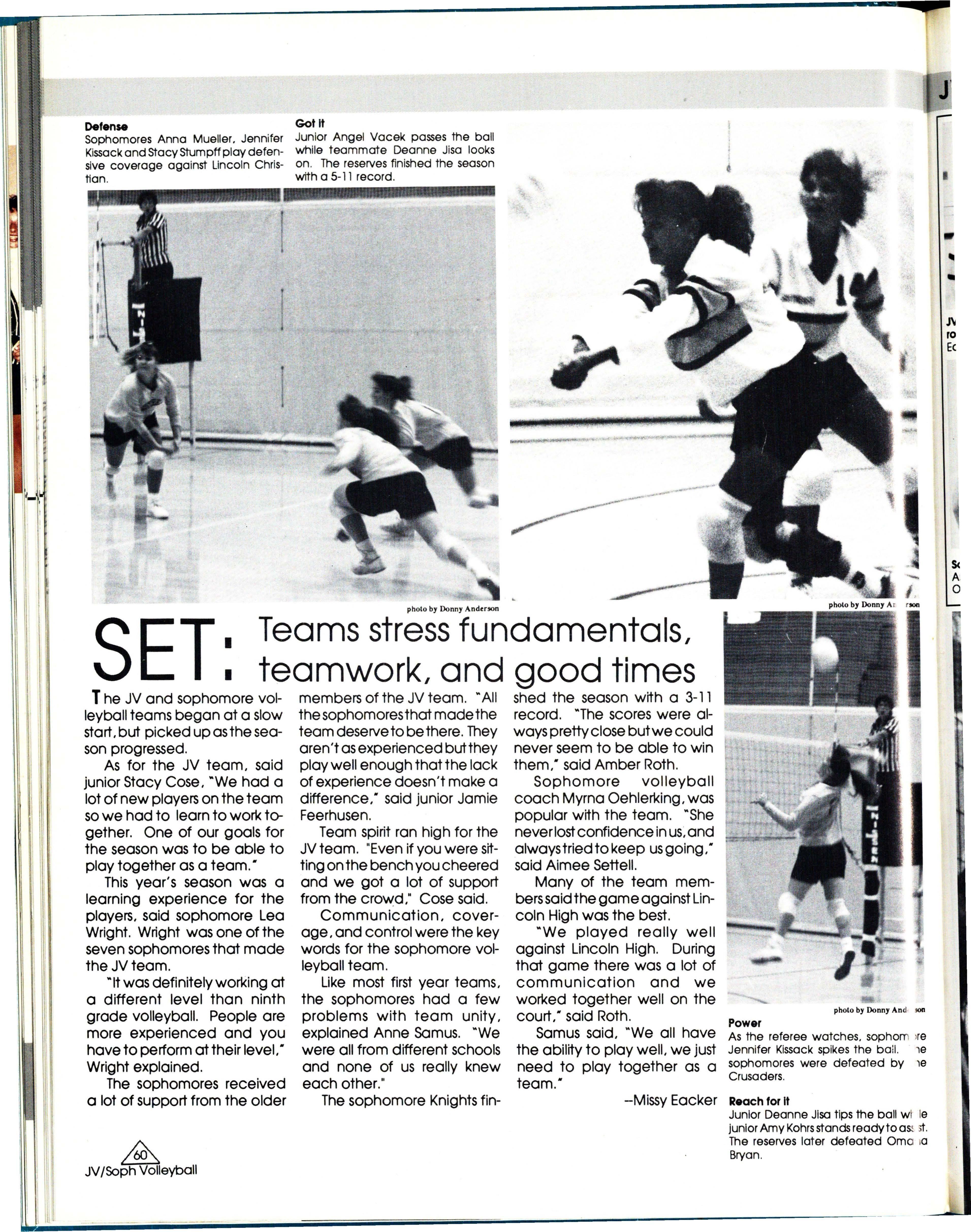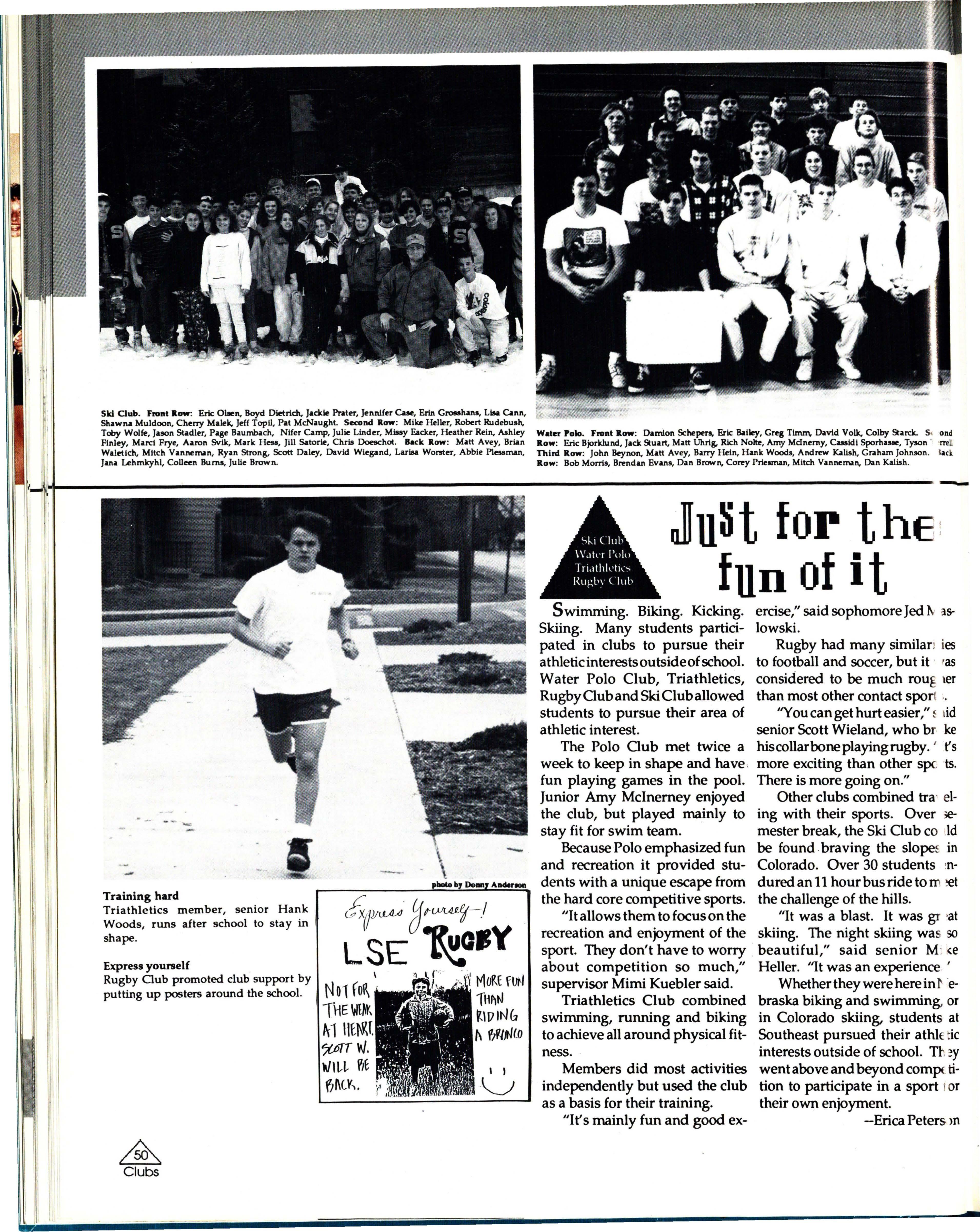 Reimers, Jen. DECA, 11; Honor Roll, 10, 11, 12; National Honor Society, 12; Girls Track (1); Volleyball (3), Captain (Sr.); Girls Basketball (4), Captain (Sr.); Girls Soccer (2); Younglife; USVBA member Rein, Heather. International Club , 12, German representative on Executive committee ; German Club, 10, 11; Red Cross, 12; Ski Club, 12; Synkra Knights, 12; Symphonic Band, 10; Marching Band, 10; Honor Roll, 10, 11, 12; National Honor Society, 12; Amnesty International, 11 ; Volleyball (2); Girls Basketball (1 0); Girls Soccer (10); lntramurals (2); Volunteer at Bryan Memorial Hospital, 11, 12.