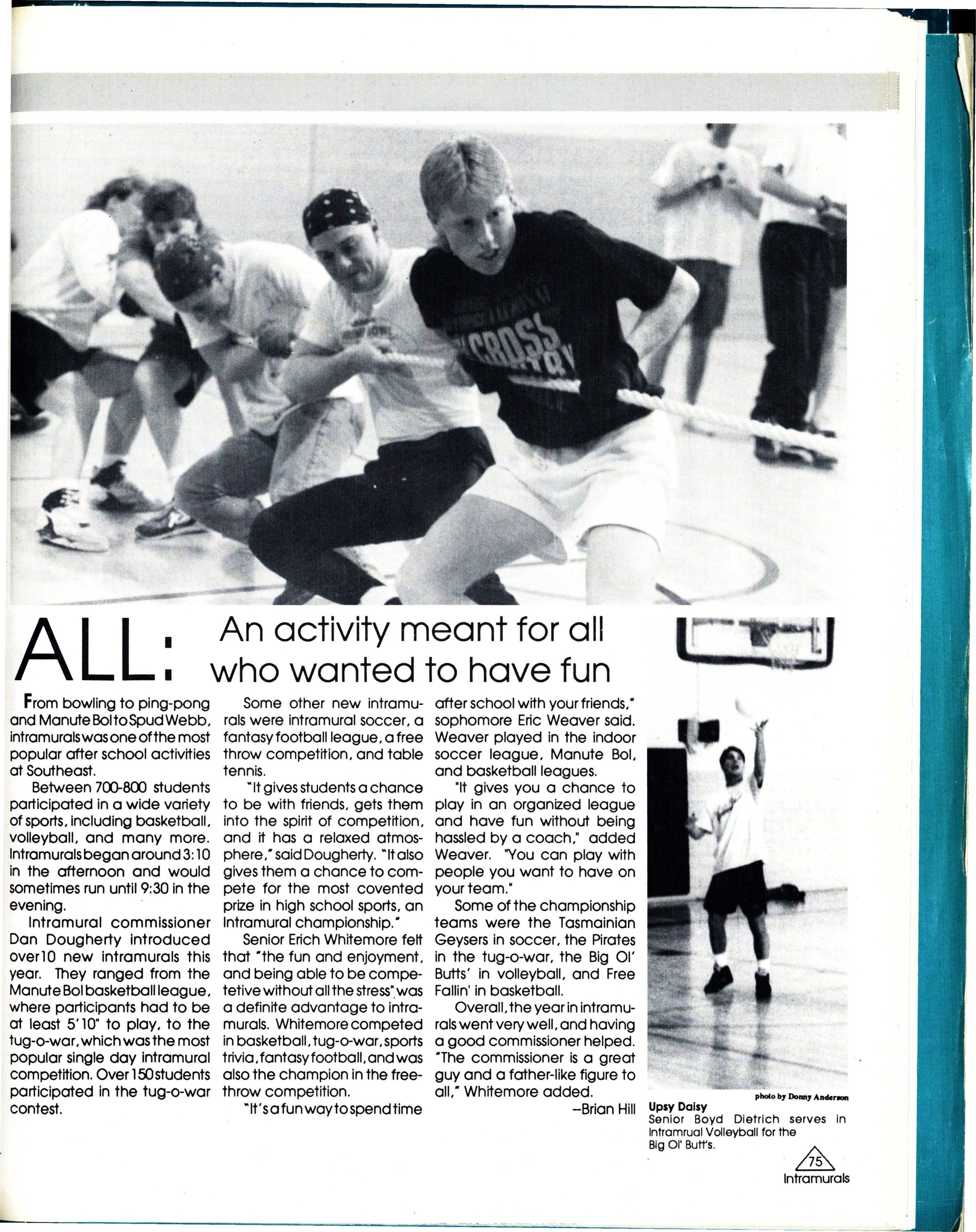 Townsly, Jeff. Football (3); Boys Basketball (1 ); lntramurals (2).