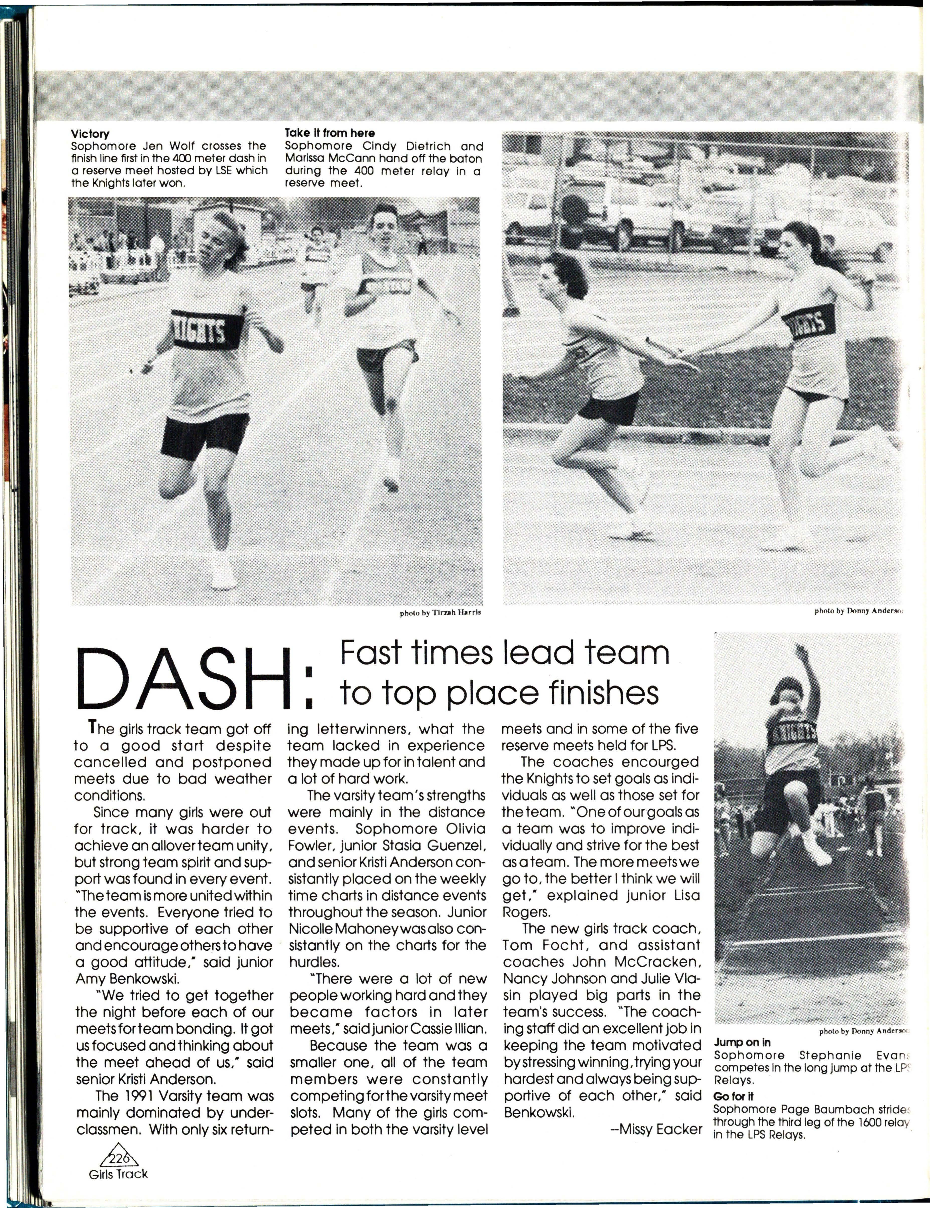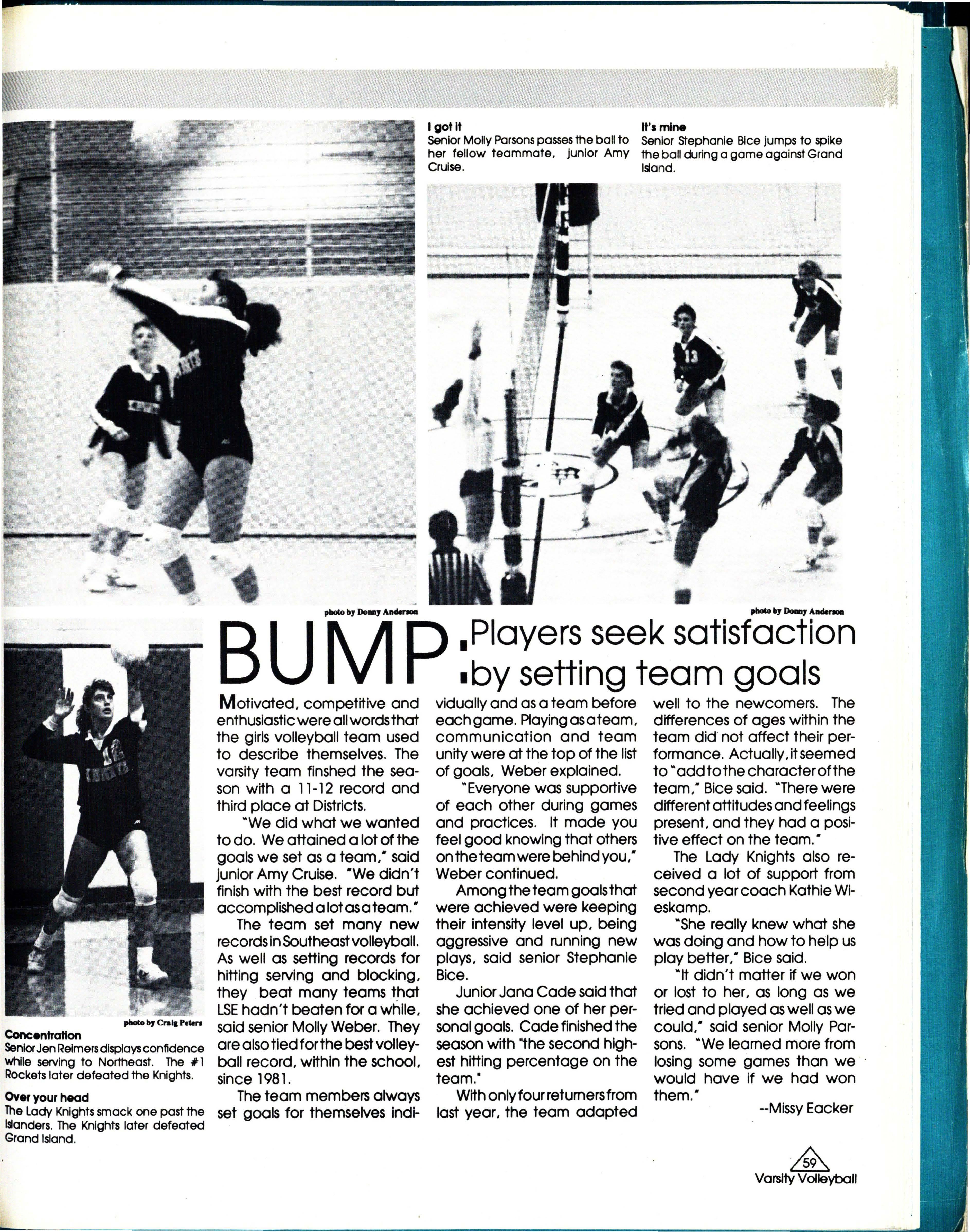 -Personal lives. Setting and meeting personal goals helped each student achieve his or her potential. Talent and drive made them realize their dreams and ambitions, Whether in school, the community, or on their own, the Knights lived up to their reputation as being leaders. 'Ibey were recognized not only on a local and statewide basis, but also on a national one.