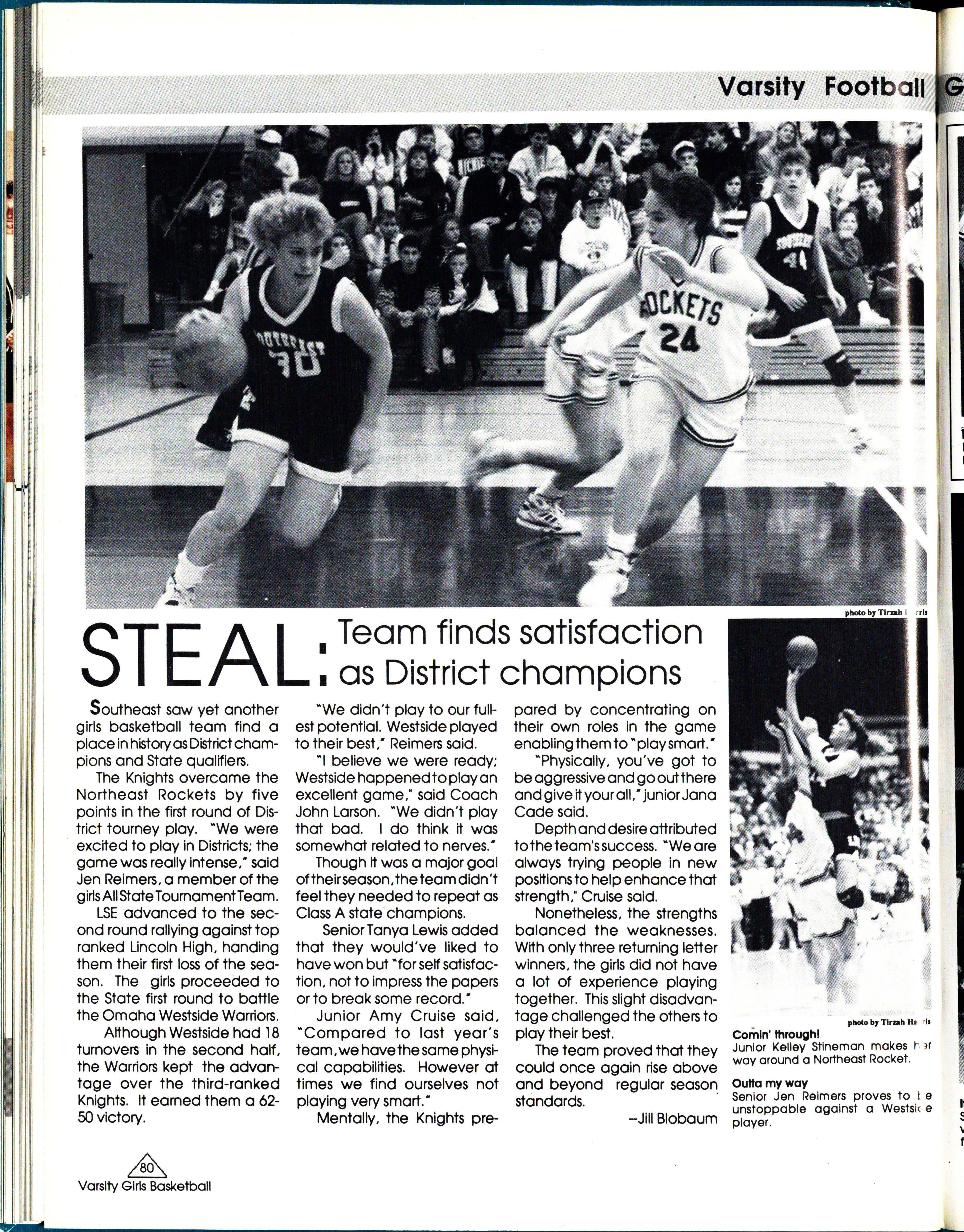 11 Not only did we get more kids from the sophomore class, they honored a few more transfers." Eaton was referring to the new po 1icy that allowed any sophophotoby Heathe~ Muir more to transfer into Southeast. In the past, LSE was