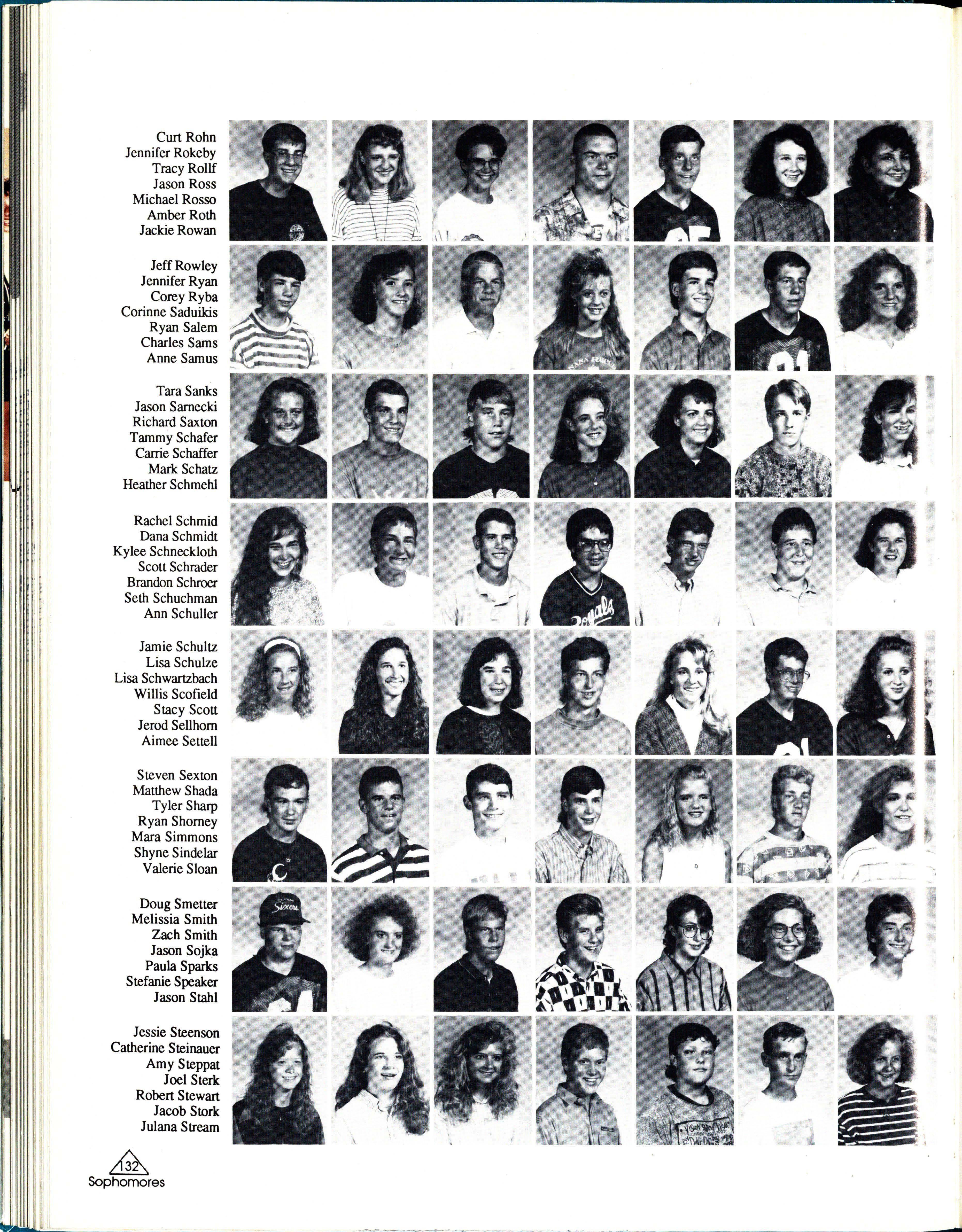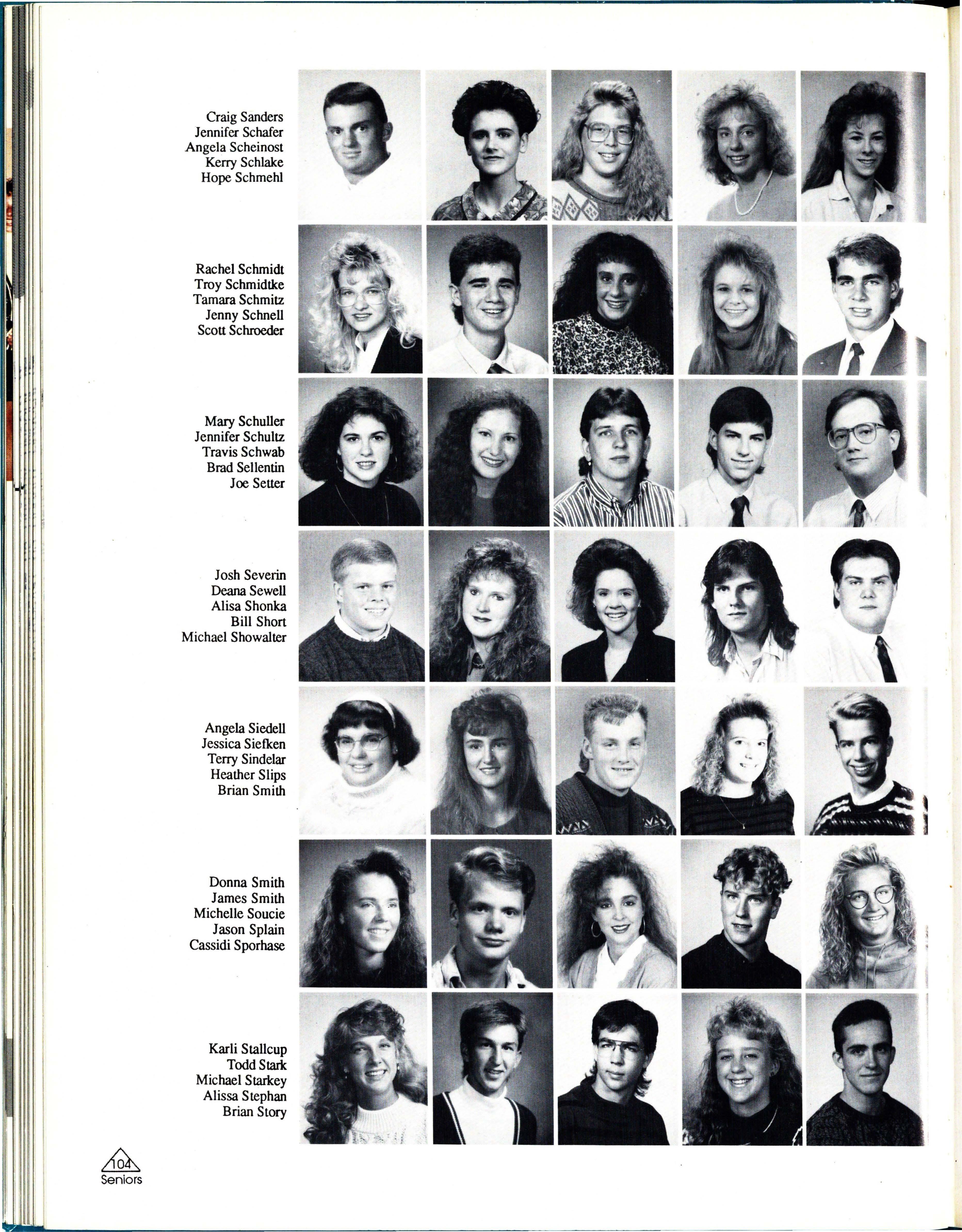 Schmahl, Hope. Flag Corps, 12; Honor Roll , 10 Schmidt, Rachel. Sign Language Club, 12. Schmidtke, Troy. French Club , 10, 11; Honor Roll, 10, 11, 12; National Honor Society , 12; From the Depths, 12; Boys Soccer (1 ); lntramurals (3) Schmitz, Tami. Pep Club, 10; Spanish Club, 10 , 11; Clarion, 1O; Schnell, Jennifer. Art Masters, 12. Schroeder, Scott. International Club , 12; Nite of Knights , 10 ,1 2 ; Court Choir, 11, 12; Knight Sounds, 10; ars Nova Coro, 11 , 12; Marching Band , 10; Honor Roll, 10, 11, 12; National Honor Society, 12; Football (1); Boys Swim / Dive, (2).