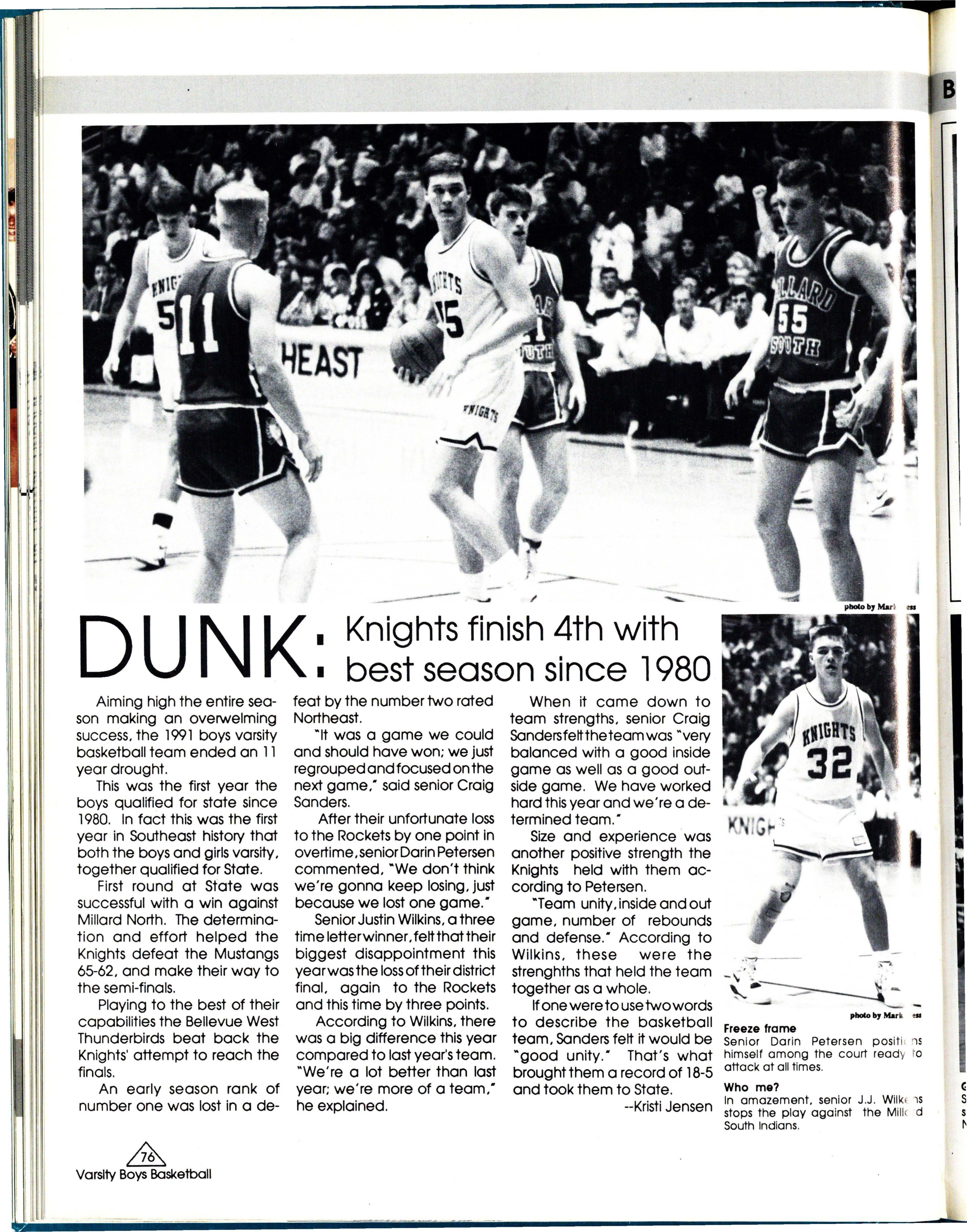 Sanders, Craig. Honor Roll, 11, 12; Baseball (4 ), 12-Captain ; Boys Basketball (4) , Captain (Sr .) ; American Legion Baseball (4).