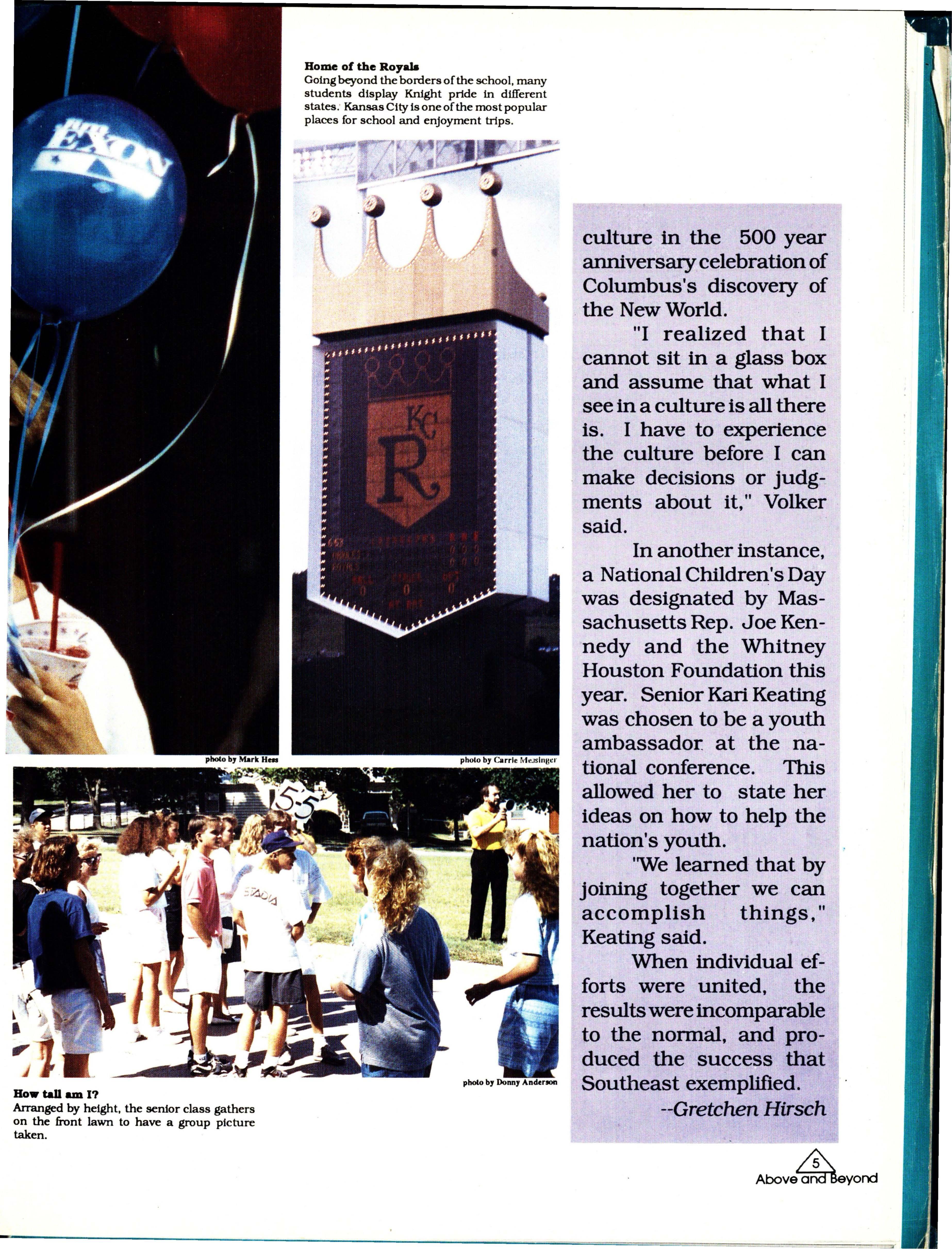 The st~dent body at Southeast radiated a diversity of talents and per. sonalitles, going above and beyond the stand~rd. Undisputed, the Knights lived up to the quality they were known for as individuals, as well as a team . United by the Earth