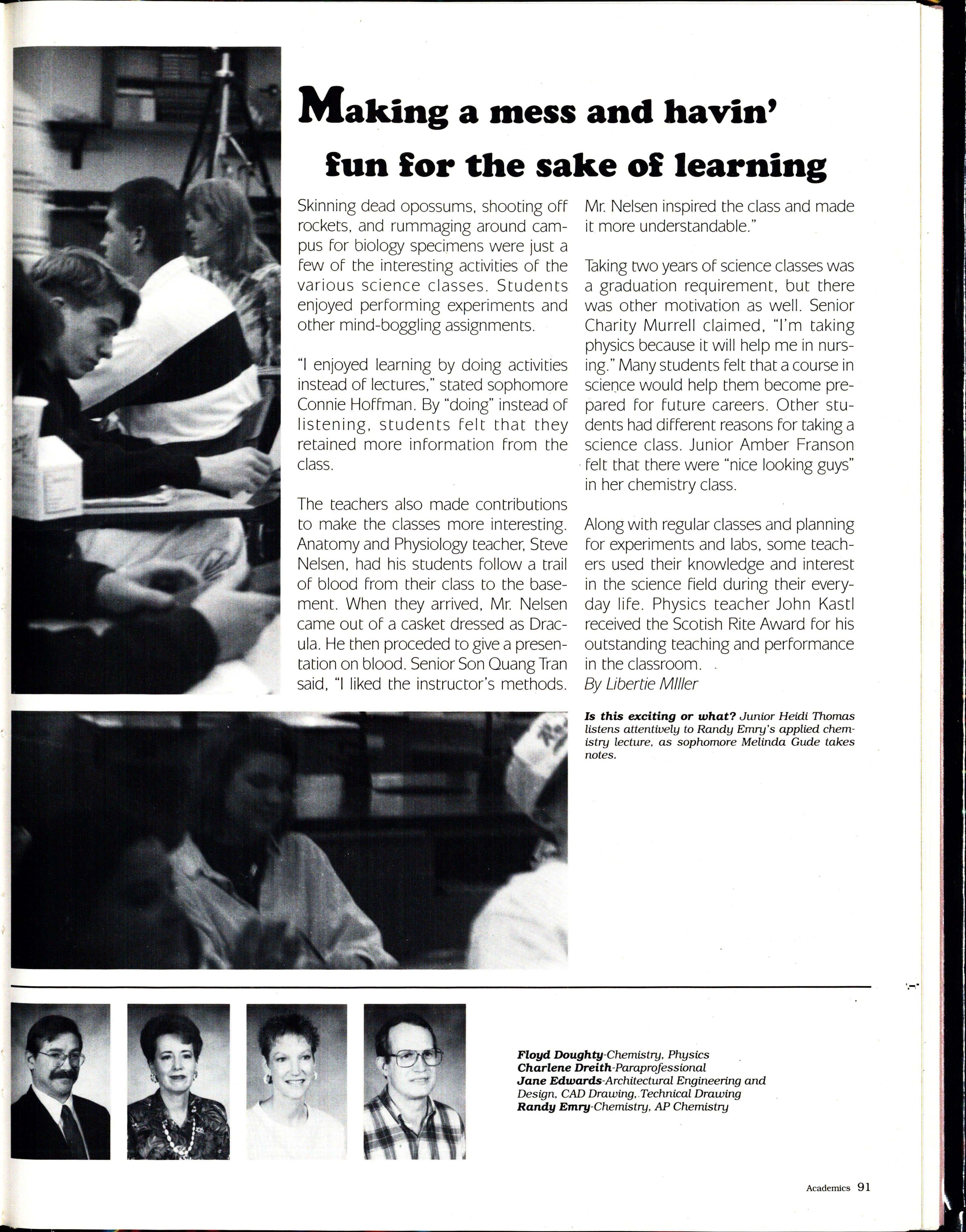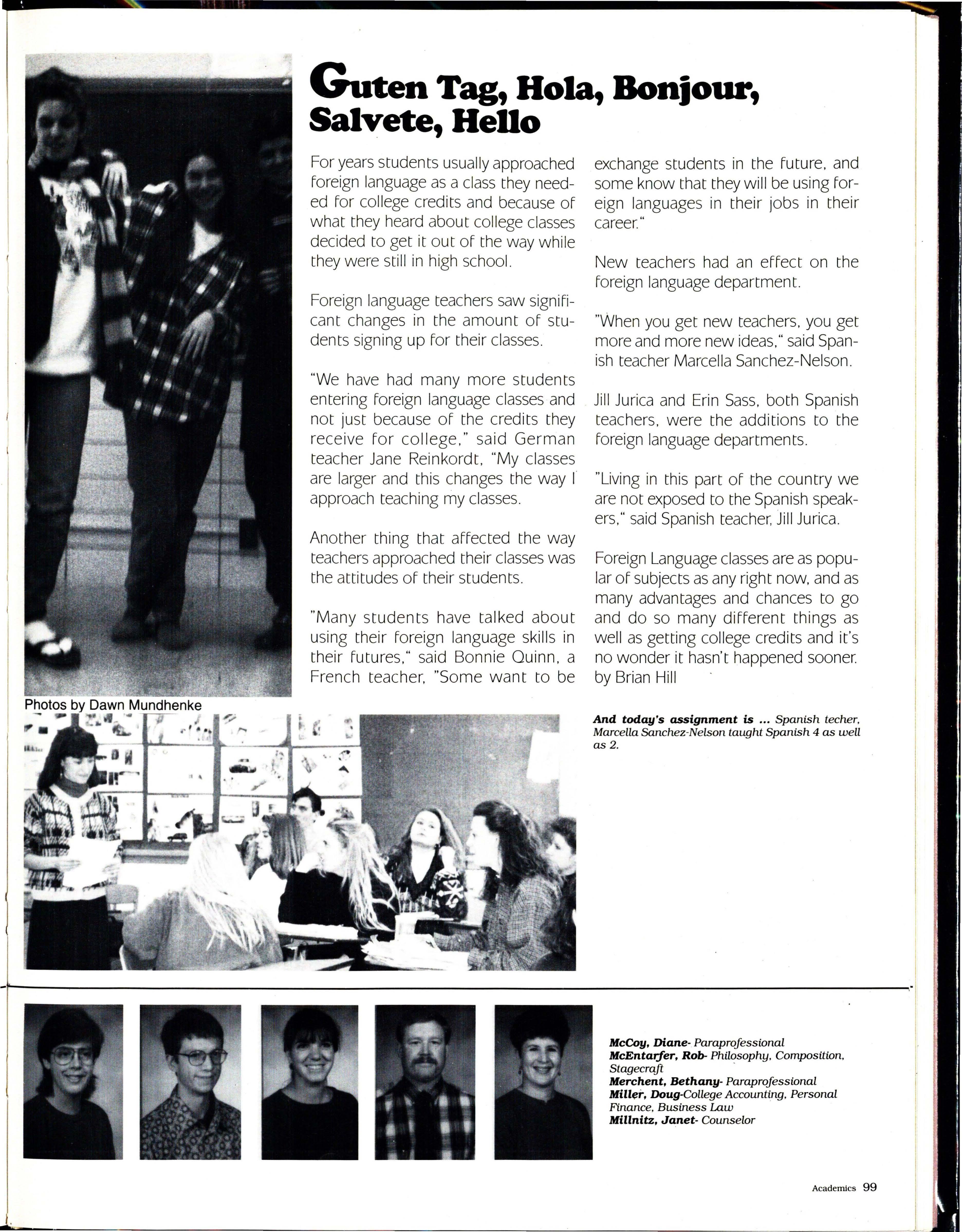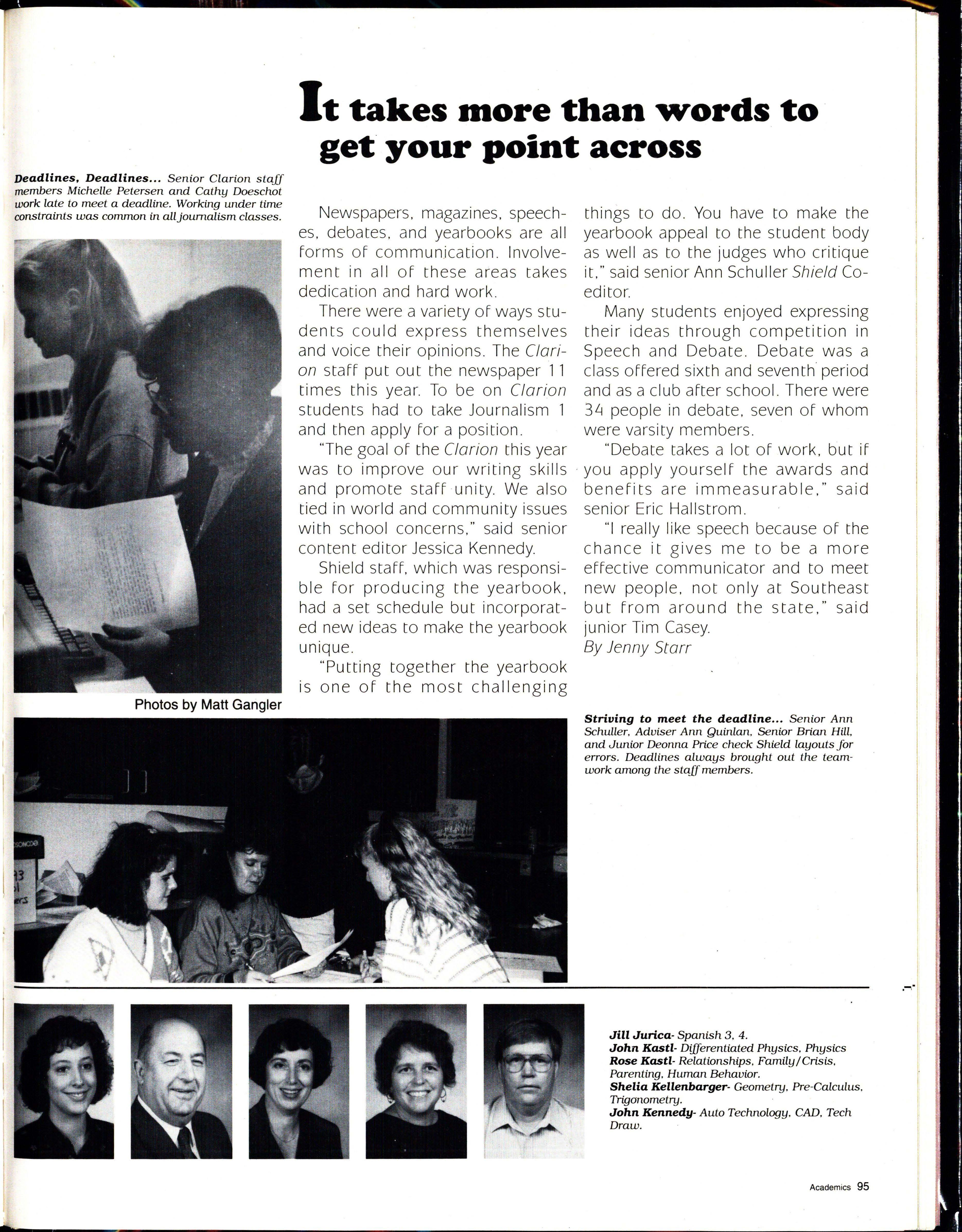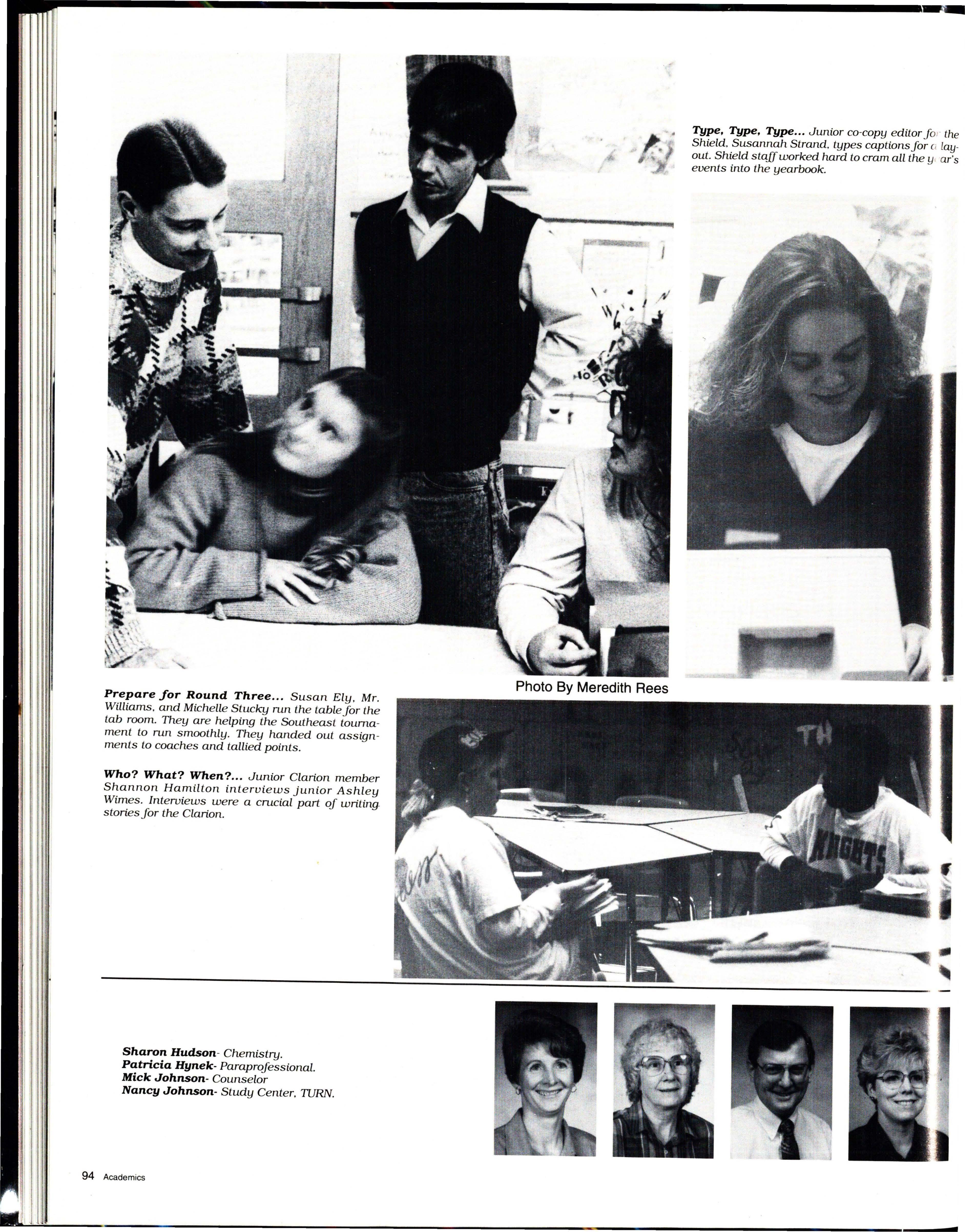 Special thanks go to Fran Zabloudil, for the cover design, Mike Diffenderfer and Brenda Search, Walsworth representatives. Theresa Lassek, for helping with the computers, and Dianne Kuppig for helping with the production of the yearbo o k. The 1992 yearbook was awarded a Cornhusker, from the Nebraska High School Press Association, a Medalist certificate, from the Columbia Scholasti c Press Association, and a First Class, from the National Scholastic Press Association. The Shield staff would like t o recognize Dr. Wesley Lauterbach and Larry Eaton for all their time and effort that they put forth to support the school and wish them happiness in their retirement.