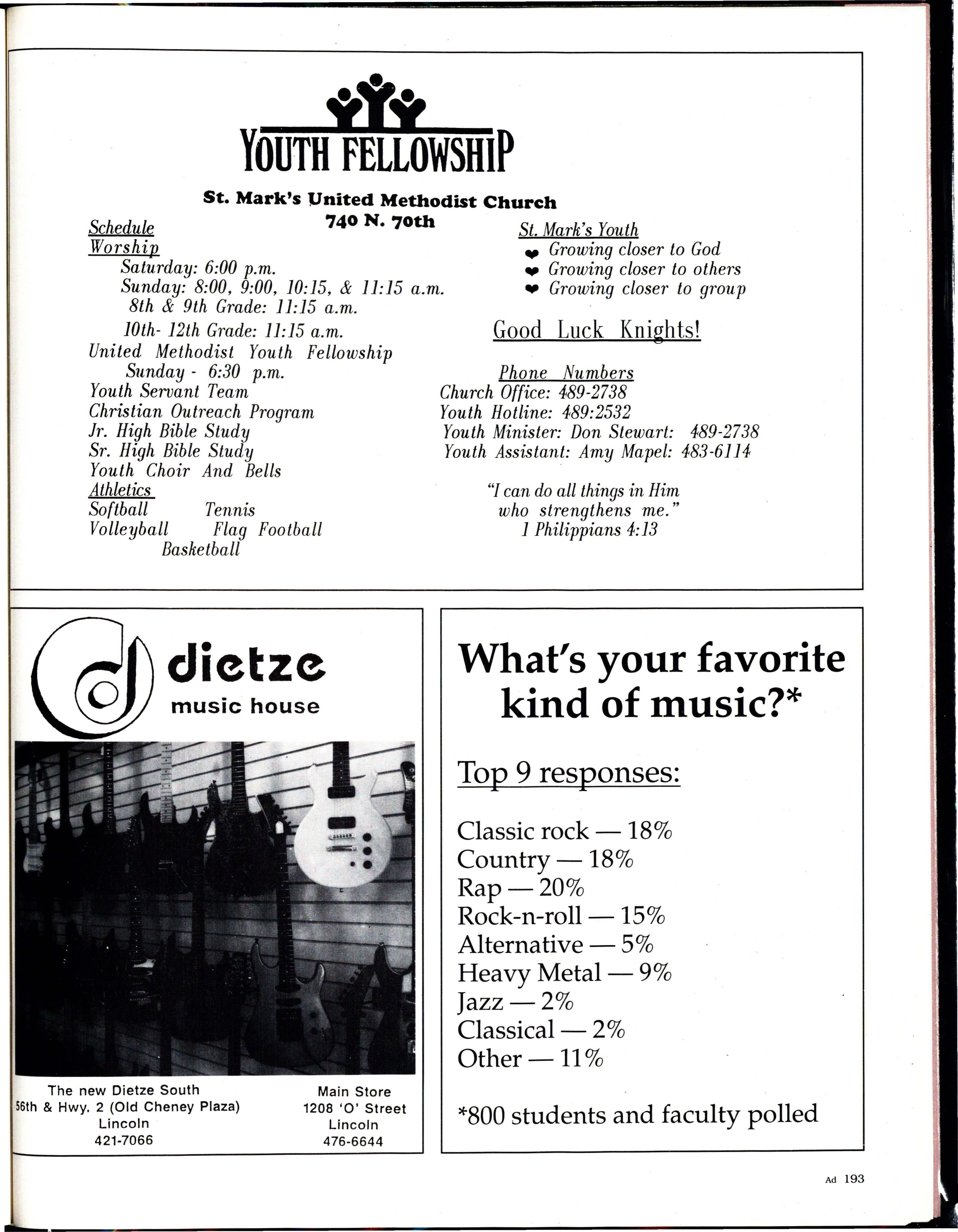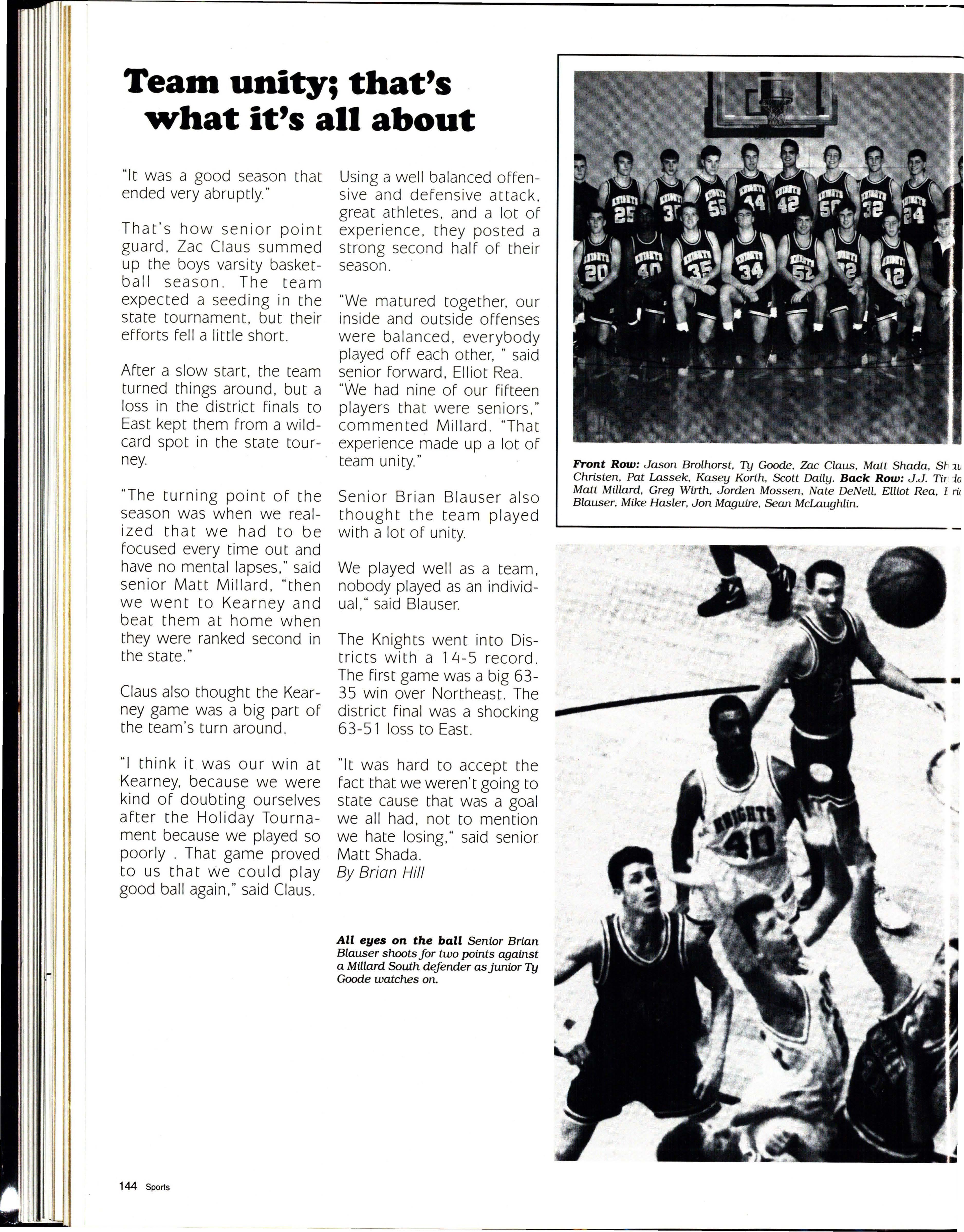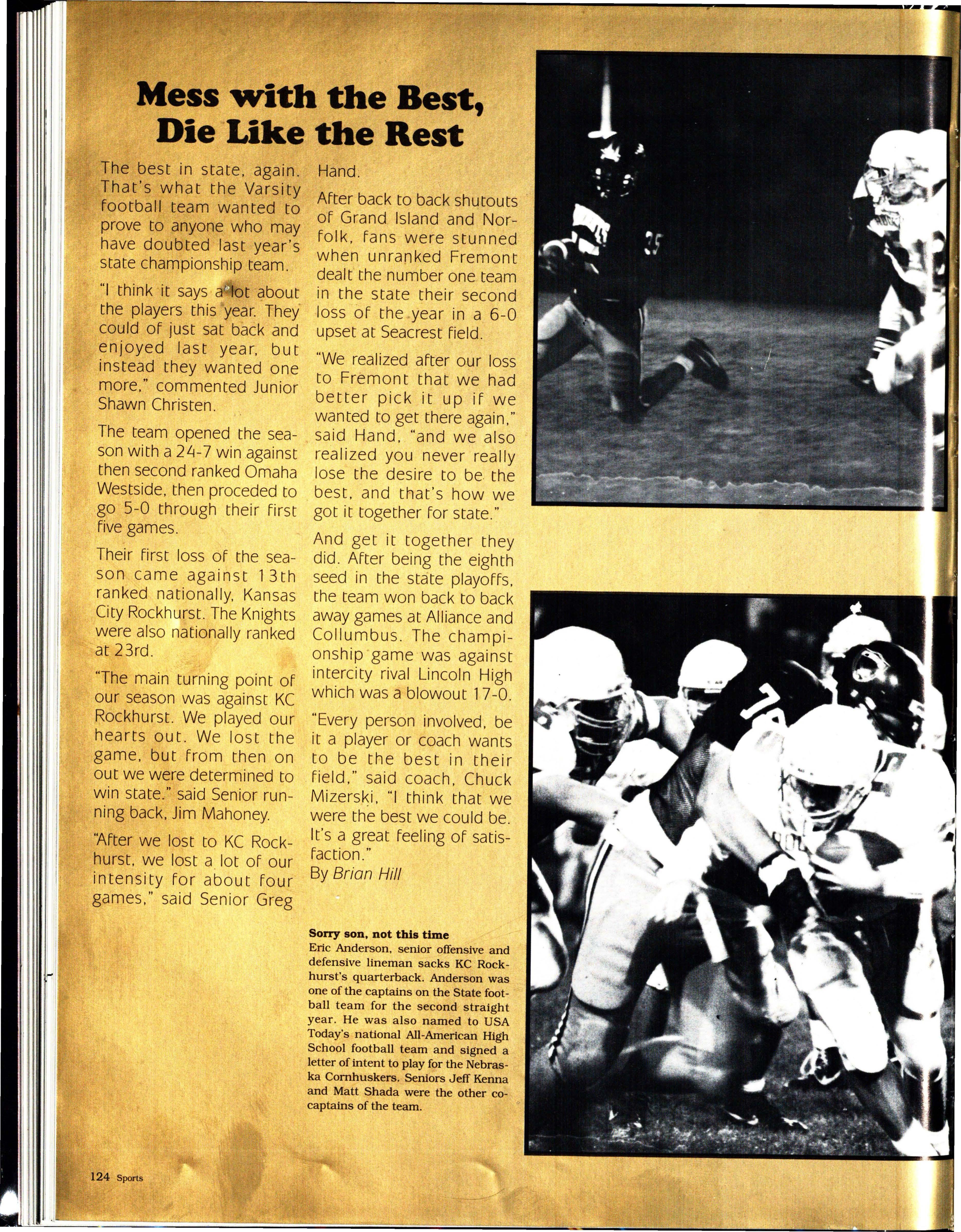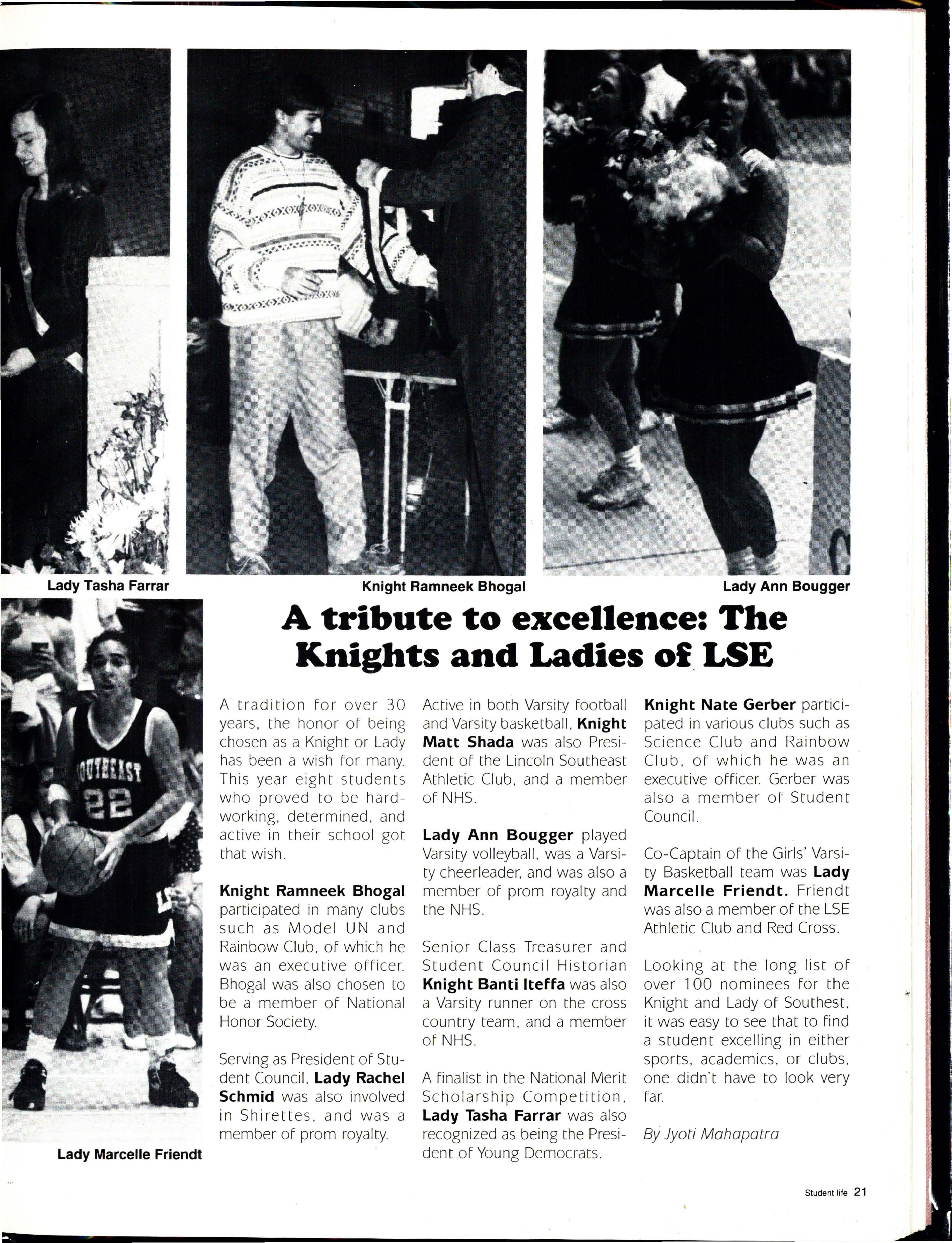 Active in both Varsity football and Vars ity basketball. Knight Matt Shada was also President of the Linco l n Southeast Athletic Club, and a member of NHS