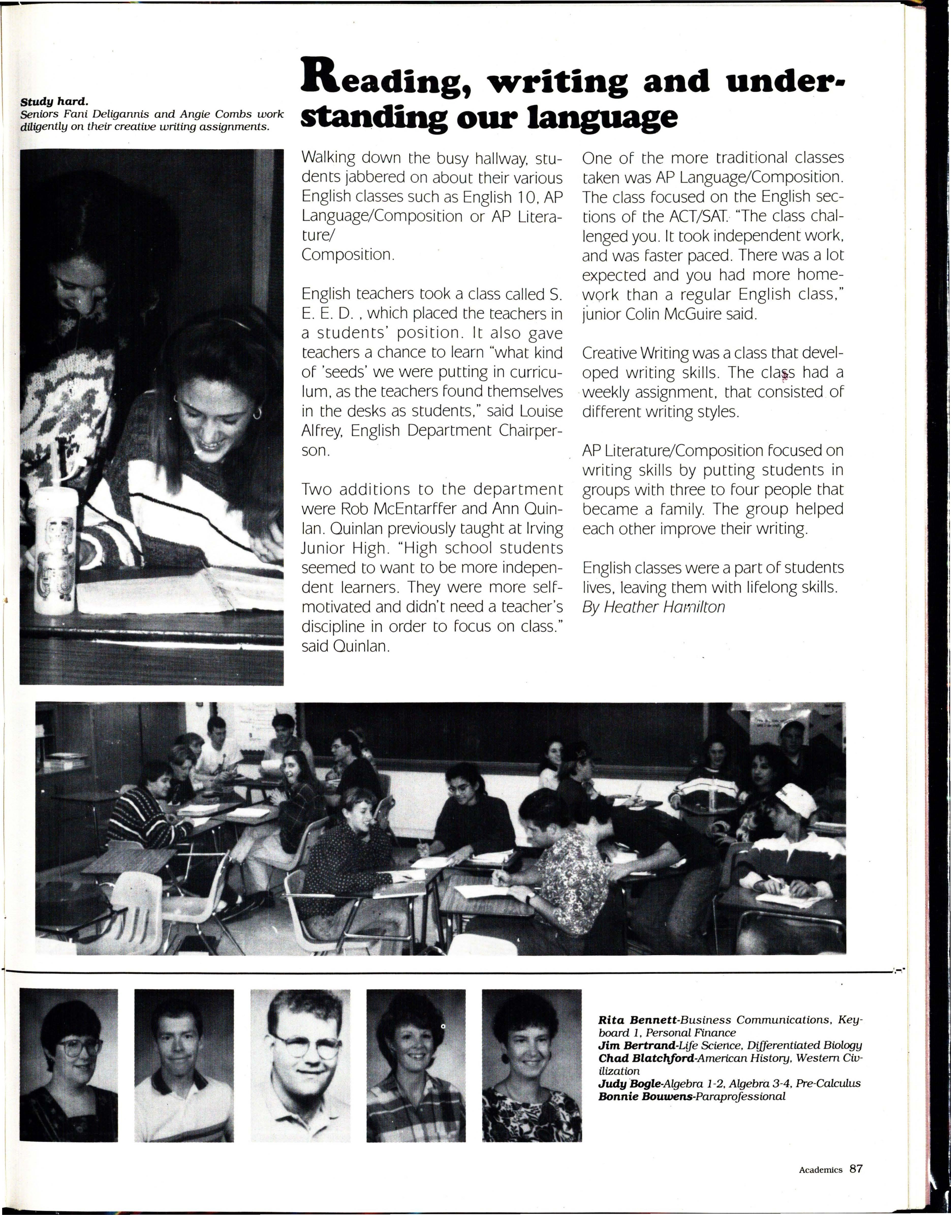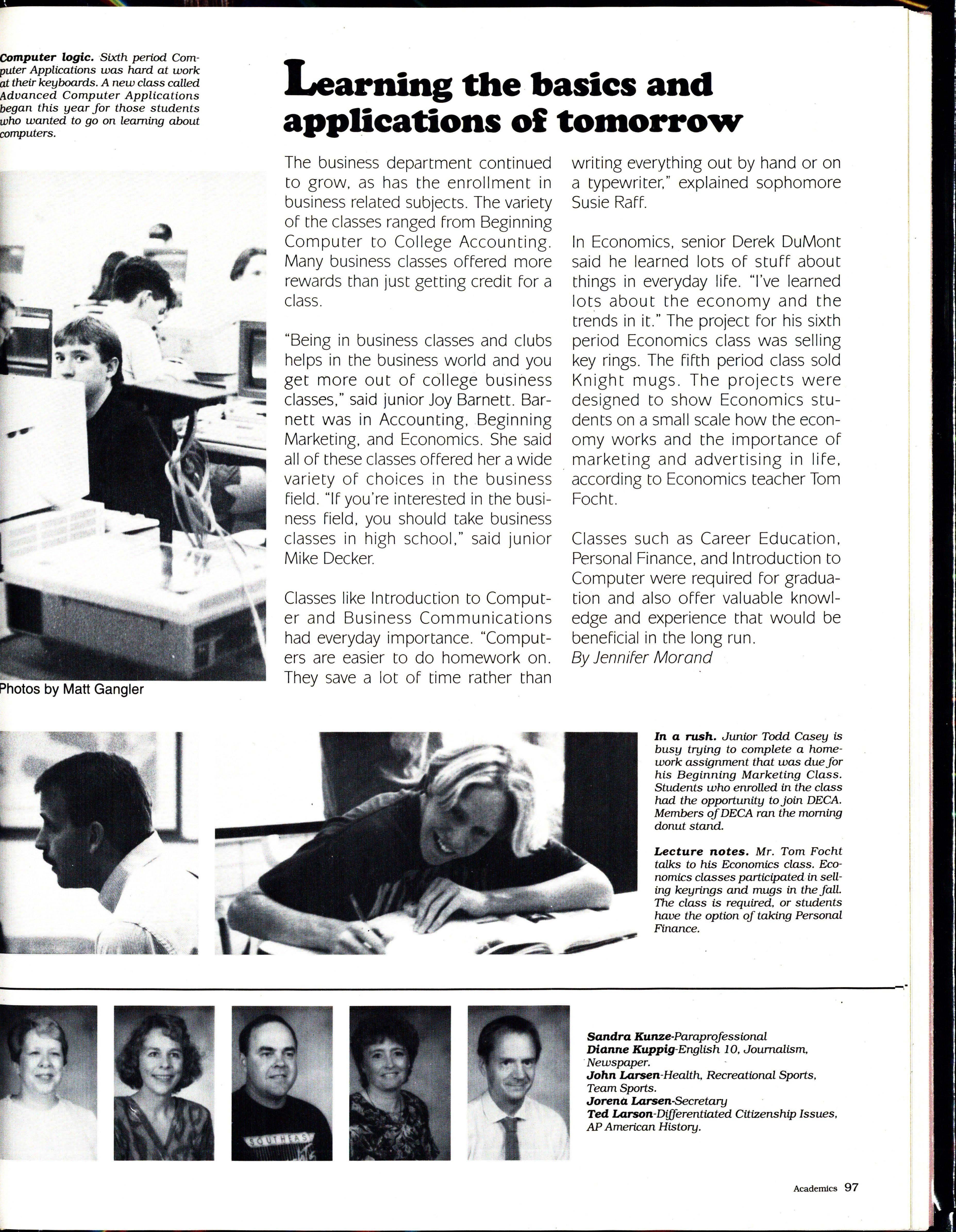 Another first this year was the new criminal justice class. At first there was some concern as to the student response to this new class. however. this was not a problem. "This class gives you a chance to express your opinions and share your ideas with the class on how you feel about things like the insanity plea and victims' rights," comment_ ed Senior Deb Delair. The class had speakers throughout the school year who talked about different subjects Most would agree that the new additions helped this year to be one of the best ever.