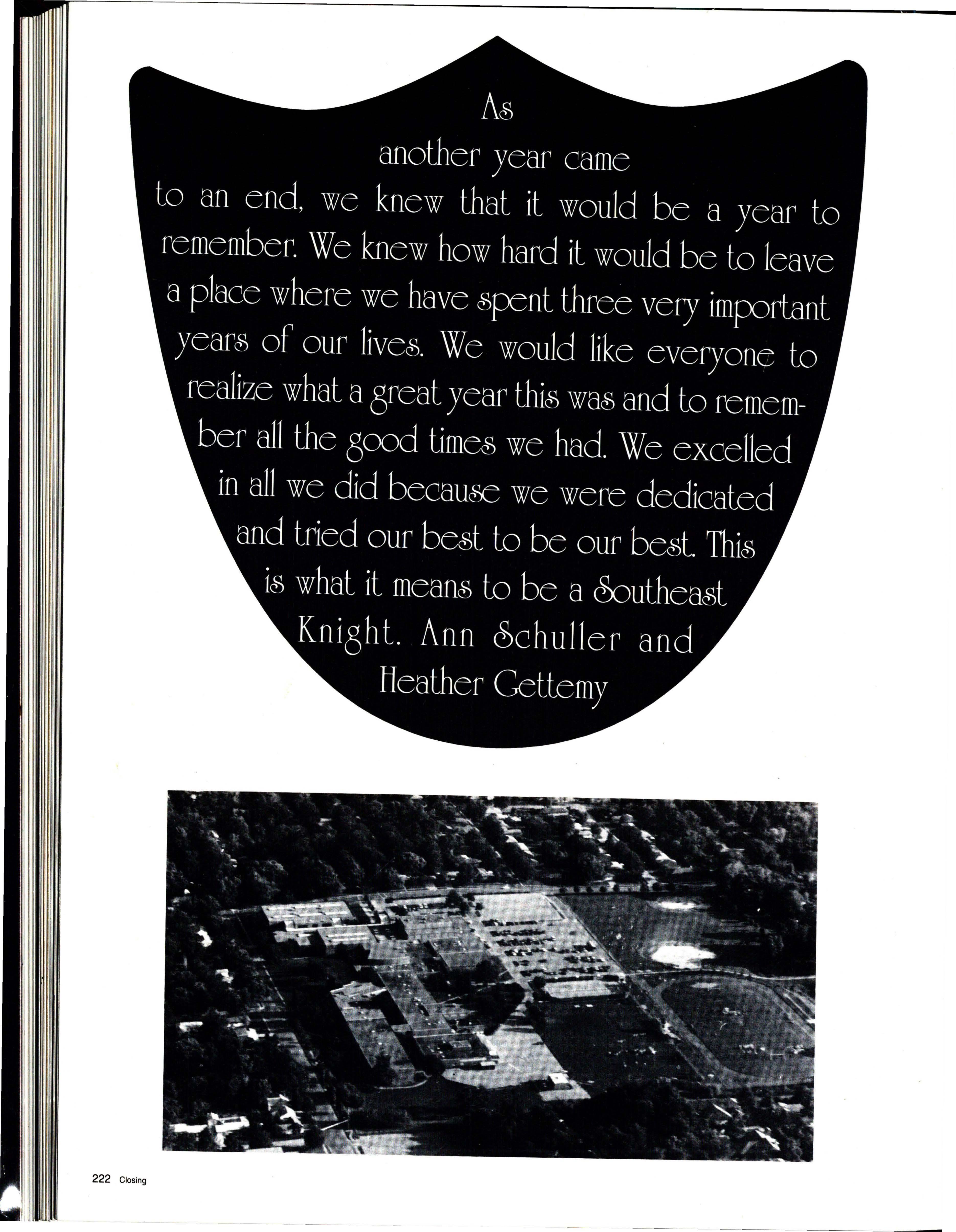 As another year came lo an end, we knew that il would be a year lo remember. We knew how hard il would be lo leave a place where we have spent three very important years of our lives. We would like everyone lo realize what a 8real year this was and lo remember all the Sood lim~') we had We excelled in all we did becaure we were dedicated and tried our best lo be our besl This is what il means lo be a &oulheasl