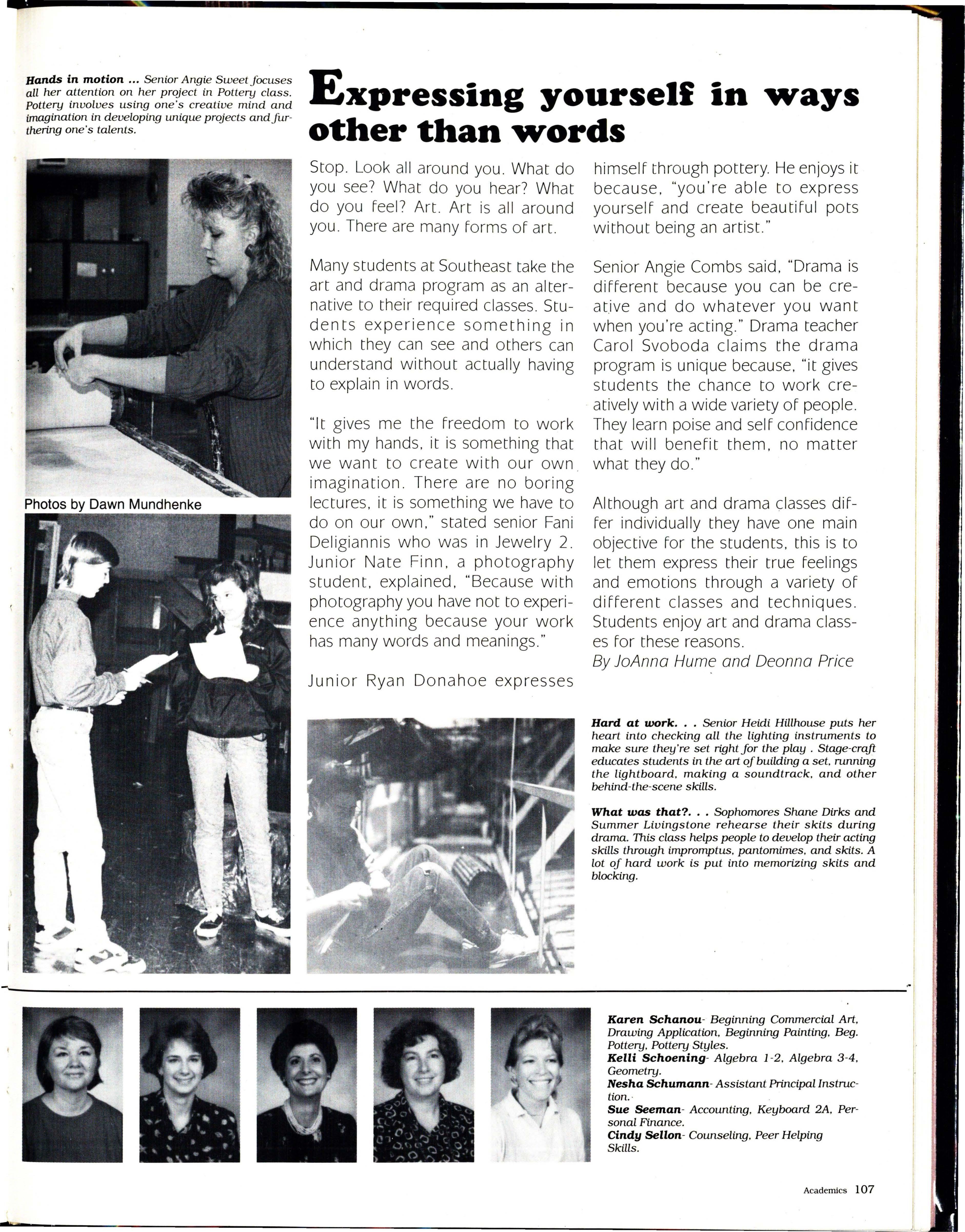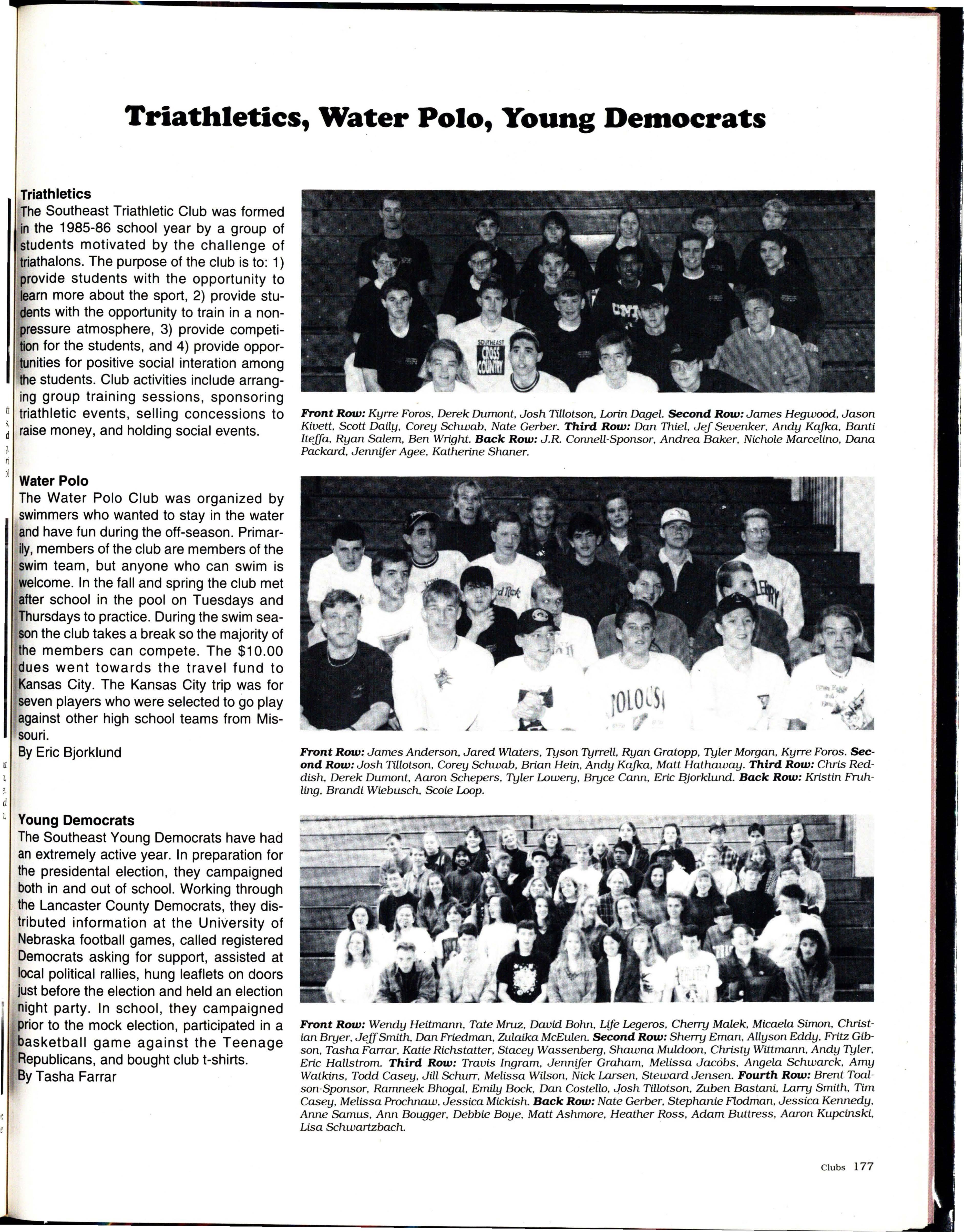crat. After withdrawing and then reentering the election in August, his name was placed on the ballots of all 50 states . At Southeast, the election year didn ' t go by unnoticed Clubs such as Young Republicans and Young Democrats spent time trying to increase the students' awareness Senior and president of Young Democrats Tasha Farrar helped make the club more active this year by planning activities such as fundraisers, speakers , and signs. Some of the events planned for Young Republicans were a mock election for students concerning issues such as the state lottery, term limits, and the