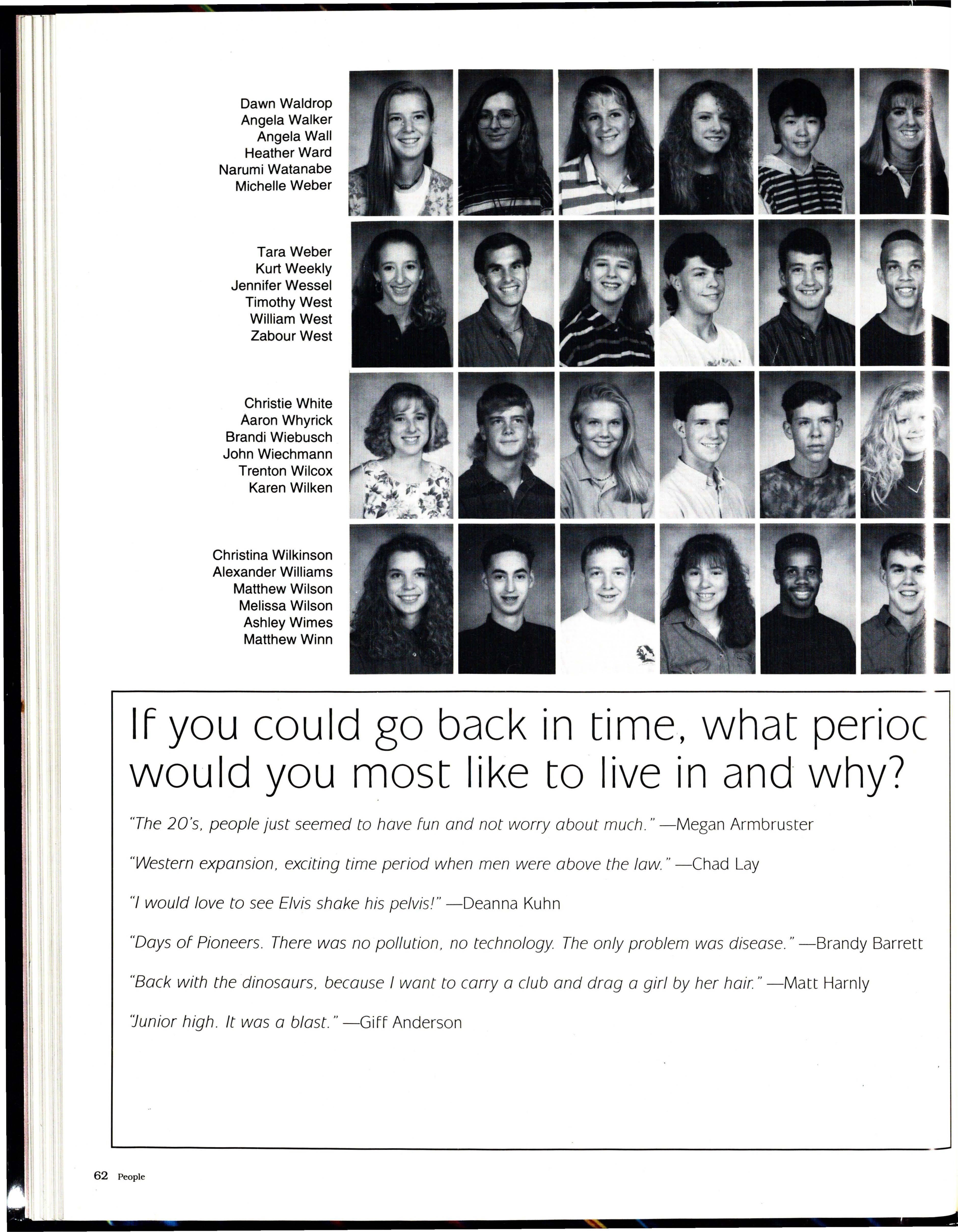 1rin 'n bear it. Junior Ty Goode 1rimaces as he comes off the field iuring the game. Goode was out the ·emainder of the game with an ankle Tjjury. Photo by Matt Gangler Slow motion Juniors Matt Pekny and Dilyara Khairullina dance together during a slow song. S t udents danced to the wide variety of music provided by B104's Murphy in the Morning. All Smiles. Senior Olivia Fowler looks ecstatic as former Homecoming Queen Erika Black crowns her at the dance. Fowler was pleased to be chosen by her peers .Where the action is. President elect Democrat Bill Clinton will be spending many hours in the United States Capitol building trying to improve the nation Clinton was the first Democratic President in 12 years.