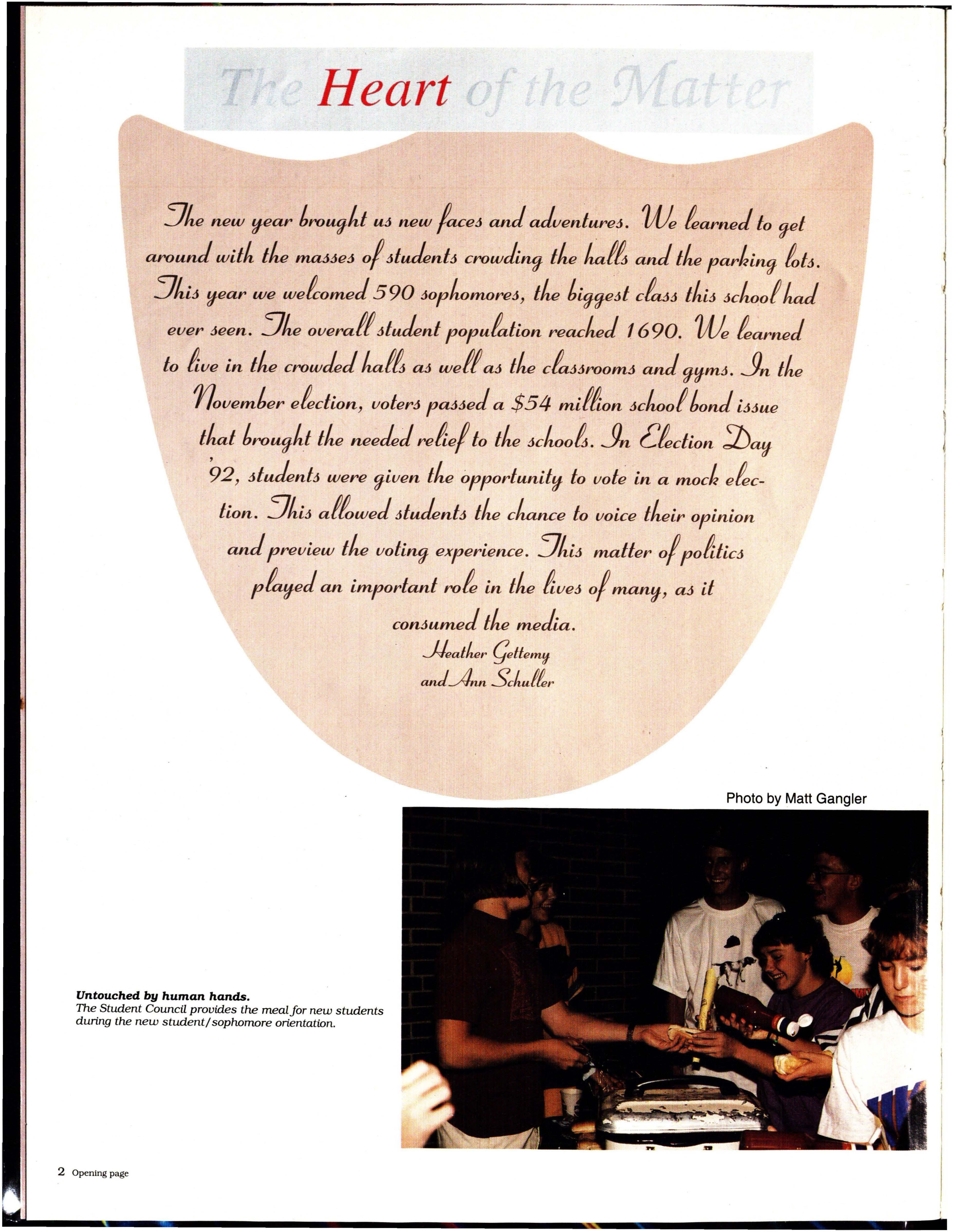 :Jhe new g.ear trought wl new /ace:J and advenfure:J. U/4 learned lo gel around with the ma:J:Je:J o/ :1tud.ent:J crowdill<J the fiafg and the parking fot:1. :Jhi:1 ';fear we welcomed 5 90 :Jophomore:J, the ti<J<Je:Jf cfu:1 thi:1 :Jchoof W ever deen. :Jhe overa// dtuJent population reached 1690. U/4 learneJ lo Ave in the crowded hafl a:J weft a:J the cfa:J:Jroom:J and g';fm:J . .!Jn the novemter eleclion, voler:J pa:1:1ed a $54 mil.ion :Jchoo! tond i:J:Jue tfiat troU<Jht the needed re.ie/ lo the :Jchool .!Jn {!leciion :l)lllf
