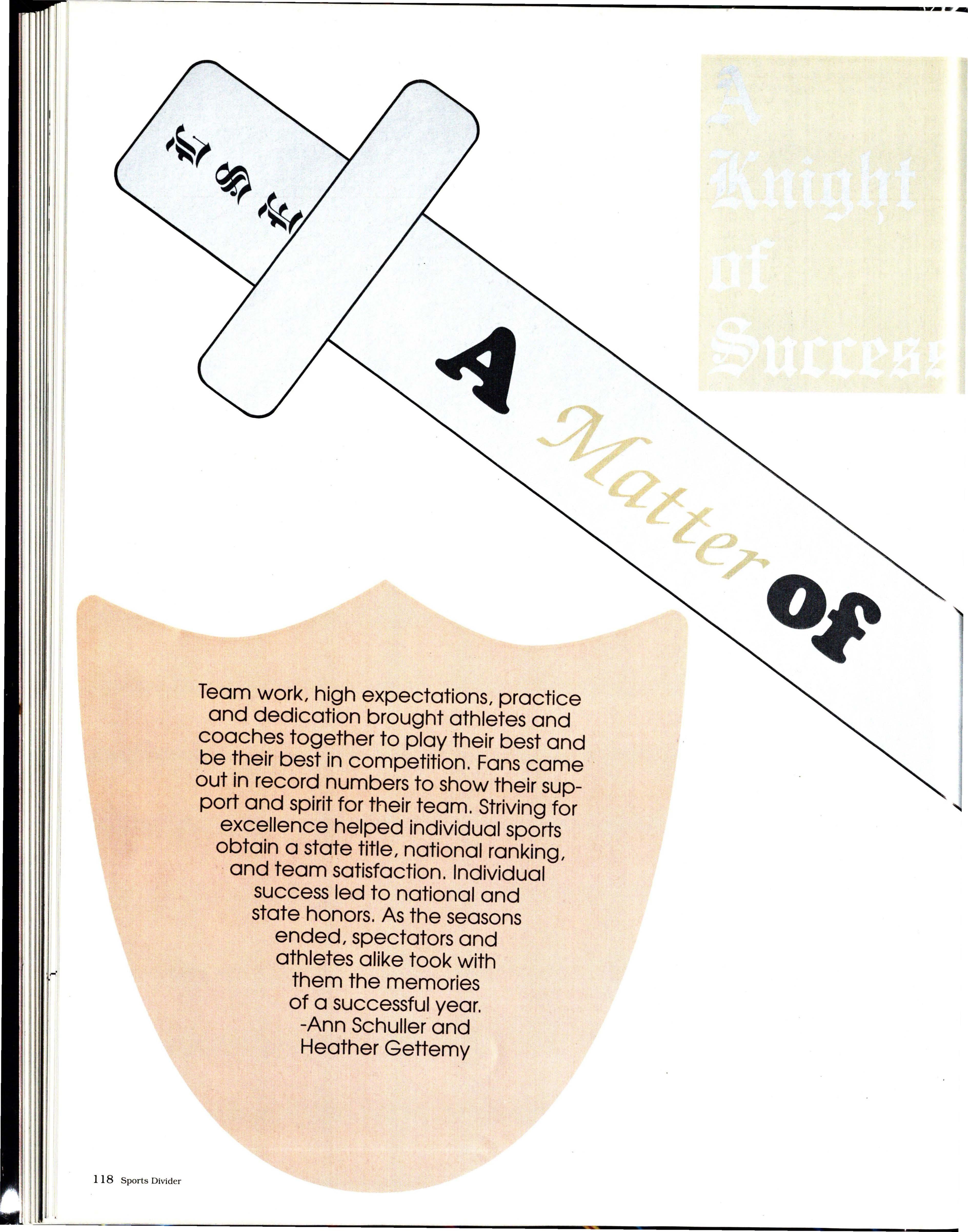 IThe Shield was completed in six deadlines by using the new Comtran 2 .0 computer program and LaserWriter printer. Fonts used were, Helvetica, Cooper Black, Zapf Chancery, Broadway, Jefferson, Times Italic, Bookm a n , Bookman Italic, Mixage, University Roman. Colors used were Burgandy, Maroon, Peach, Process Red, Violet, Orange. Royal Blue, Process Yellow, Chartreuse, Irish Green, Bright Red, Forest Green, Sapphire Blue, Indi go, Royal Purple, Bronze, Silver, and Gold.
