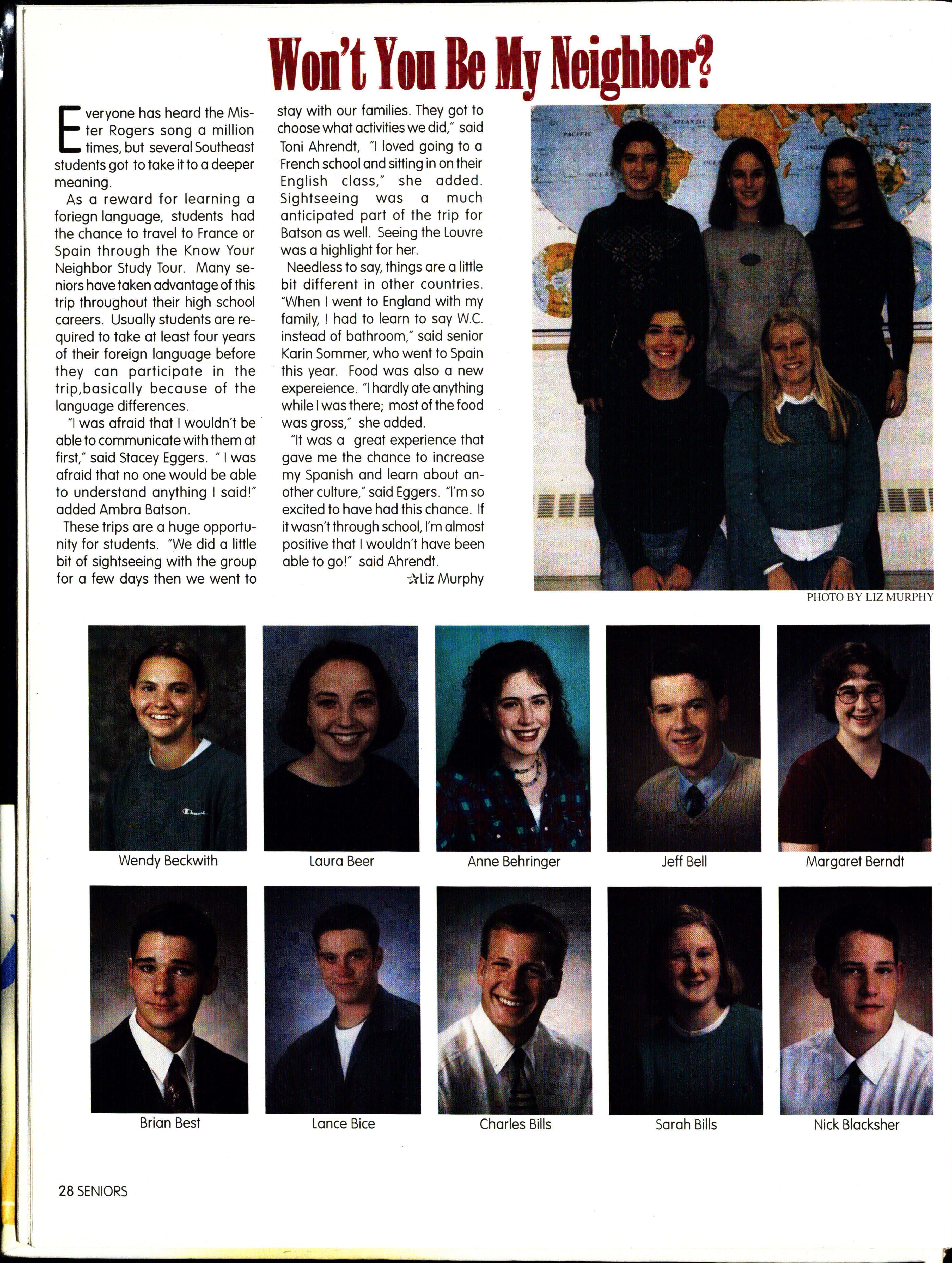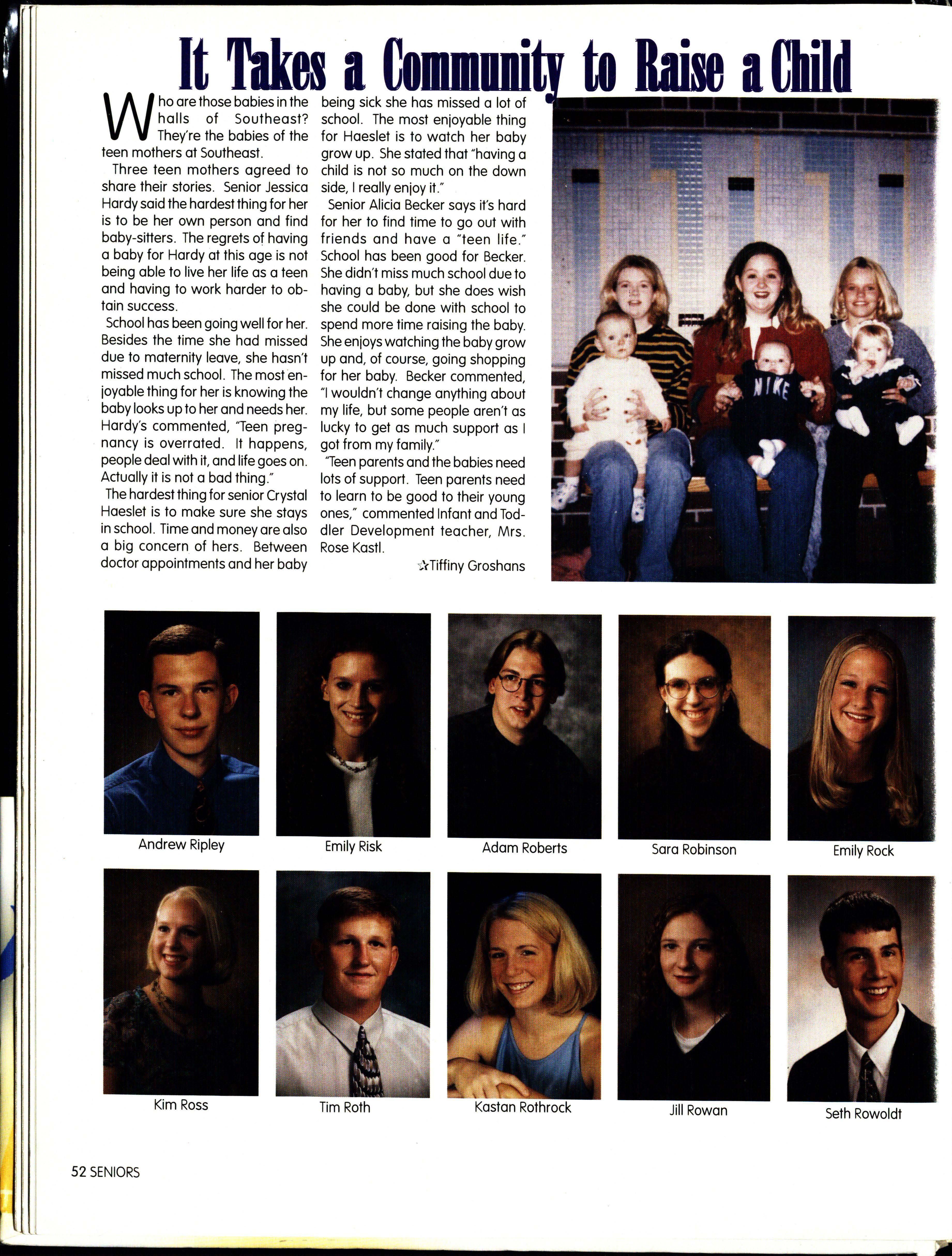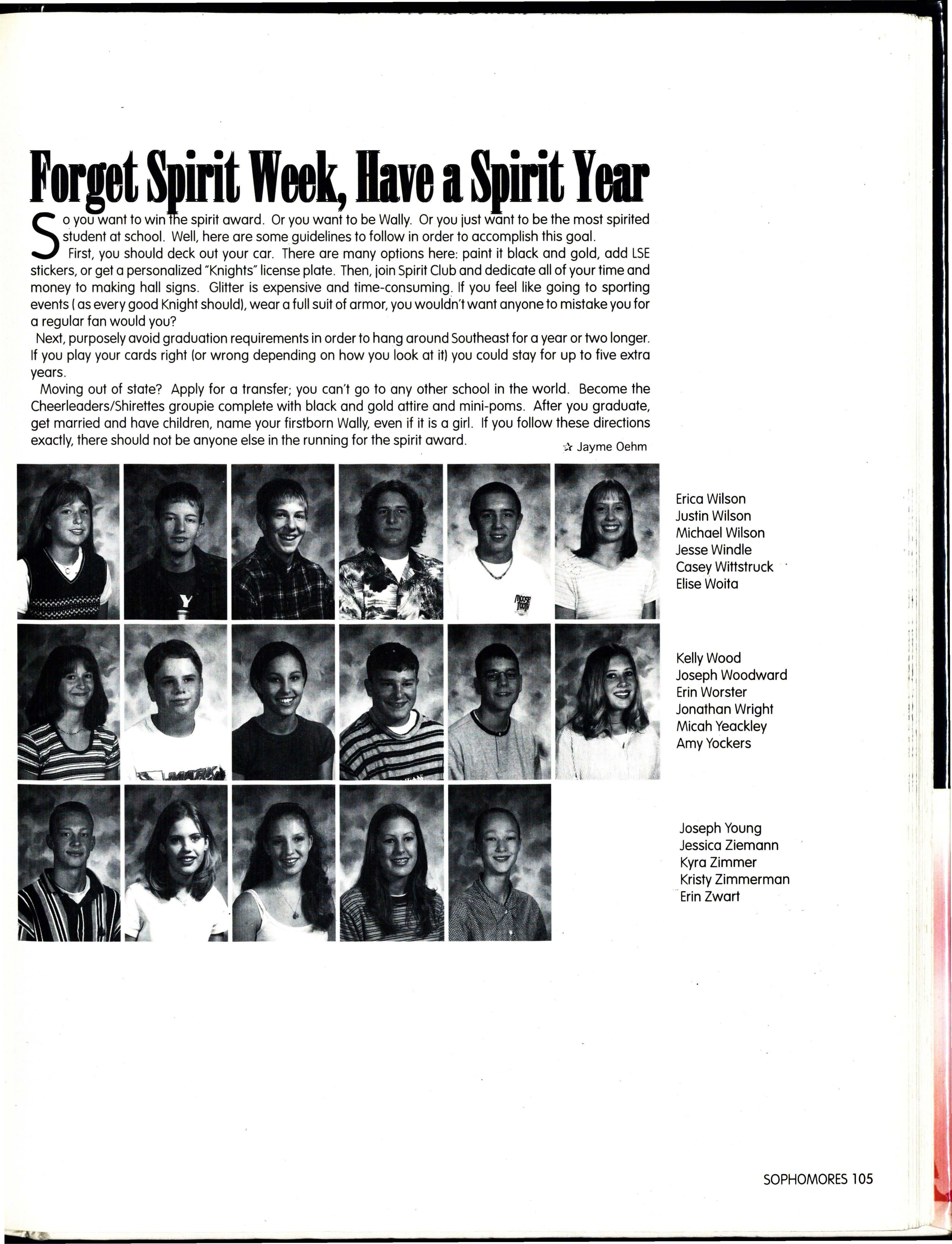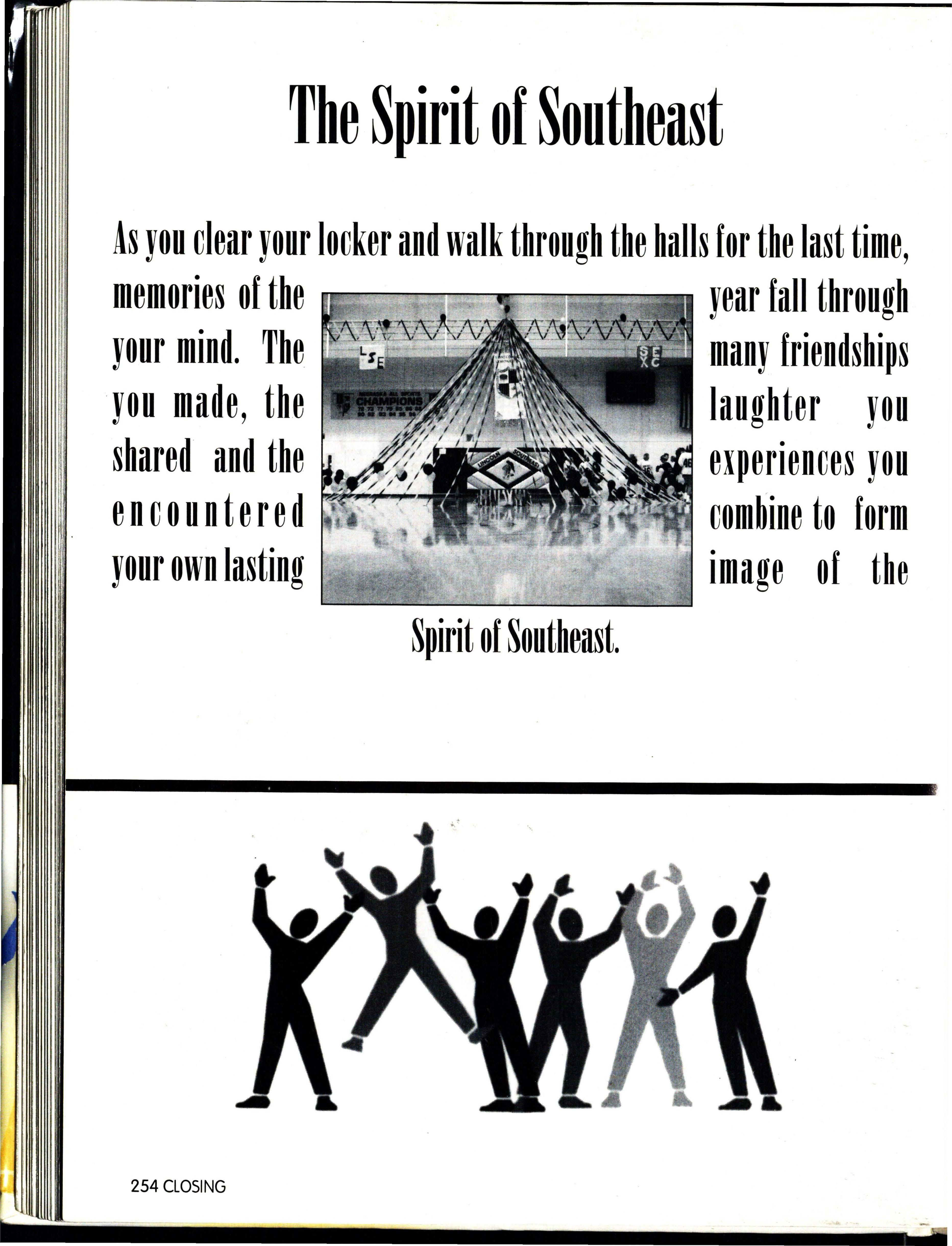 Southeast has always been known for its faithful fans In the past students ' enthusiasm has been shown through many examples of creative expression, such as pa inted bodies and wacky costumes To ensure that these traditions live on, the Southeast Spirit Club was organized this year by seniors Marie Milligan, Linda Ewell, Liz Brandle, Toni Ahrendt , and teacher/sponsor Nancy O' Brien "Southeast has so much potential for all kinds of support, " Milligan said, "With this club, it gives an opportunity for everyone to get involved ."