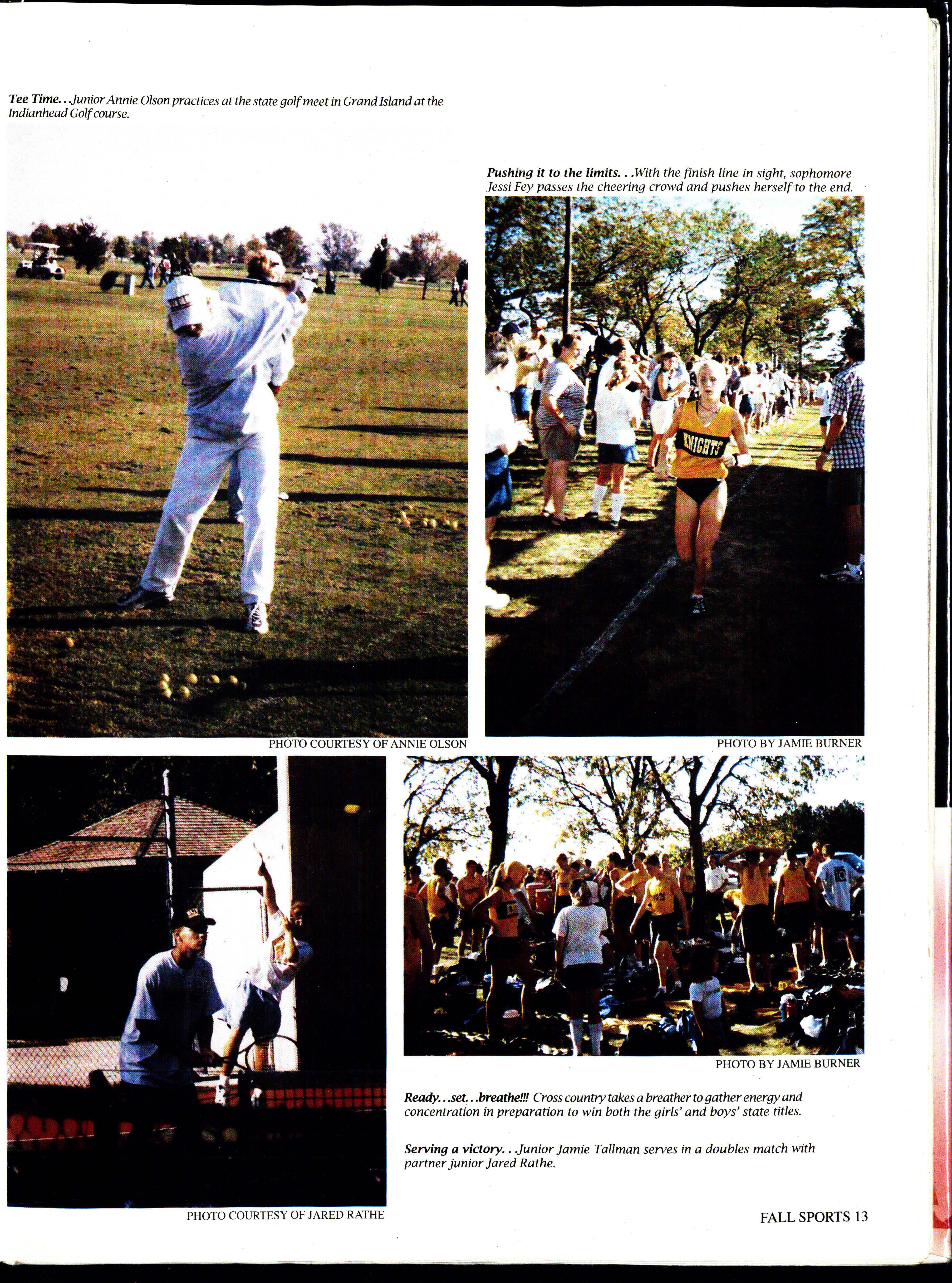 Boys' Cross Country also won the state title, making it their eighth state title "We had incredibly strong unity A team could have all the talent in the wo rld, but if their members don ' t get along , they will want to run individually. We all wanted to run together, " junior Marc Biggerstaff said Varsity football entered into the sem,ifinals of state undefeated and triumphed through the finals , taking the state title. According to senior Joel Stauffer, Varisity football had a successful year because "everyone got along , there were no rivalries or bickering , and we pulled together in times of adversity "