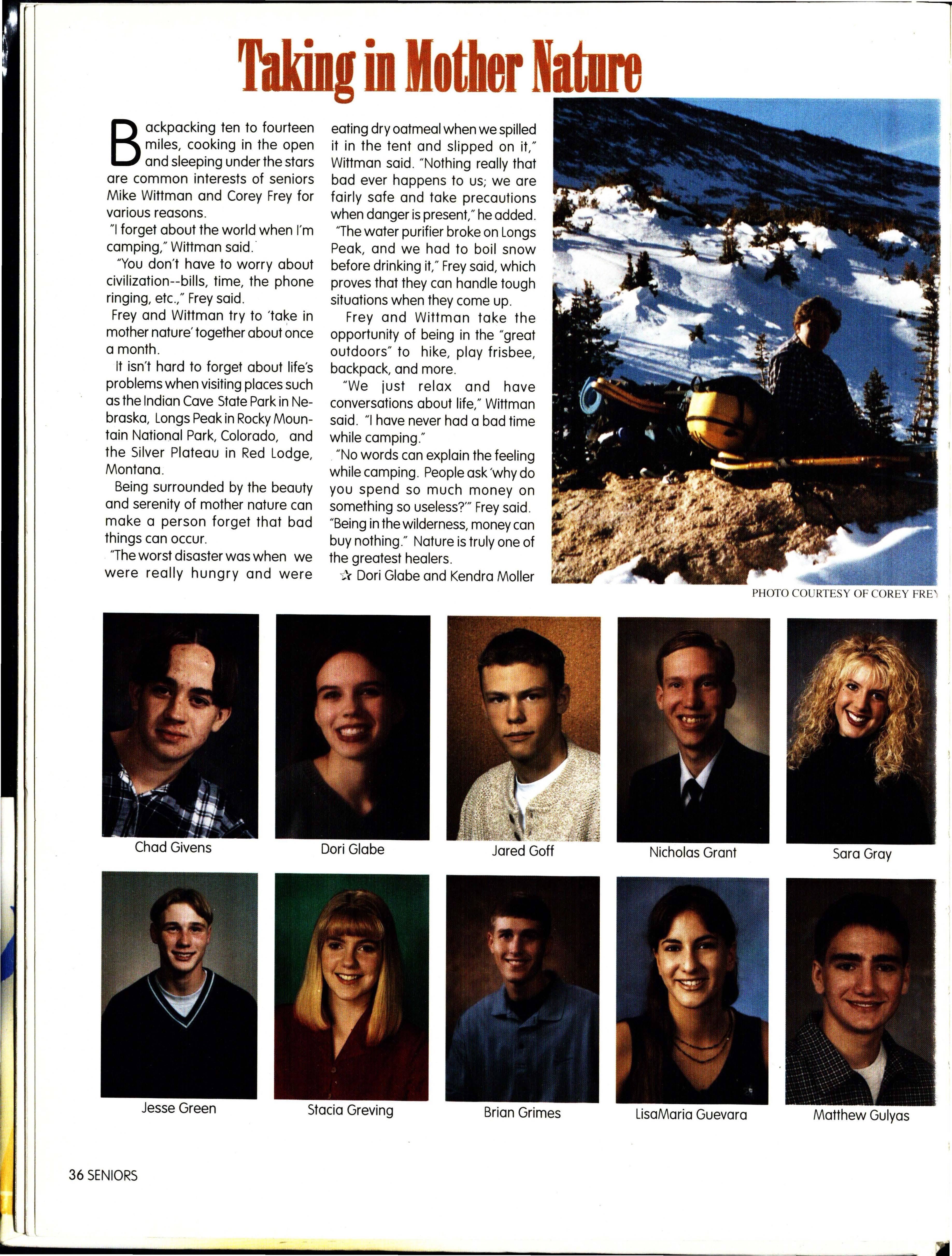 On top of the world Juniors Eric Wrig ht, Anthony, Brian Wandzilak, Ty ler Finlayson, and Matt Van Horn bond wit h nature during a back-packing trip to Roosevelt National Forest in Colorado.