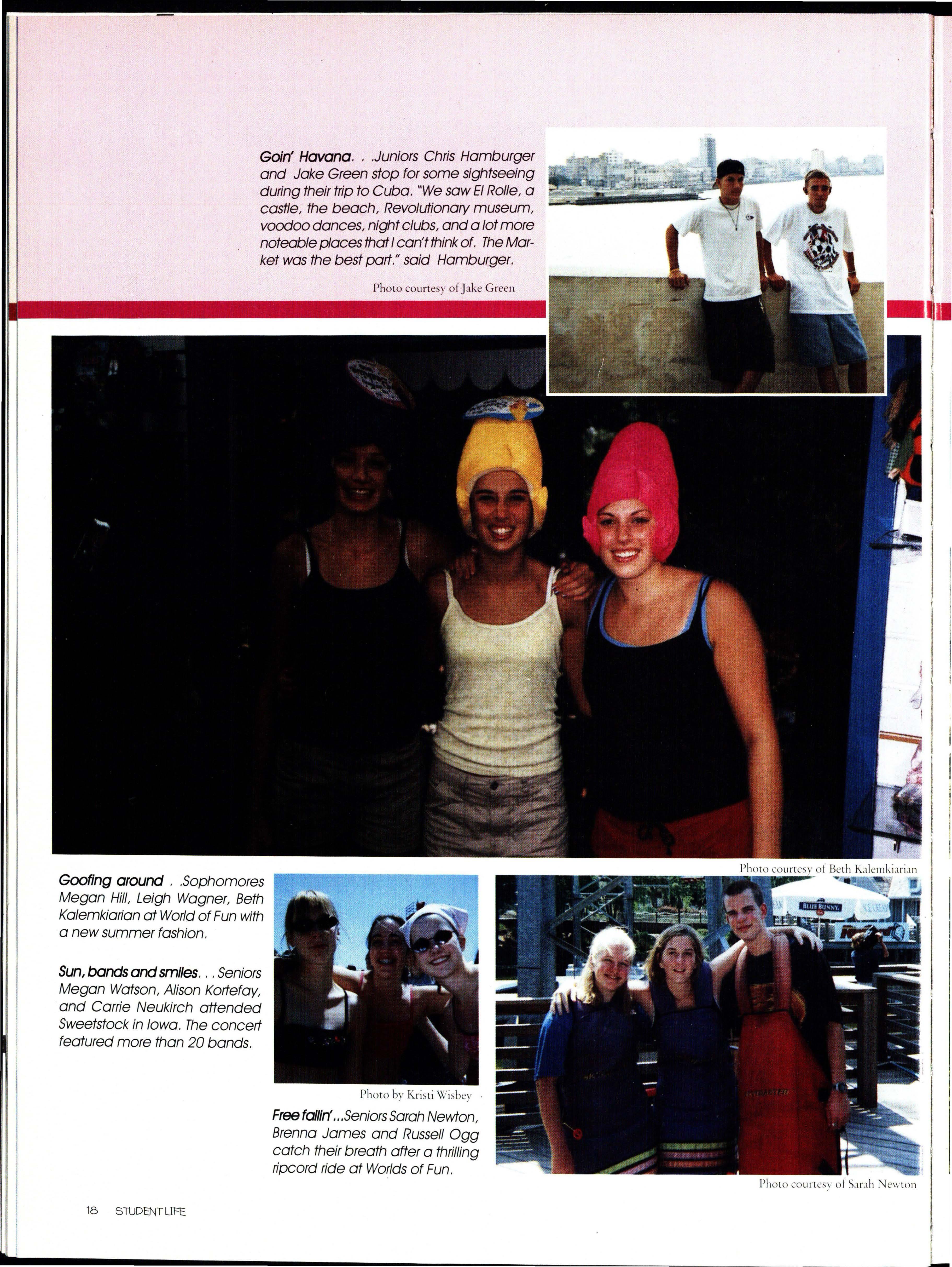 Ph oto b y Kri st i Wisbey Free fol/in' .. Seniors Sarah Newton , Brenna James and Russell Ogg catch their breath after a thrilling ripcord ride at Worlds of Fun.