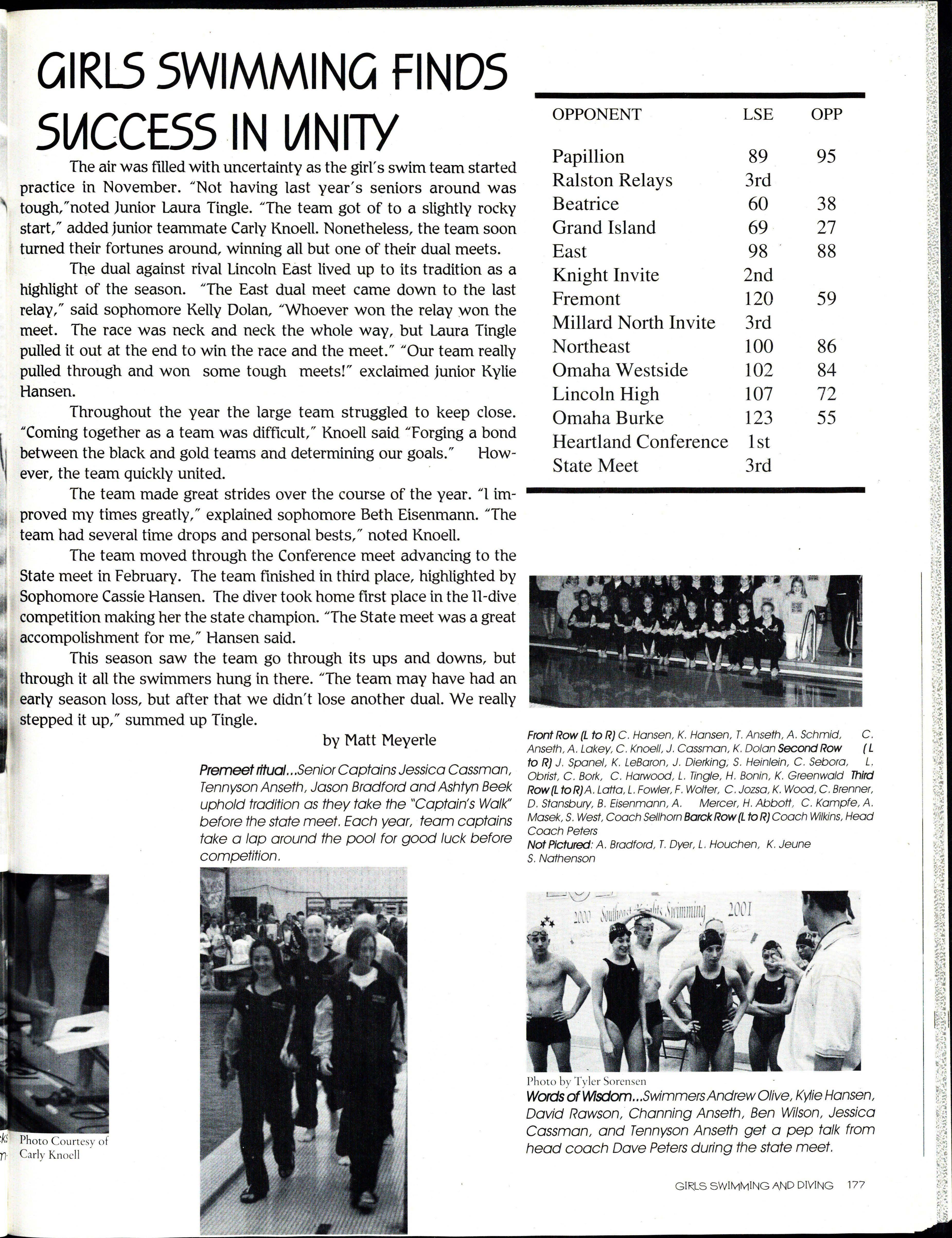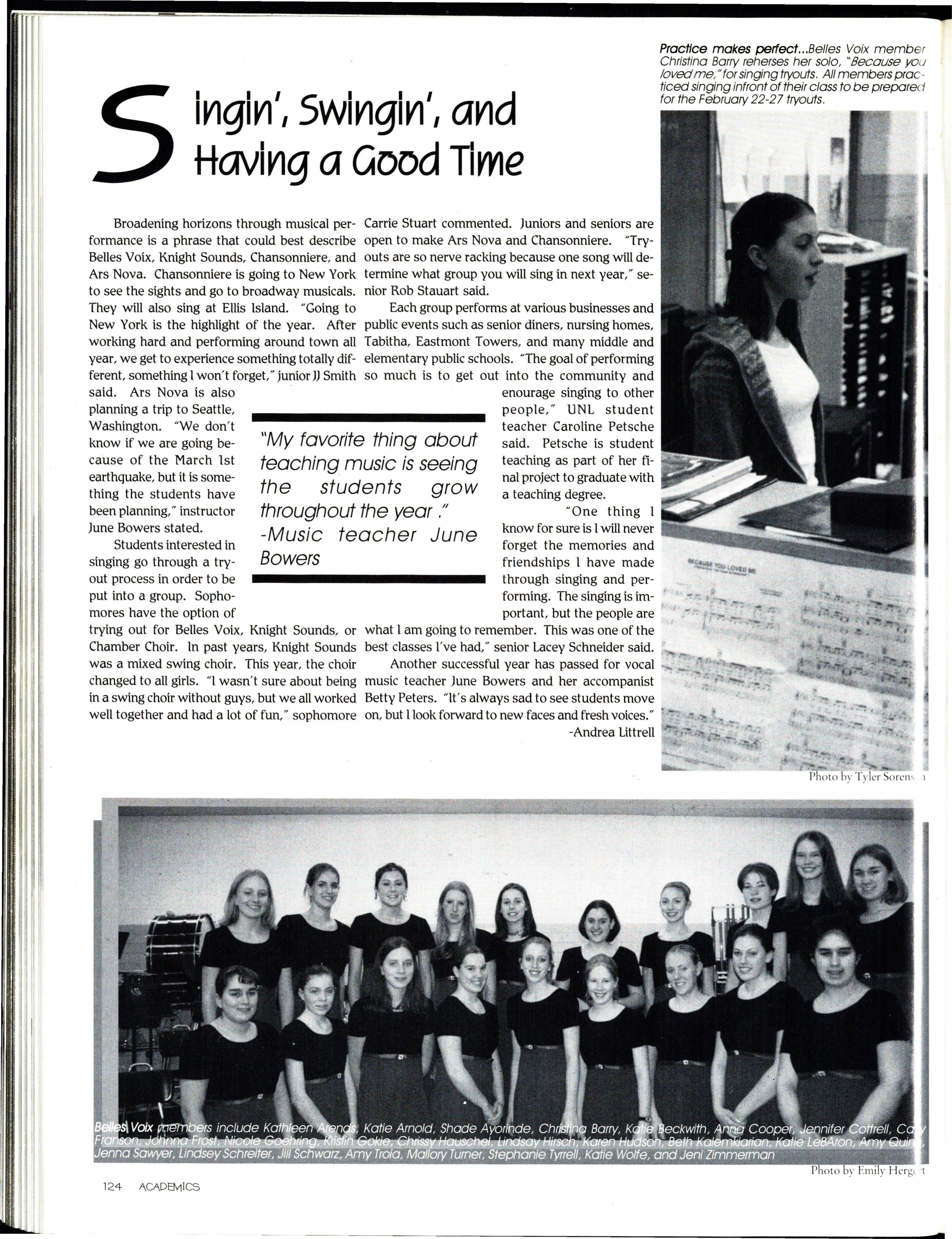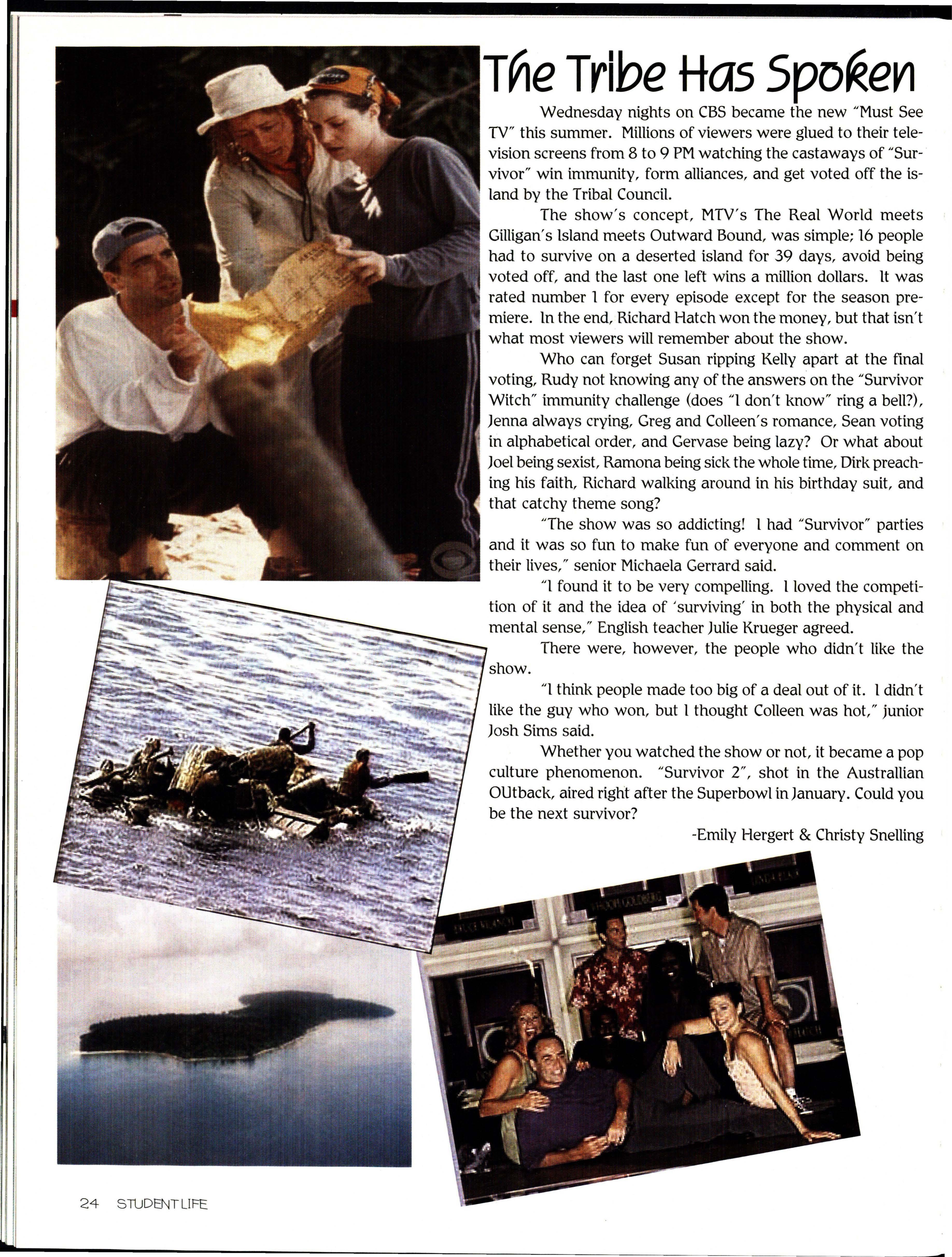 Staff Writers-Candice Bates, Vanessa Brouilette, Kelly Dolan, Brenna James, Cari Lepa, Matt Meyerle , Lynn Perkinton, Barbie Schildt, Laura Vaughn. Advisor -Ann Quinlan