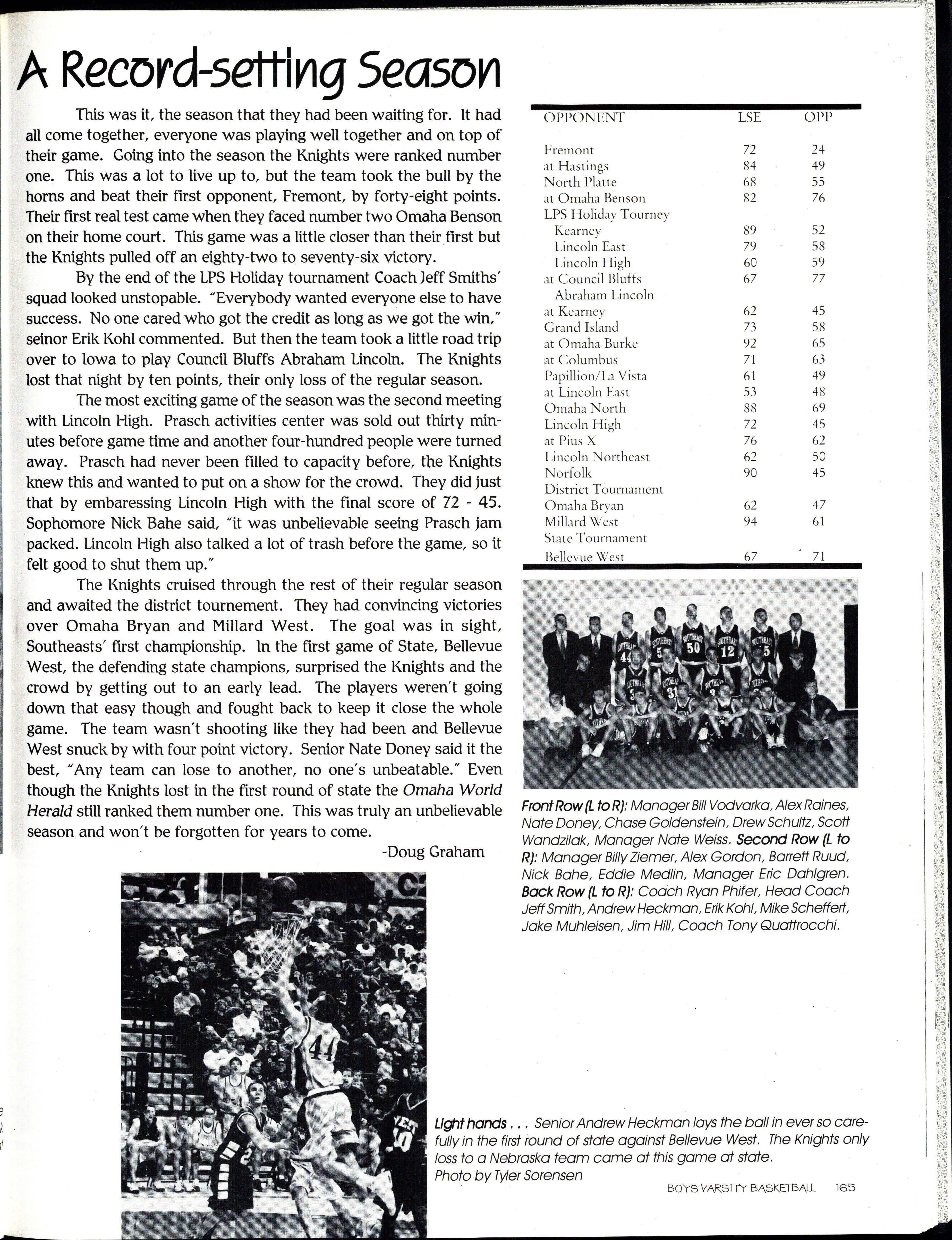 Receiving the award for the High School Sports Program of the Decade gave us more determination to continue the winning traditions that fellow students and alumni started in the past. The traditions were once again revived as we began the year winning five state sport championships, one state sport runner up award, a Cornhusker award for both the Shield's and the Clarion ' s outstanding publications, runner up award for the one act play, and a Superior and Excellent rating for the marching band.